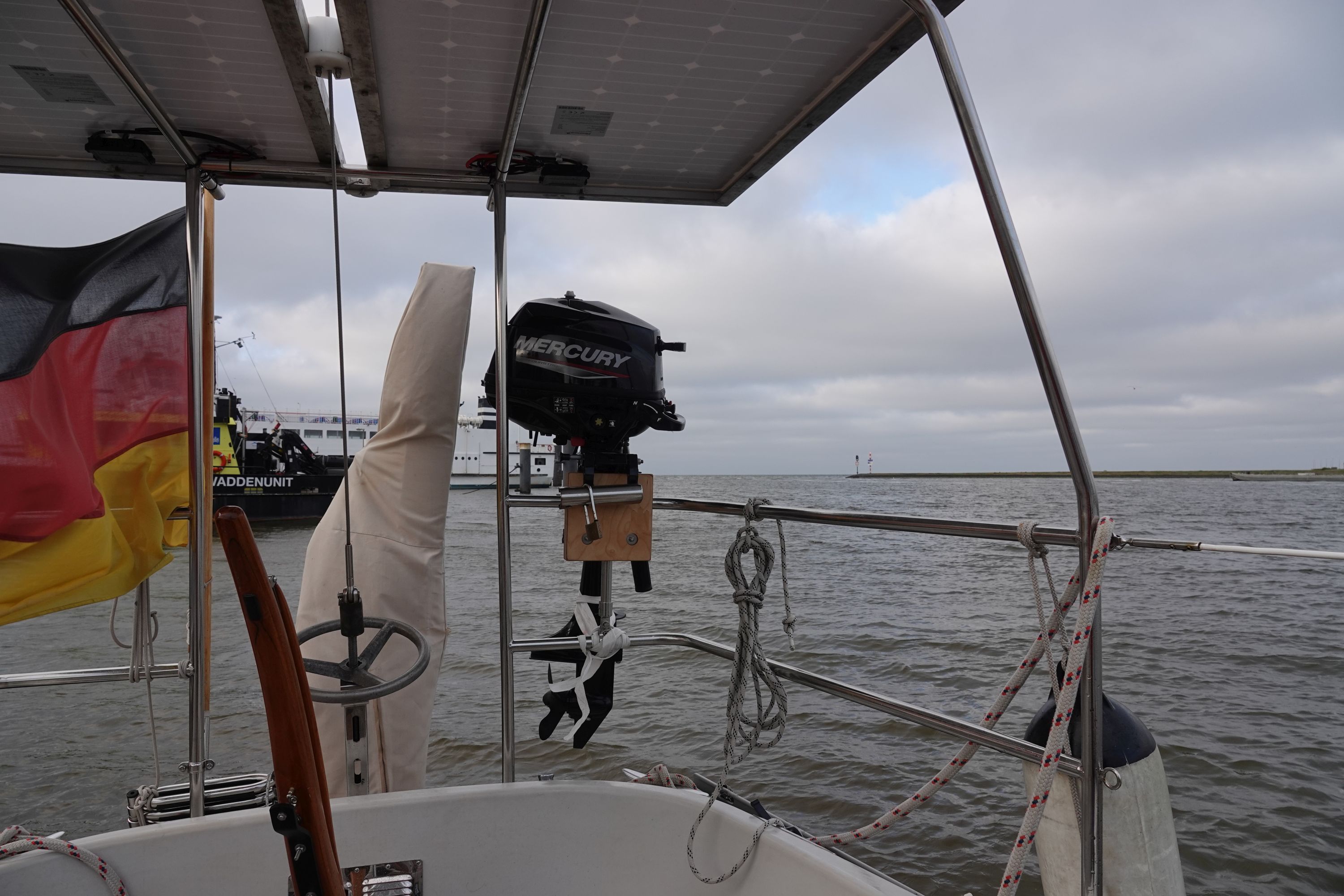Kurz nach acht Leinen los. Die Emma folgt einen Augenblick später. Beim Schluchter steht noch ganz schön große Brandung. Ein Boot biegt direkt vor mir in Richtung Schluchter ab und ich überlege für einen Moment zu folgen. Bleibe dann aber lieber bei der geplanten Route durch das sichere Dovetief und nehme die fünf Meilen Umweg in Kauf.