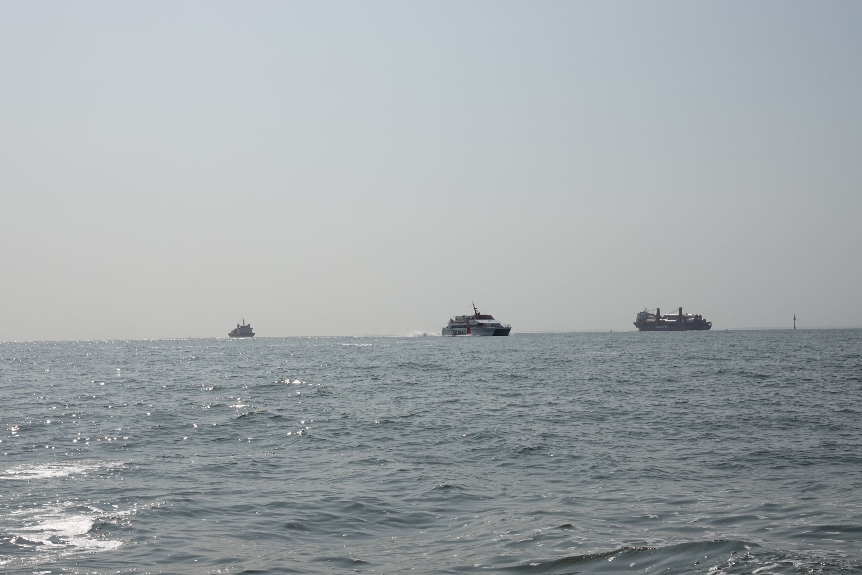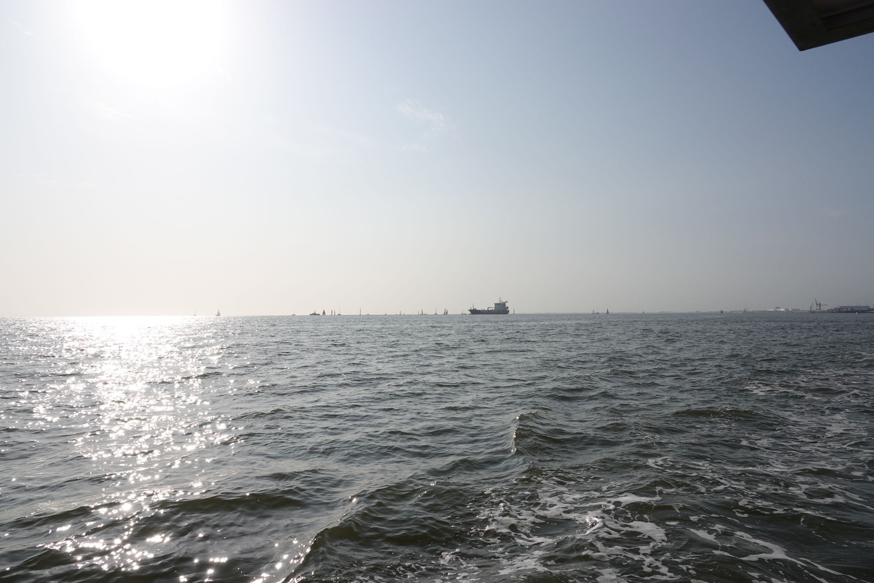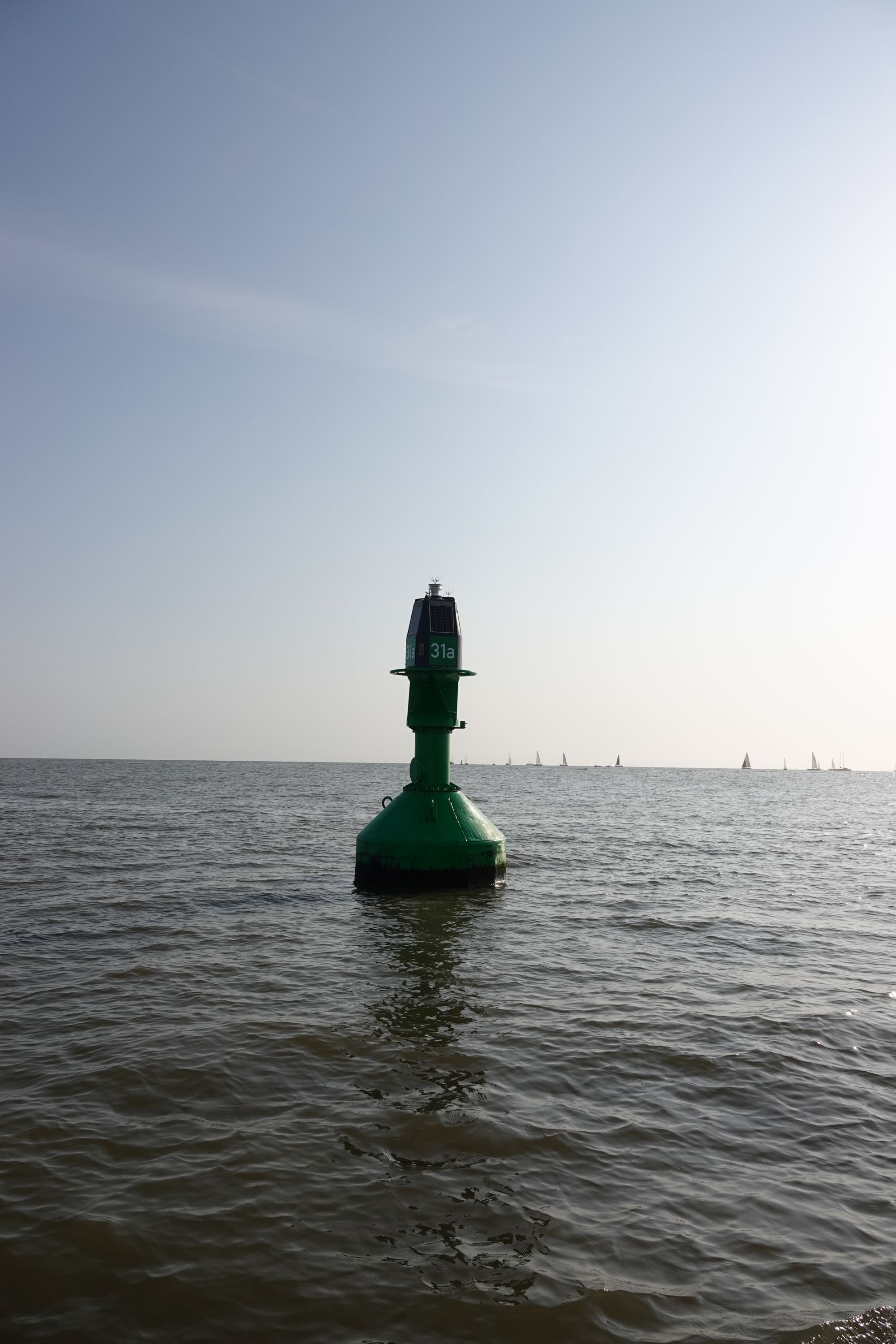 Gerne hätte ich den leichten Wind zum Segeln genutzt, aber Trödeln kann ich mir nicht erlauben, sonst komme ich erst bei Niedrigwasser vor Norderney an und komme nicht rein. Also schiebt mich der Motor mit Unterstützung des ablaufenden Wassers aus der Elbe heraus. Dank des Stroms komme ich so teilweise auf über acht Knoten Fahrt. Die leergeräumten Regattaboote mit High-Tech-Tüchern laufen vielleicht vier bis fünf Knoten und sind schnell achteraus.