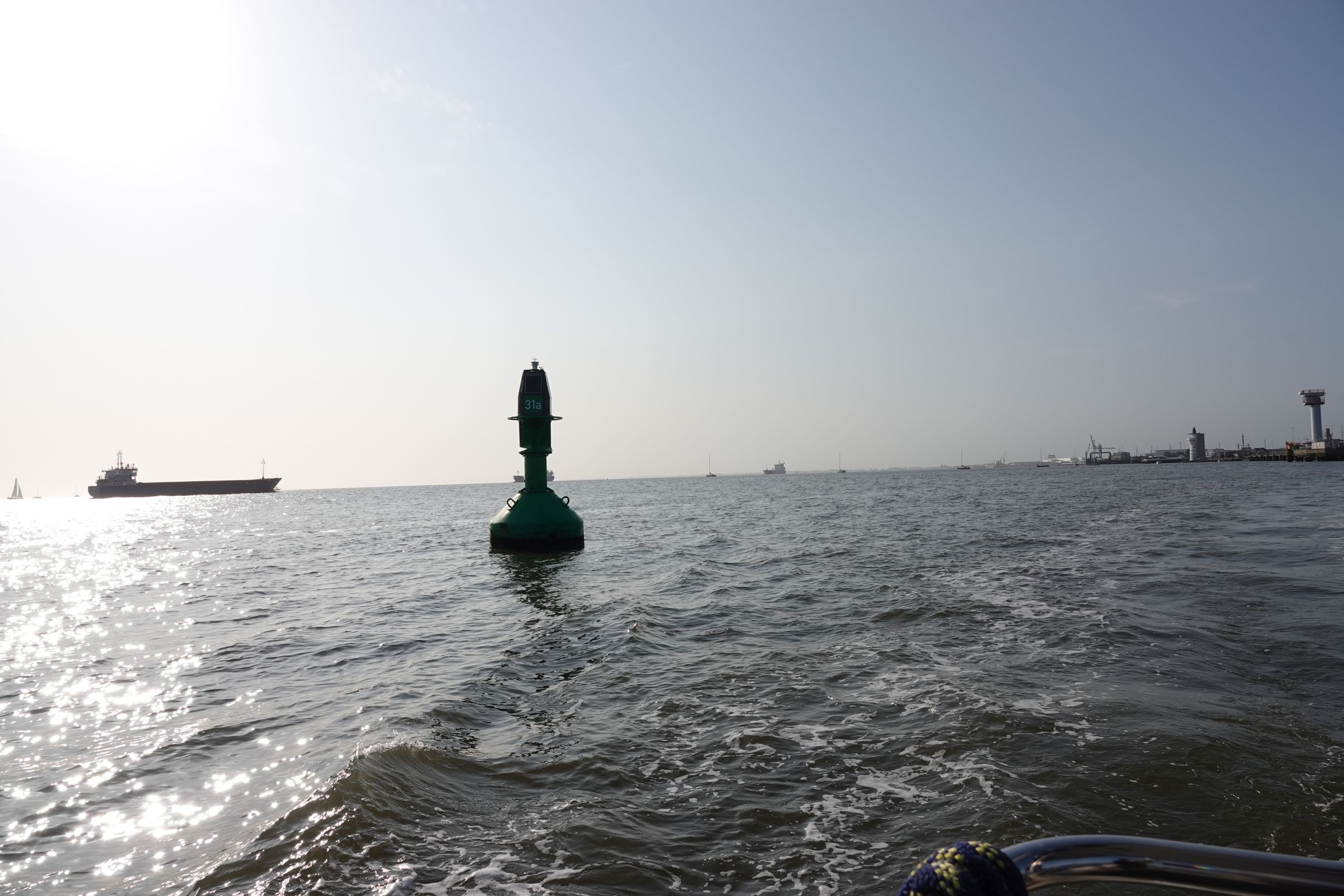 Kurz vor dem Verkehrstrennungsgebiet "Elbe Approach" kreuze ich das Fahrwasser und nehme Kurs auf die Ansteuerung vom Dovetief vor Norderney. Auf dieser Seite merkt man vom ablaufenden Wasser kaum noch was und es geht wieder mit normalen fünf bis fünfeinhalb Knoten weiter.