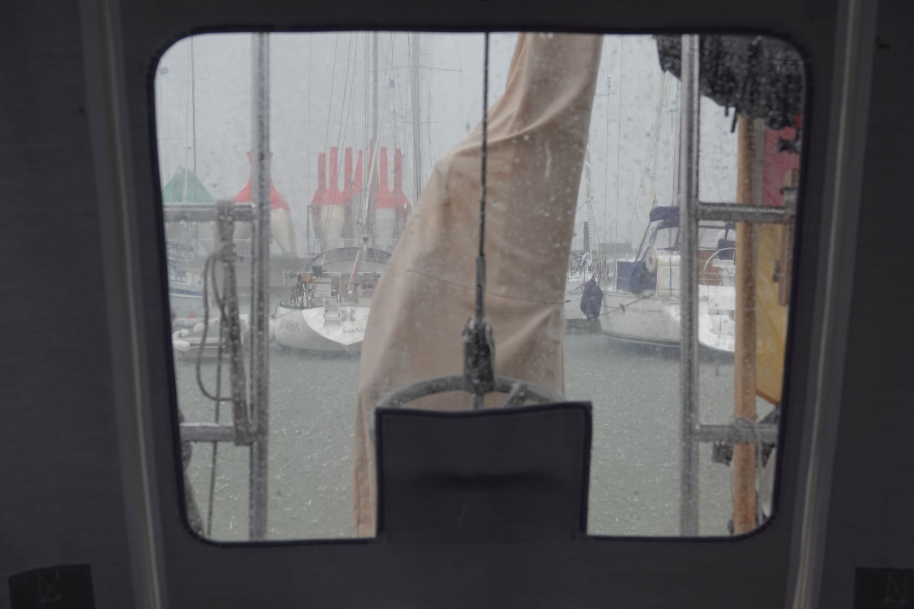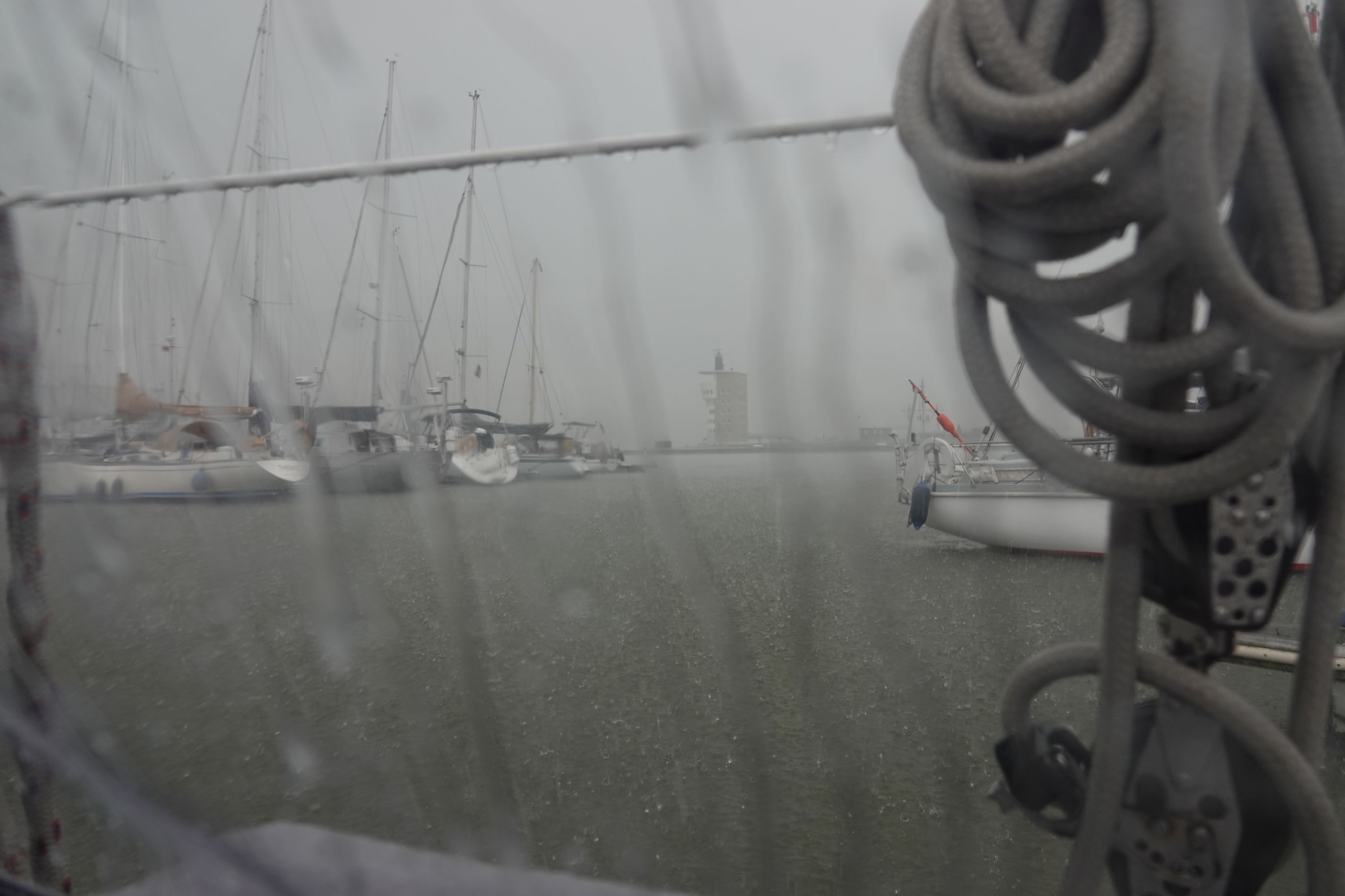 Außerdem auf dem Programm: Den lecken Vorschiffslüfter abkleben, die vielen Kanister an Deck festzurren, Halterung für den Flaggenstock auf der anderen Seite montieren um Schlagen am Aussenborder zu verhindern, Staulisten-Kladde in Excel übertragen und ausdrucken, neue Seekarten für den Kartenplotter kaufen und herunterladen, Post abholen...