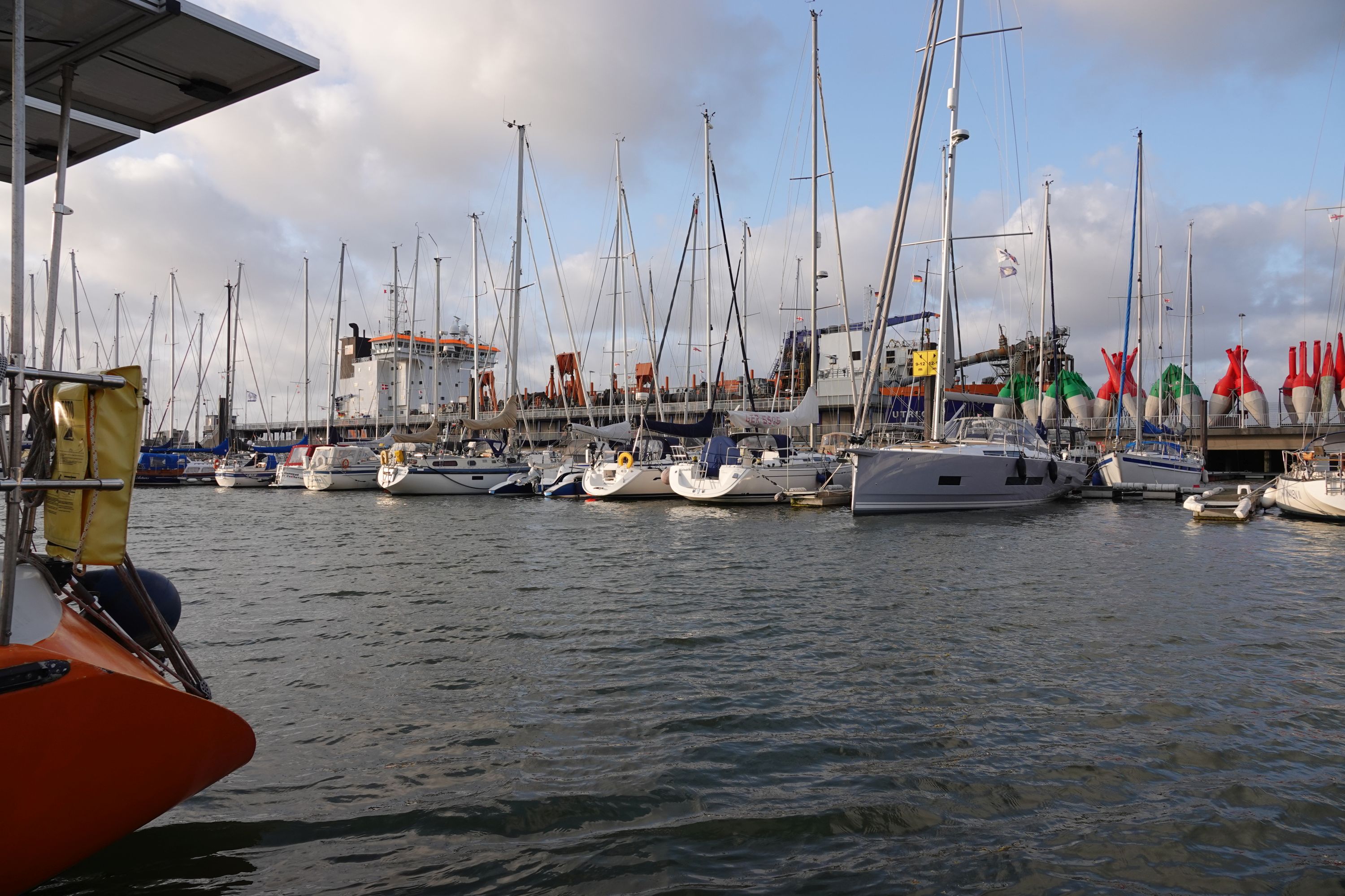 Am Nachmittag beginnen die Nordseewöchler in Cuxhaven einzutreffen und der Hafen füllt sich langsam. Vorm Clubhaus ist ein Festzelt aufgebaut, ein Bierwagen steht bereit und am Abend wird ein Grill angeschmissen und Bratwurst verkauft. Da hole ich mir heute auch mein Abendessen, so spare ich mir Kochen und Abwasch.