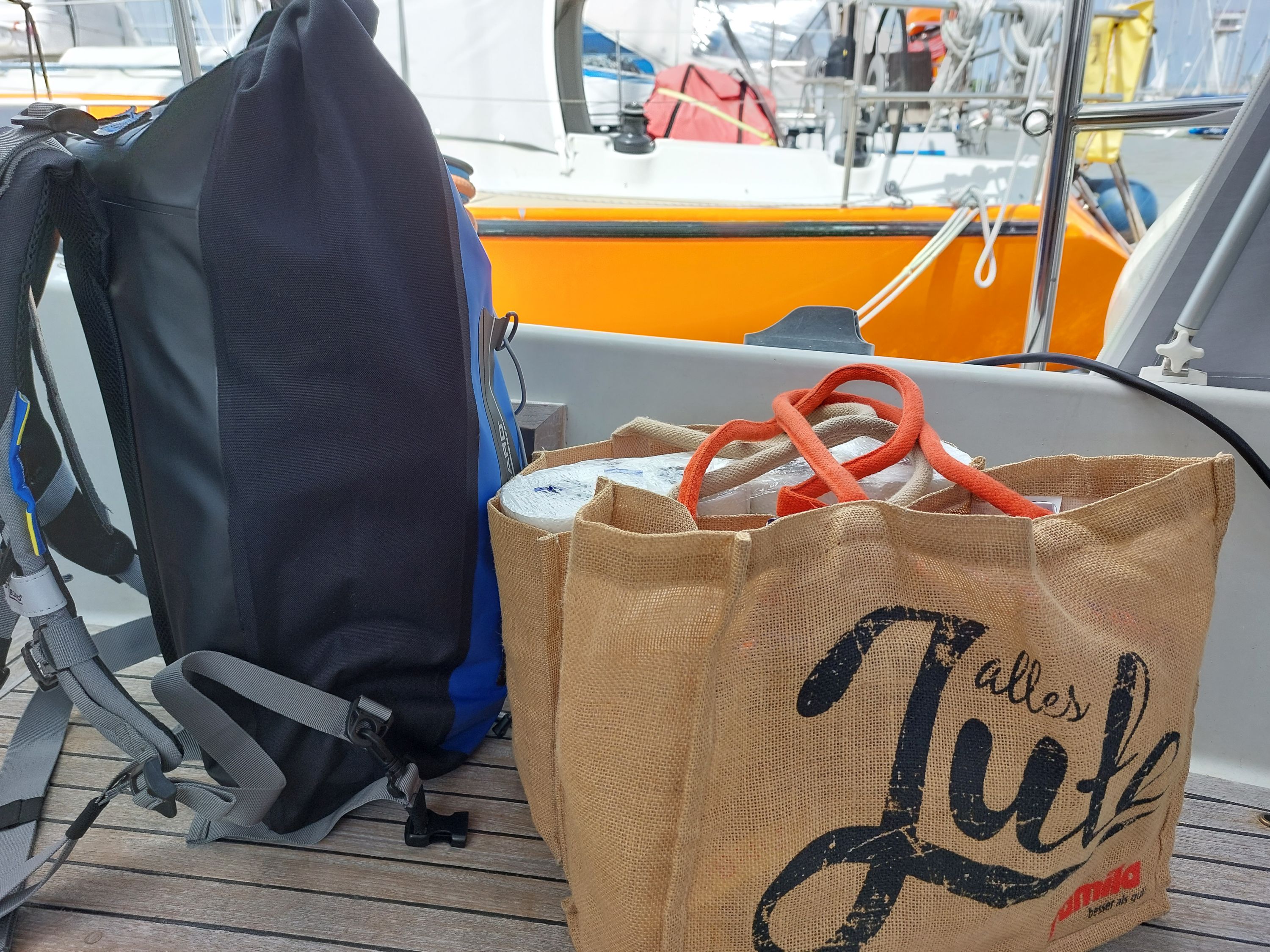 Pfingstsonnabend zeichnet sich jetzt als Abfahrtstermin an. Freitag bunkere ich Trinkwasser und gehe Einkaufen. Mit einem großen Rucksack und zwei Taschen geht es zum Bio-Laden, zum Bäcker und zum Supermarkt bevor ich schwer bepackt zum Boot zurücklaufe.