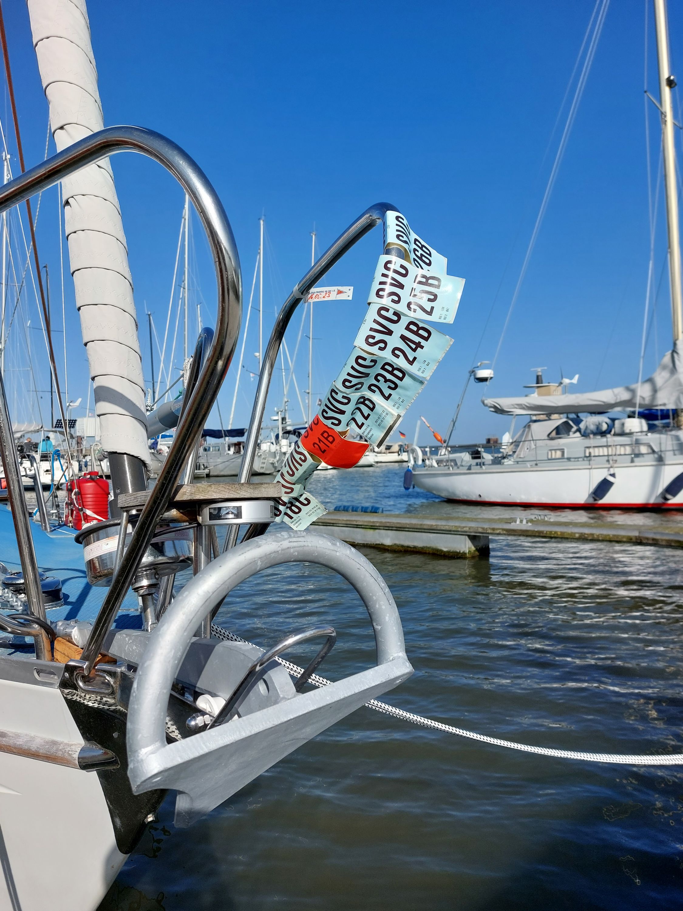 Zeit, dass ich weiter komme. Der Bugkorb ist bald voll mit Liegeaufklebern.