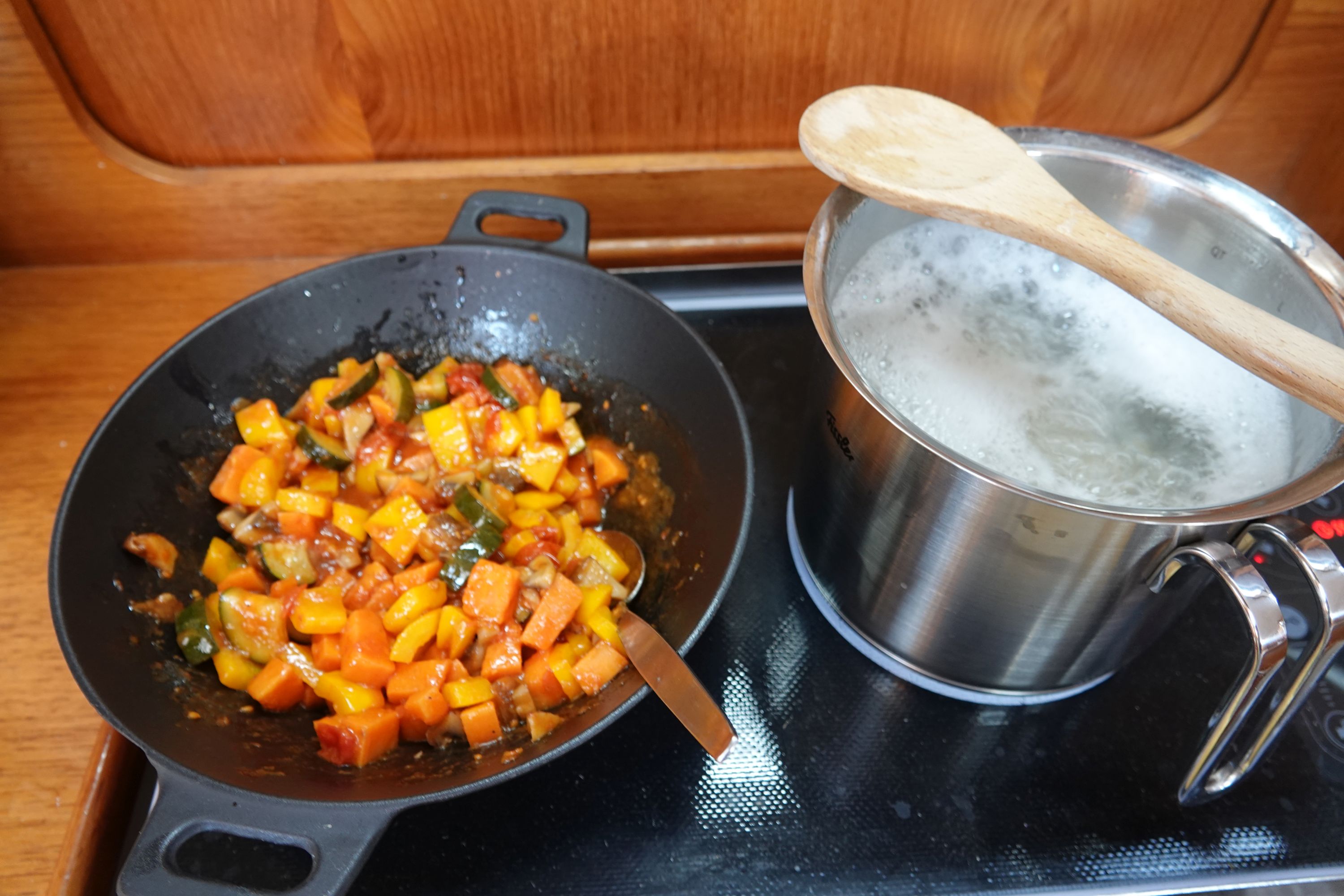 Auch mit dem Stauen bin ich noch nicht fertig. Eine Reisetasche wartet noch darauf ausgepackt zu werden, mein großer Schlafsack braucht einen Platz, Uwes Ölzeug verpacke ich in Vakuumbeuteln... Schließich räume ich auch noch die große Backskiste in der Plicht aus, da war bisher alles nur so reingeschmissen wie es an Bord kam. Jetzt kann ich die vernünftiger einräumen.
