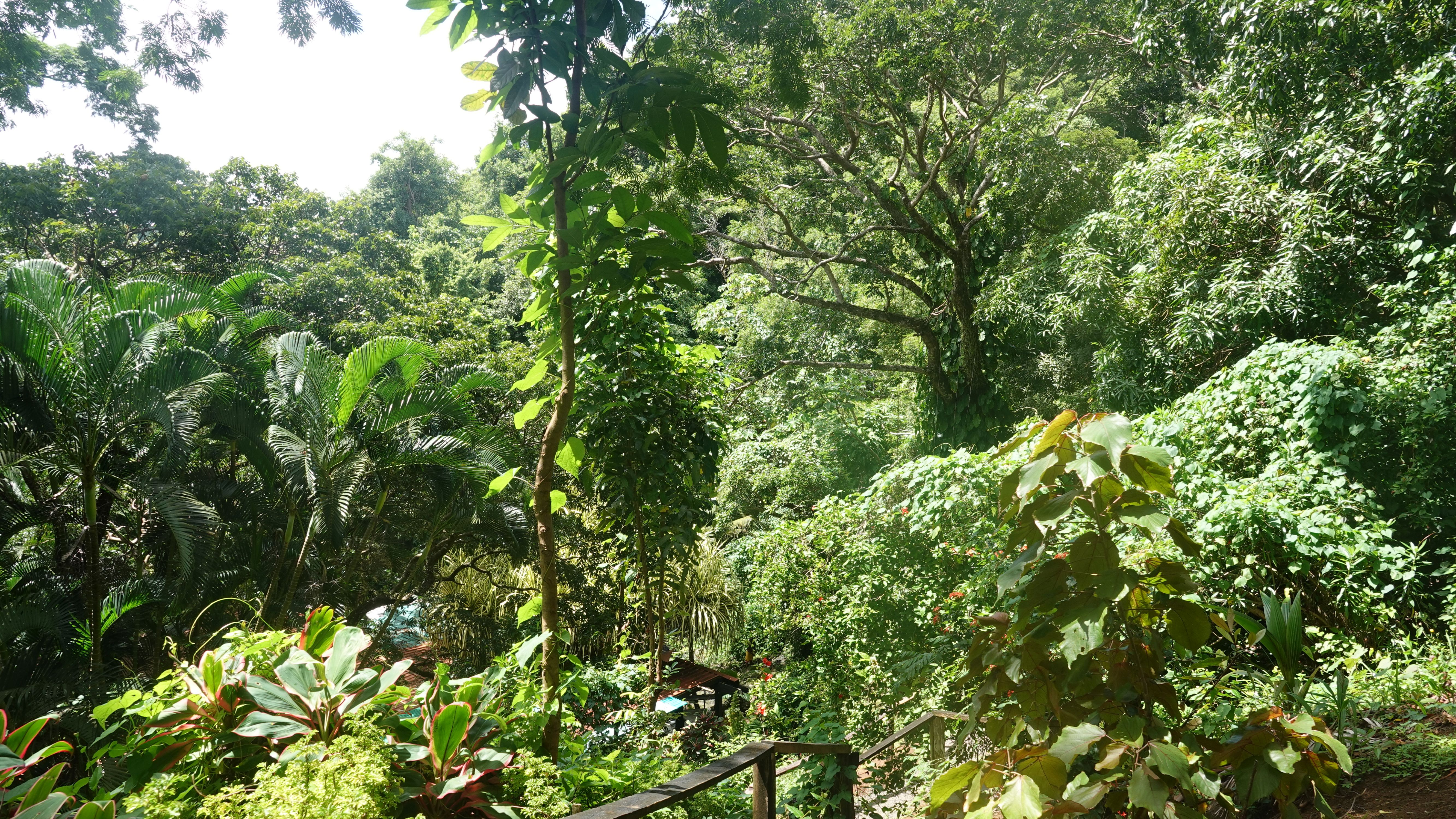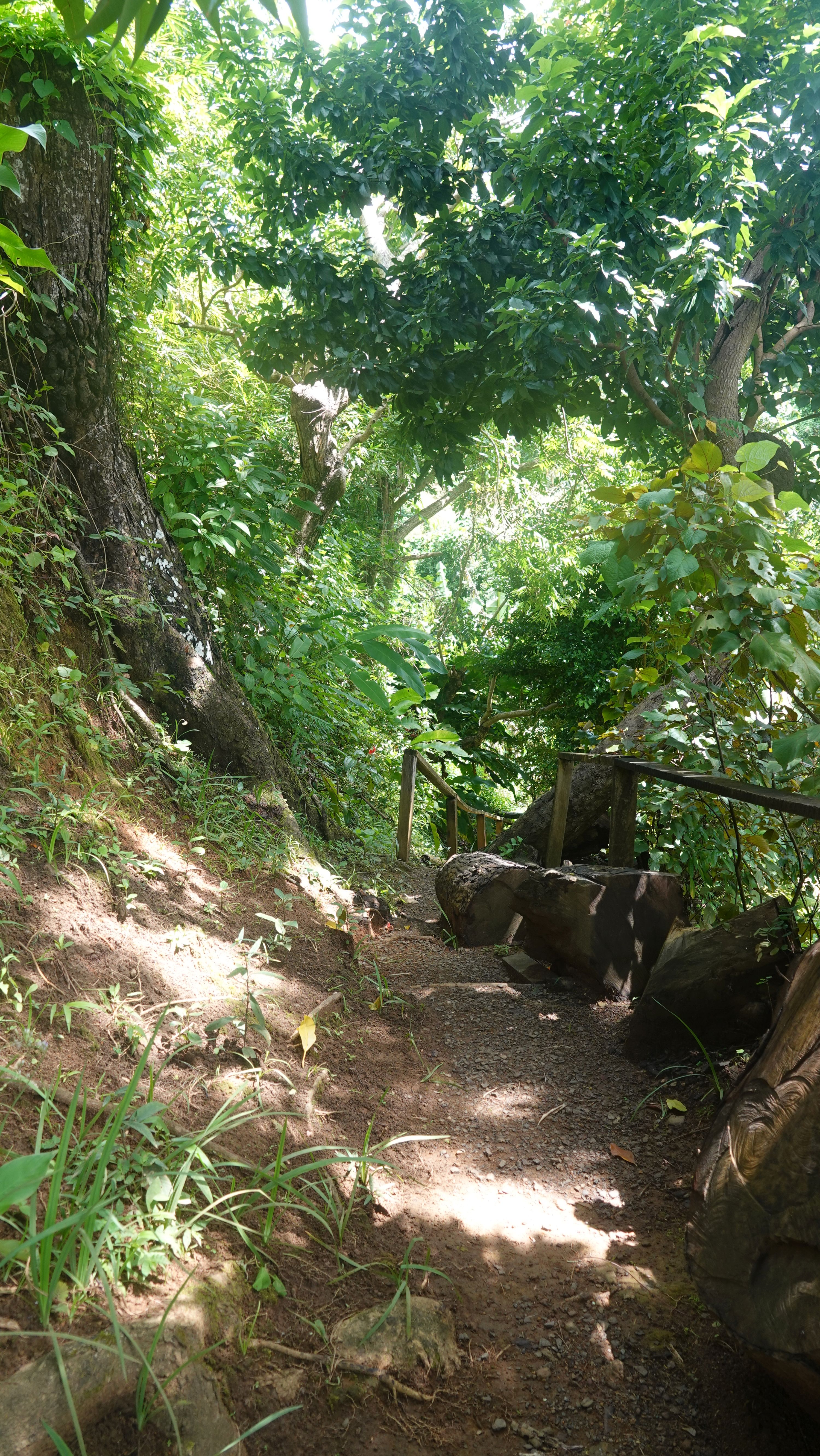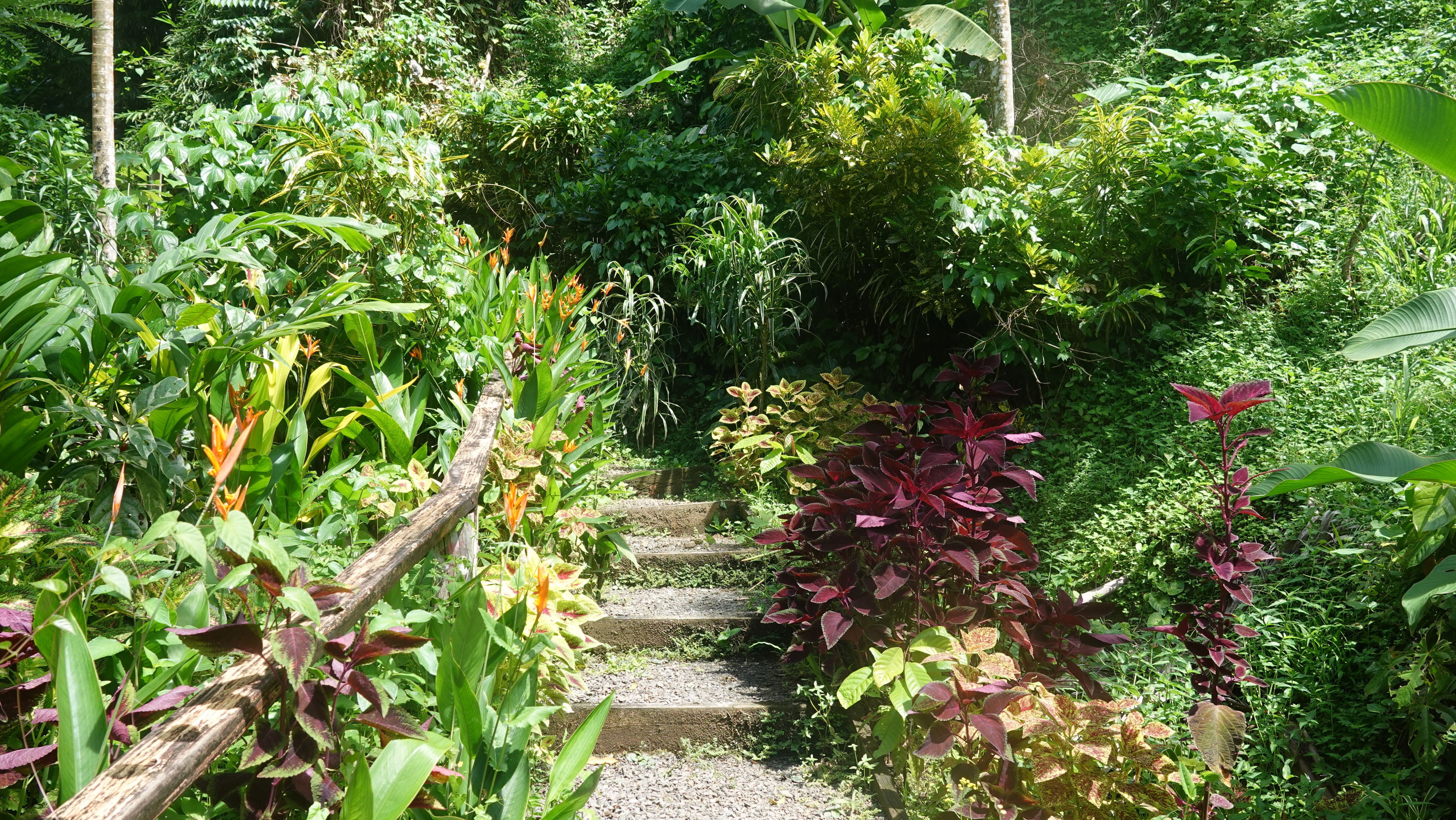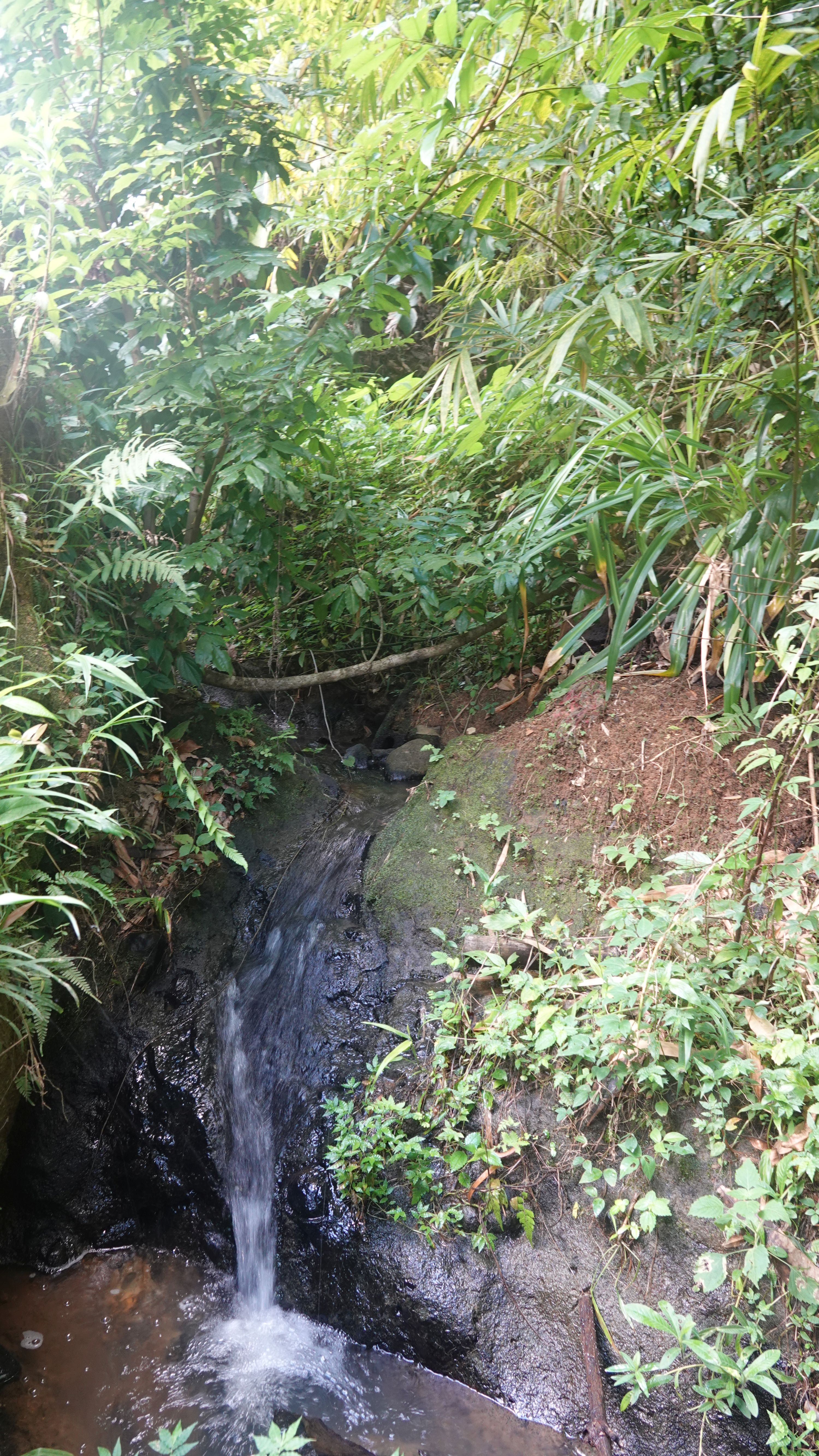 Es gibt einen betonierten Weg direkt runter zum Wasserfall, aber ich entscheide mich für den Wanderweg durch den tropischen Garten. Unbeschreiblich dichtes und kräftiges Grün.