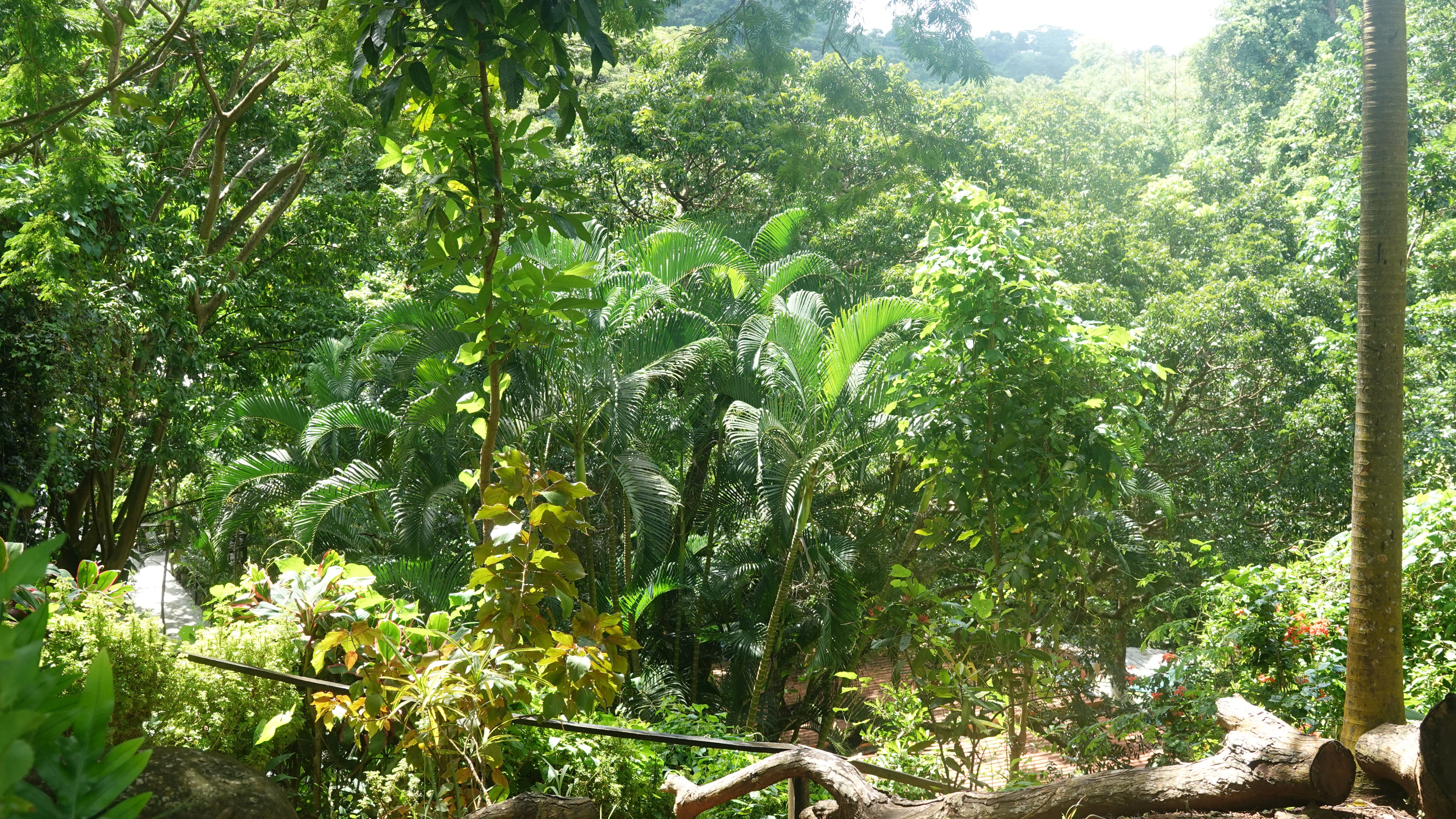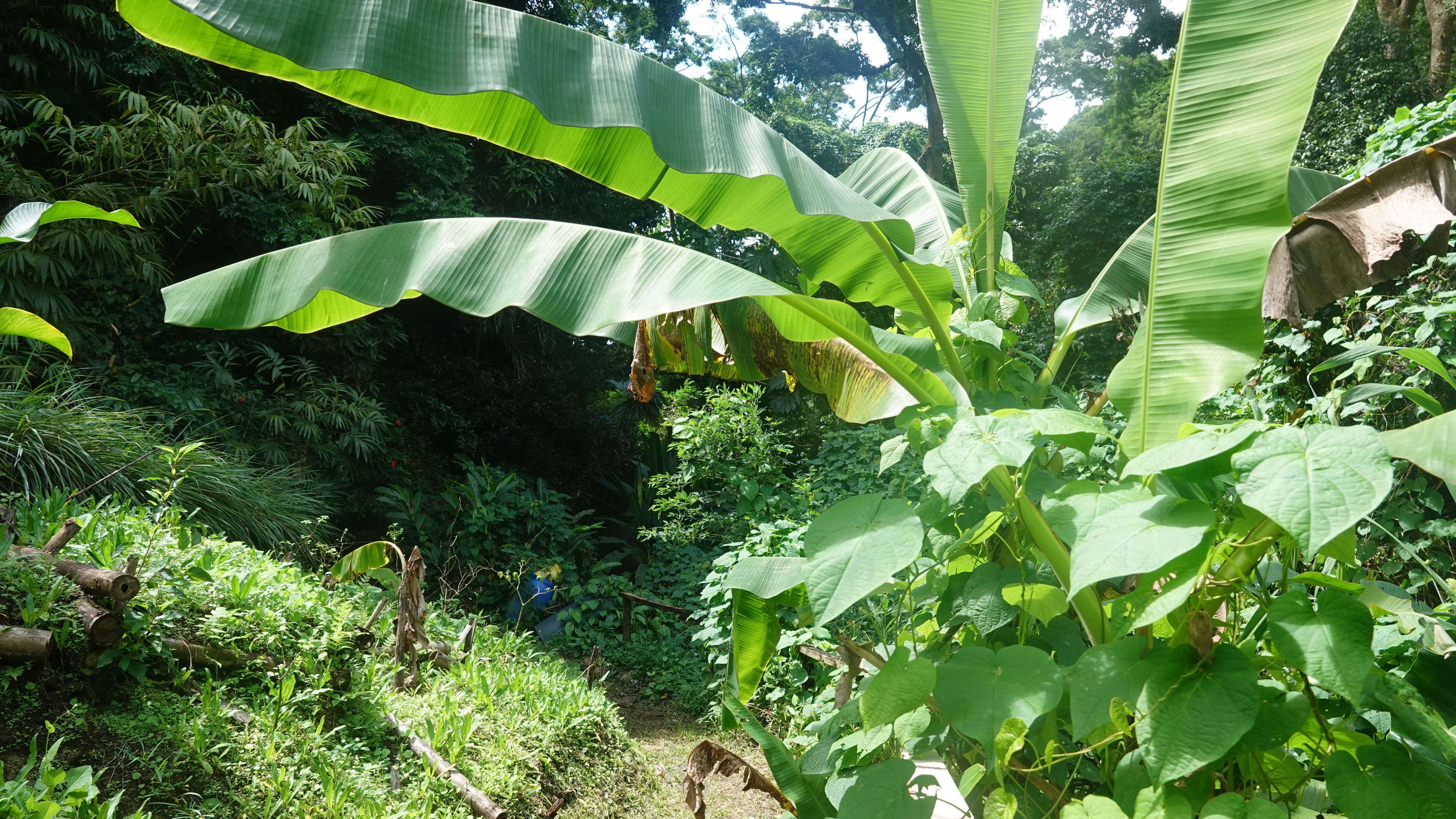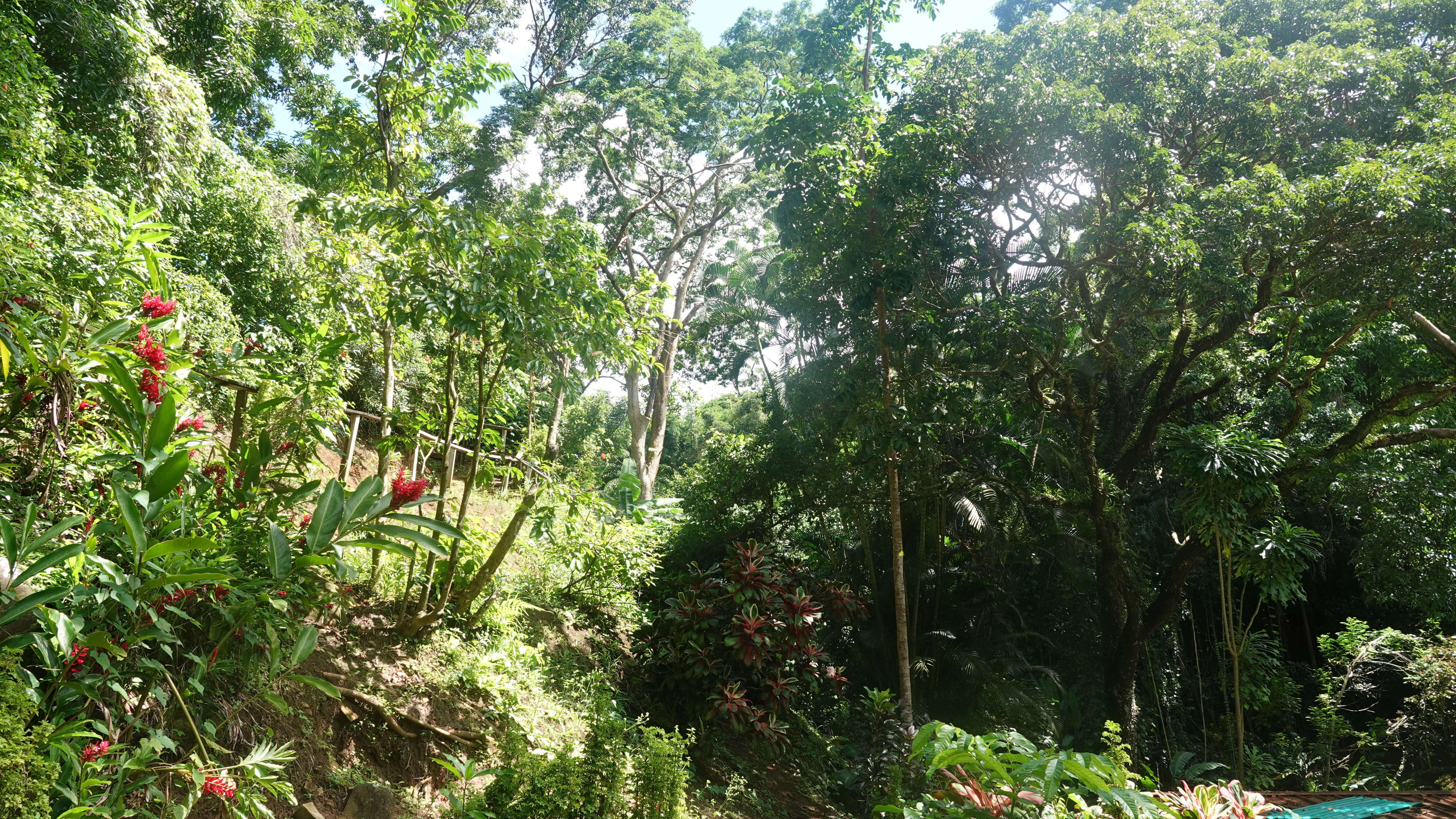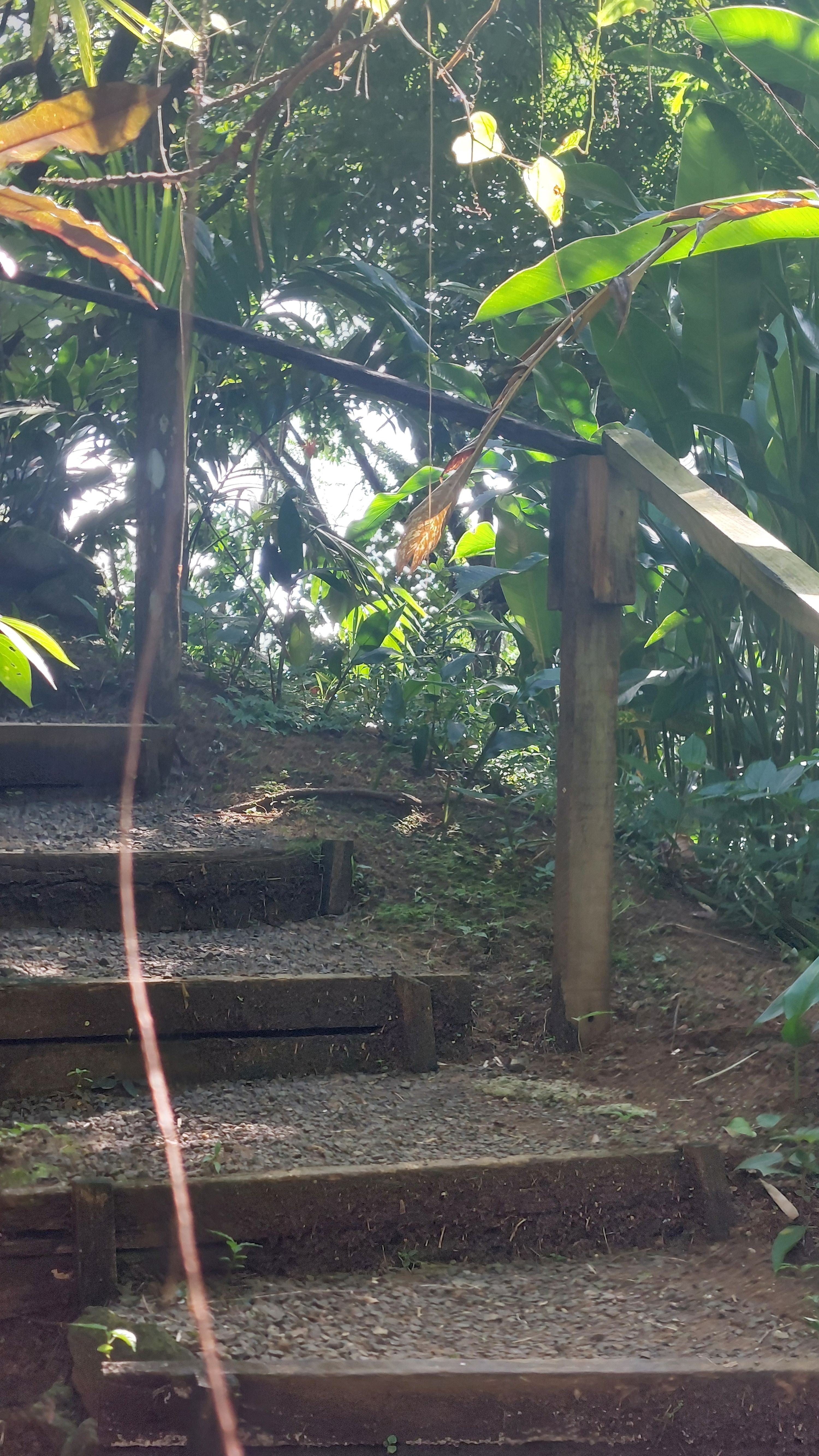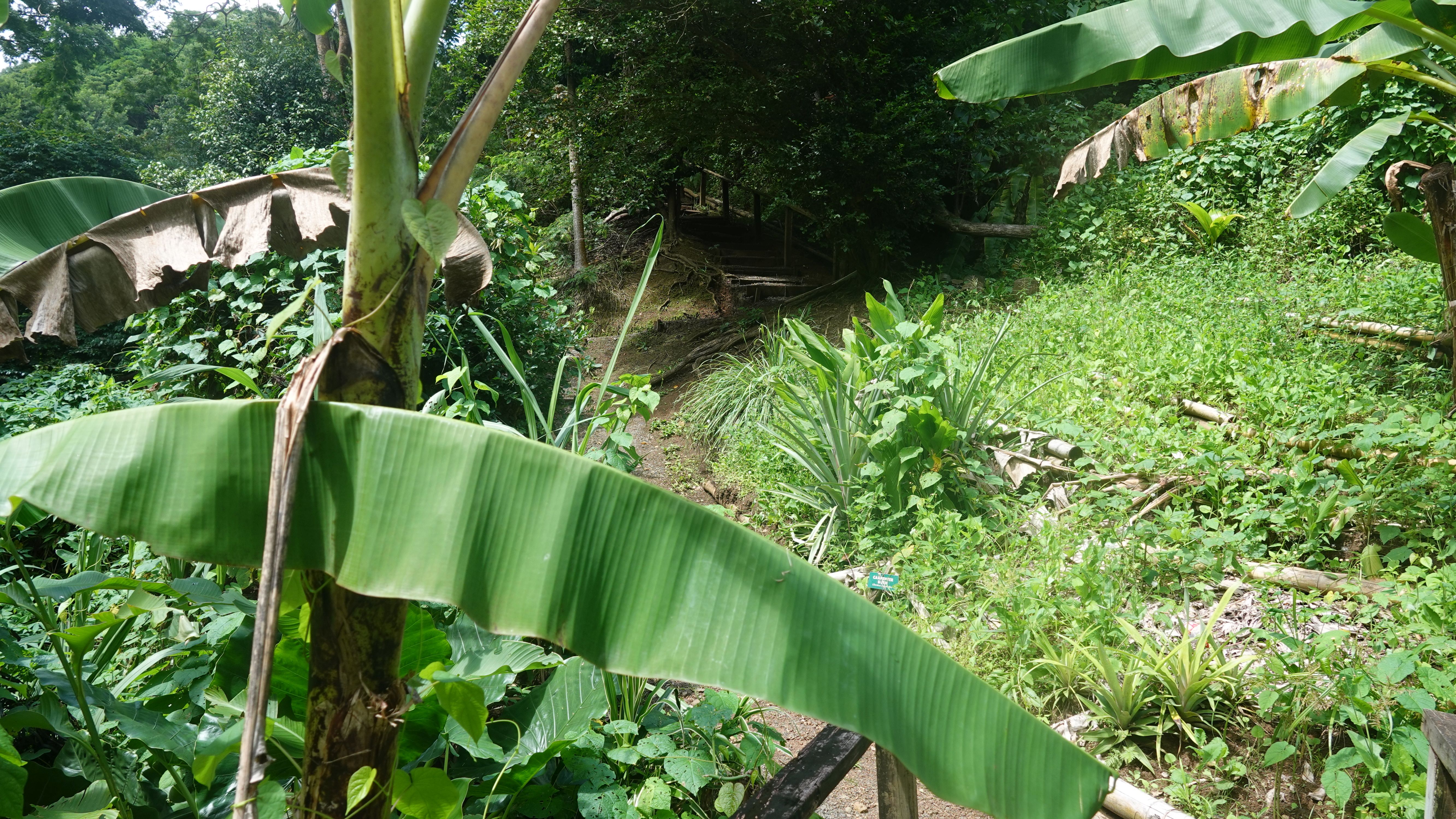 Es gibt einen betonierten Weg direkt runter zum Wasserfall, aber ich entscheide mich für den Wanderweg durch den tropischen Garten. Unbeschreiblich dichtes und kräftiges Grün.