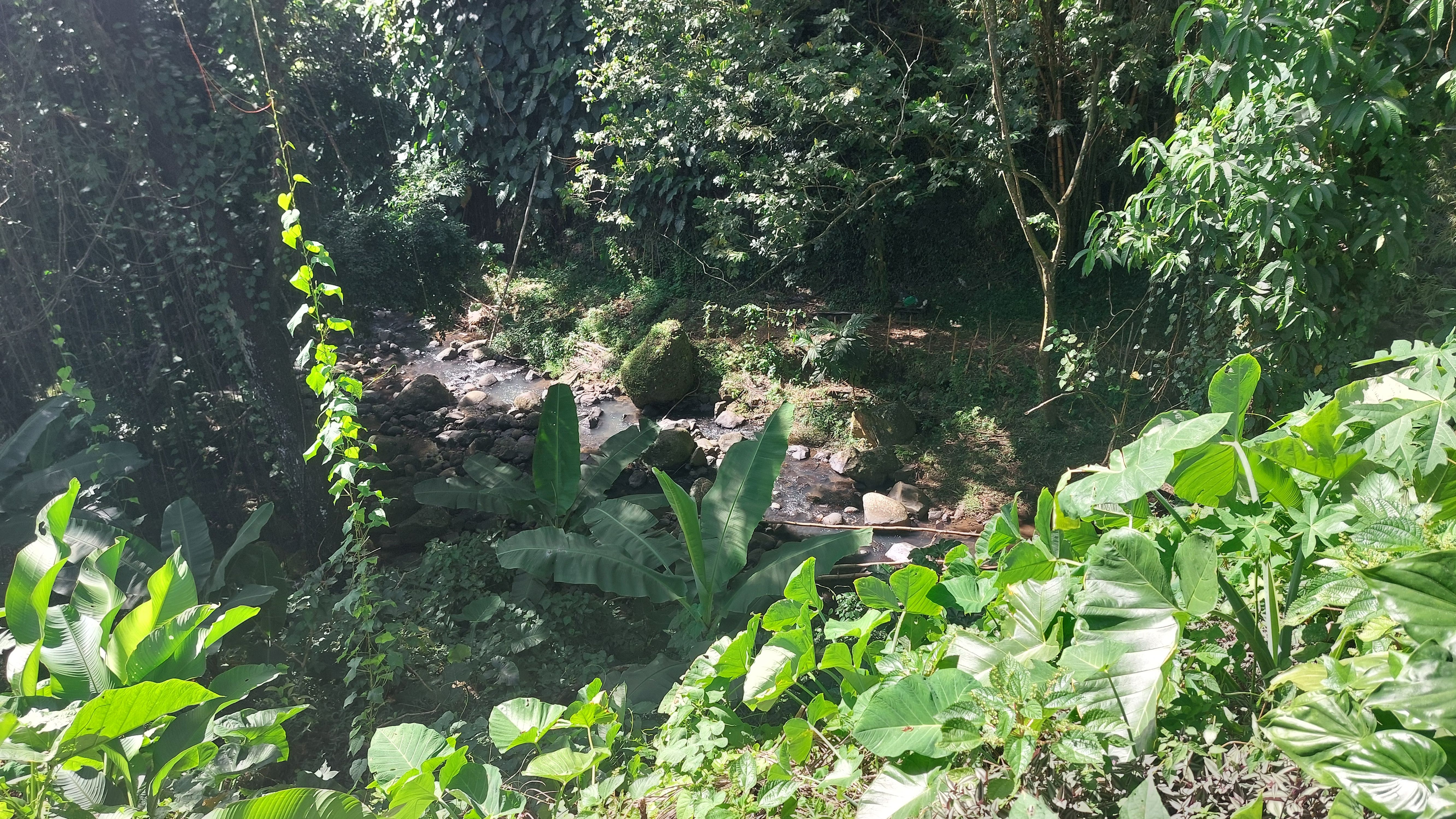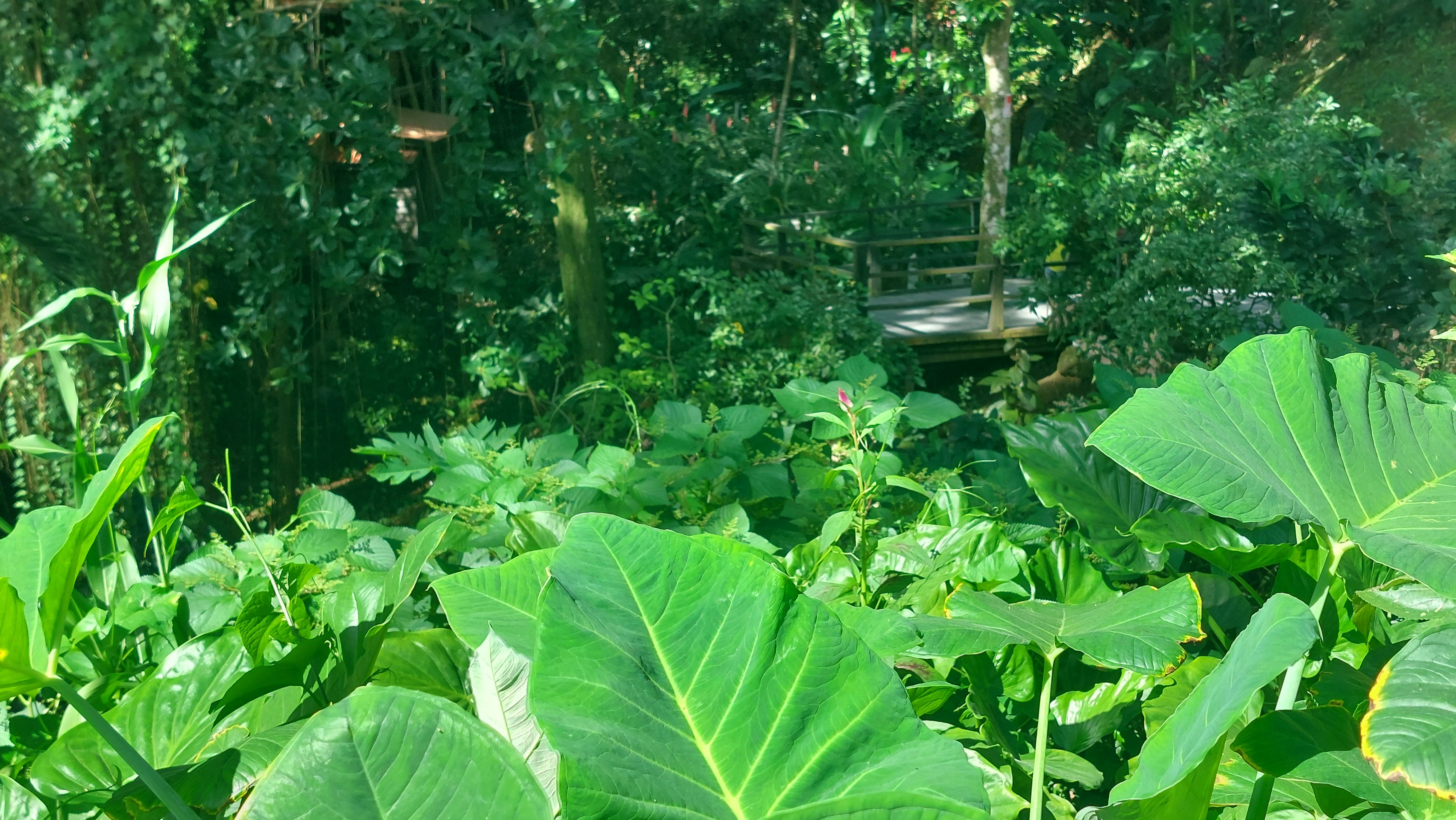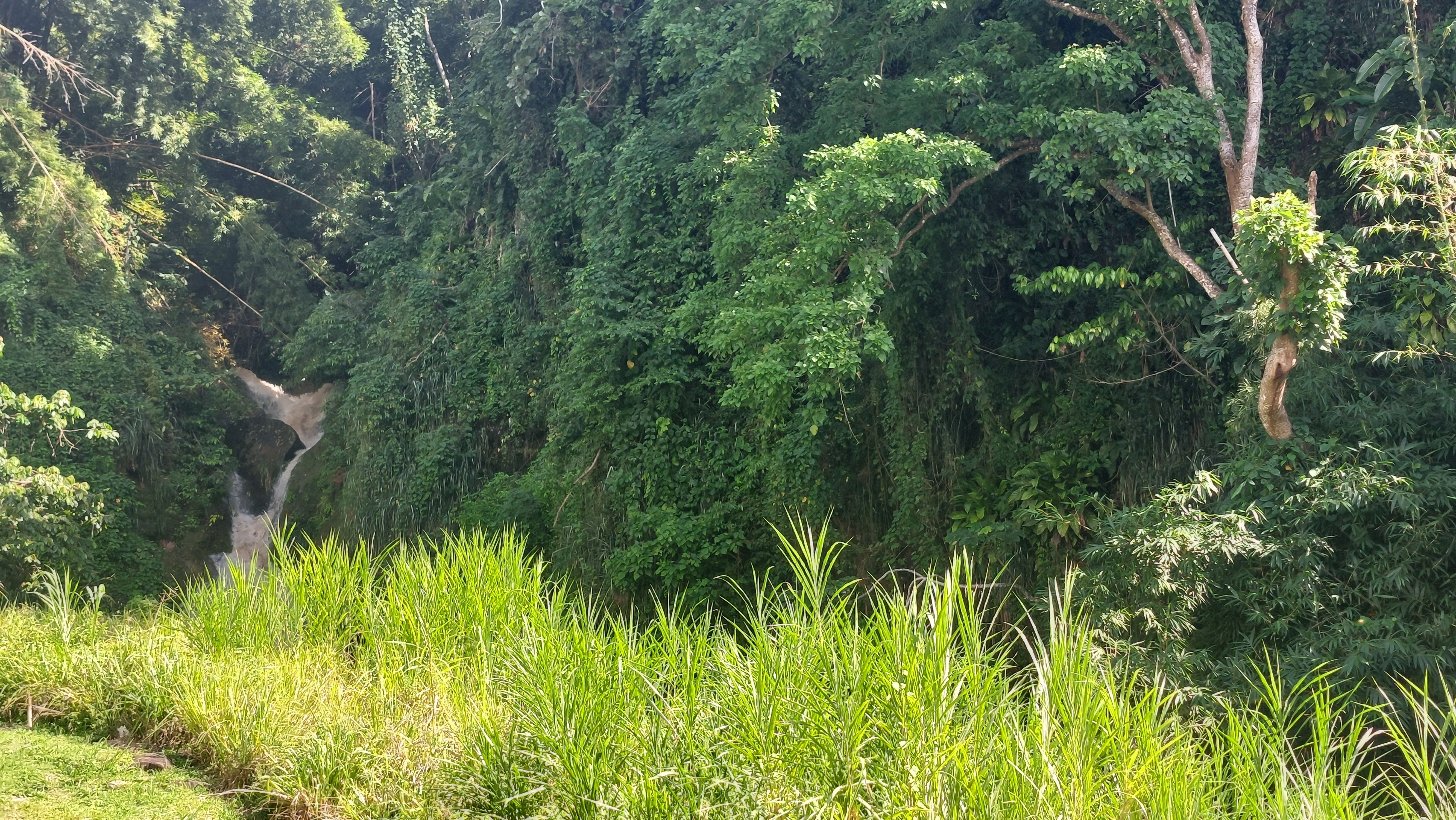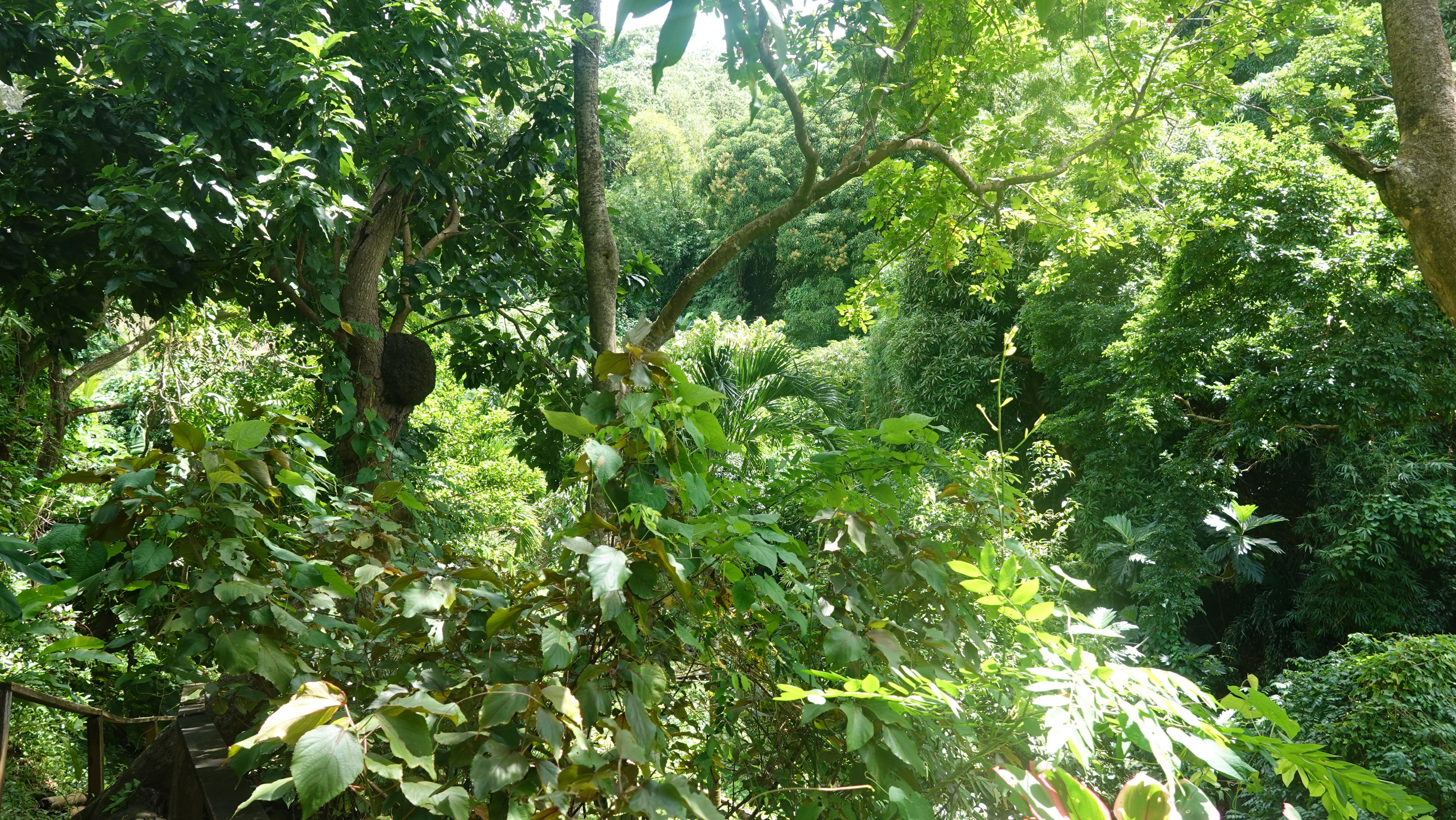 Es gibt einen betonierten Weg direkt runter zum Wasserfall, aber ich entscheide mich für den Wanderweg durch den tropischen Garten. Unbeschreiblich dichtes und kräftiges Grün.