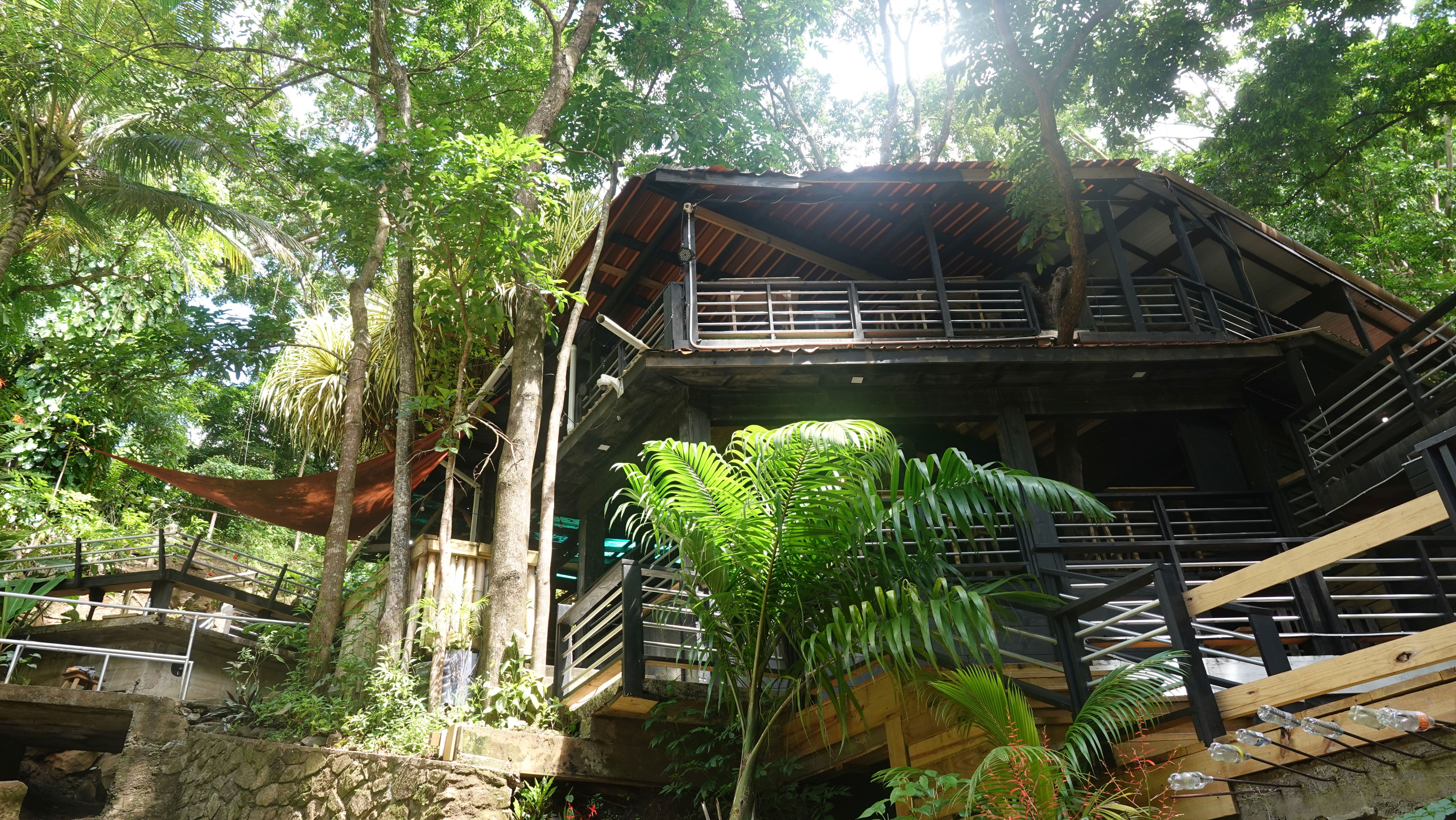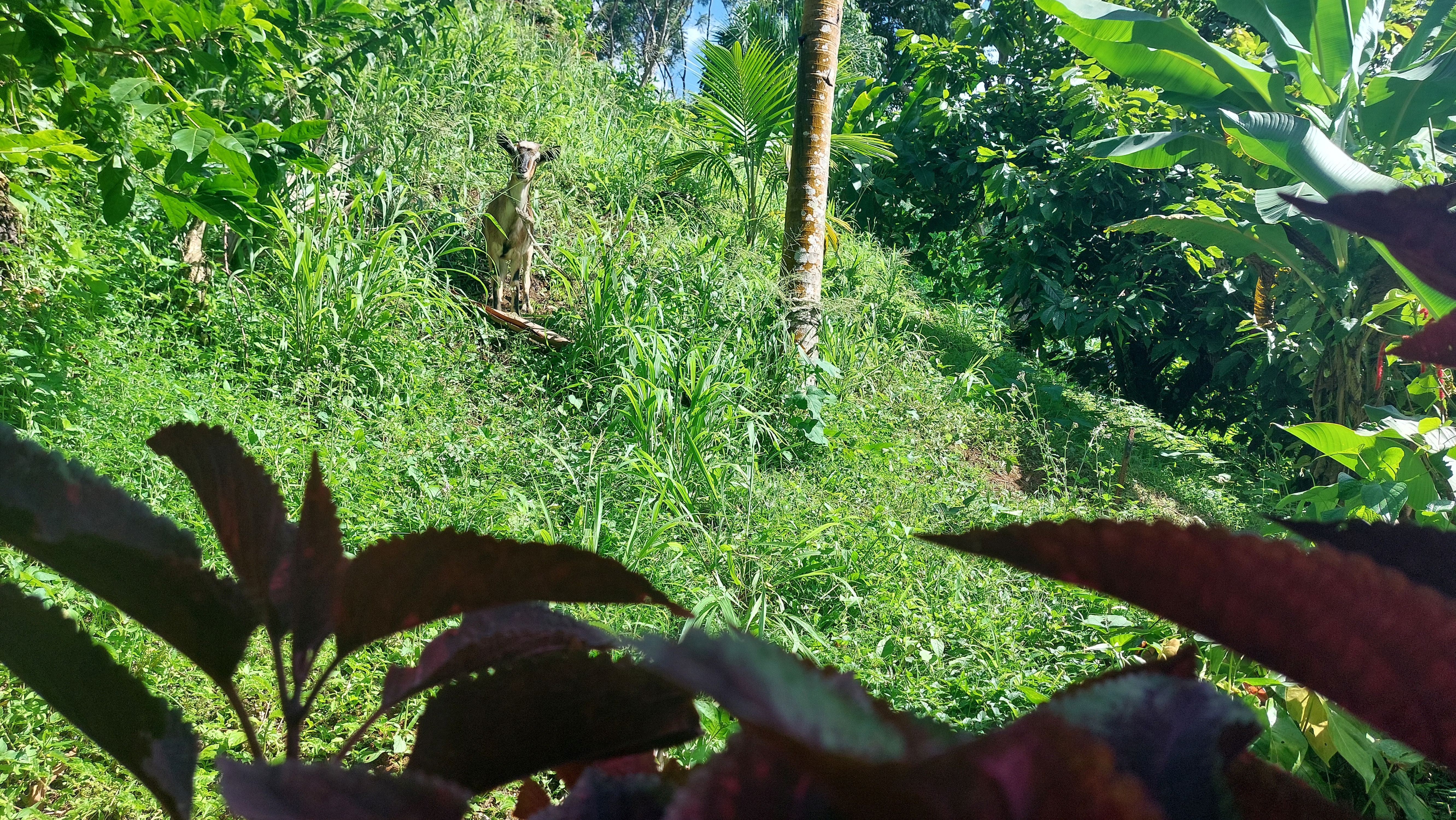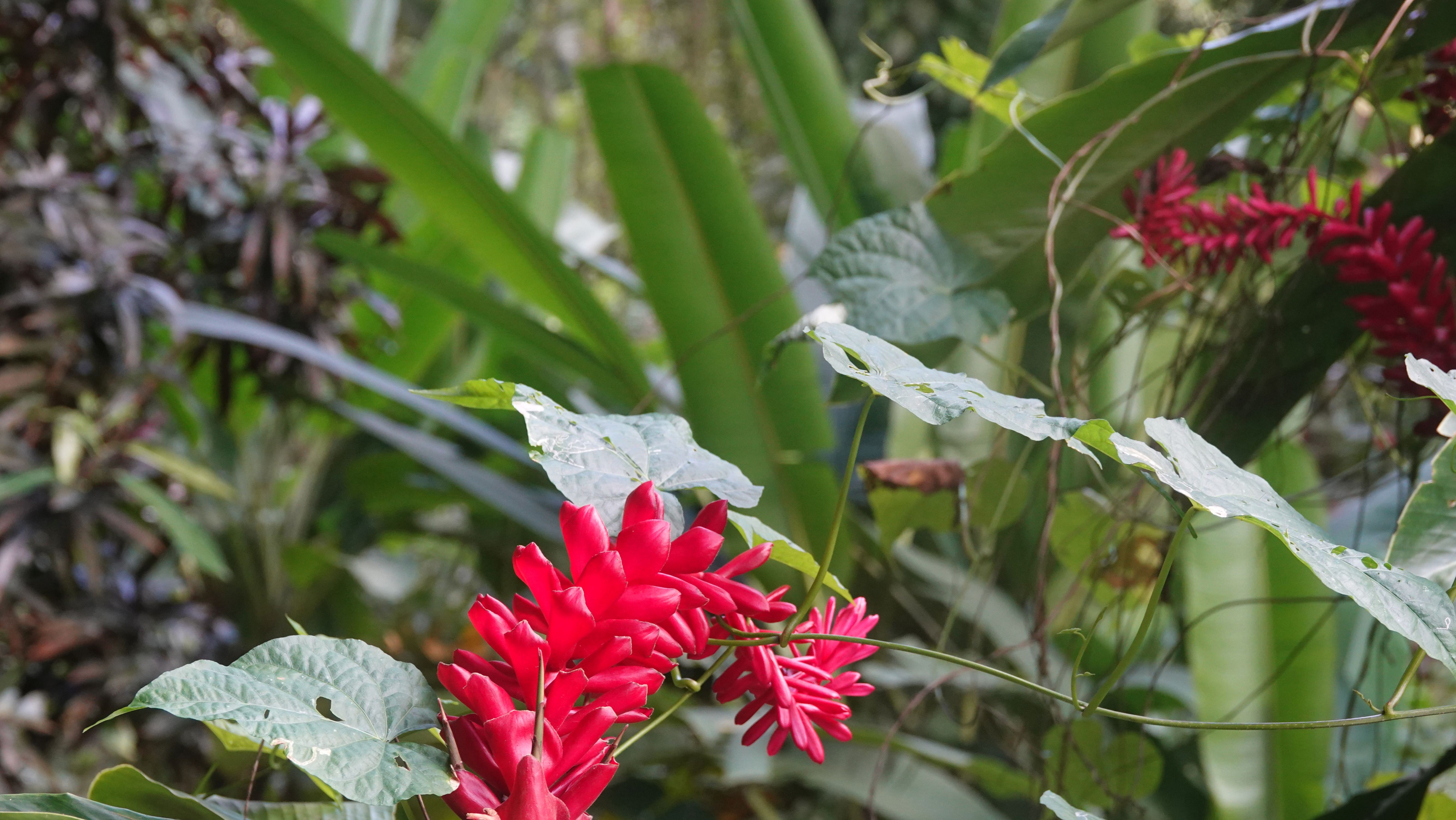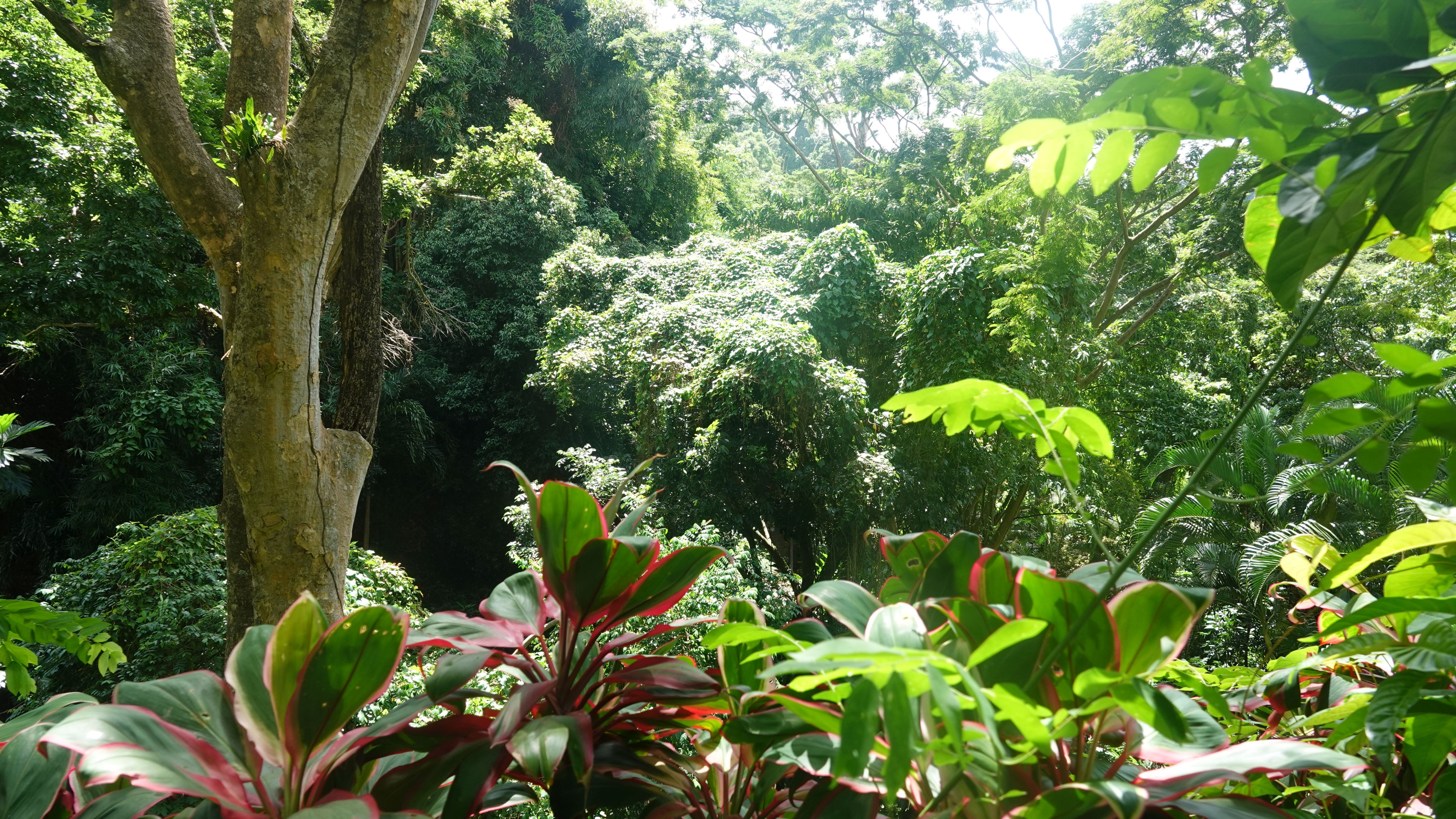 Es gibt einen betonierten Weg direkt runter zum Wasserfall, aber ich entscheide mich für den Wanderweg durch den tropischen Garten. Unbeschreiblich dichtes und kräftiges Grün.