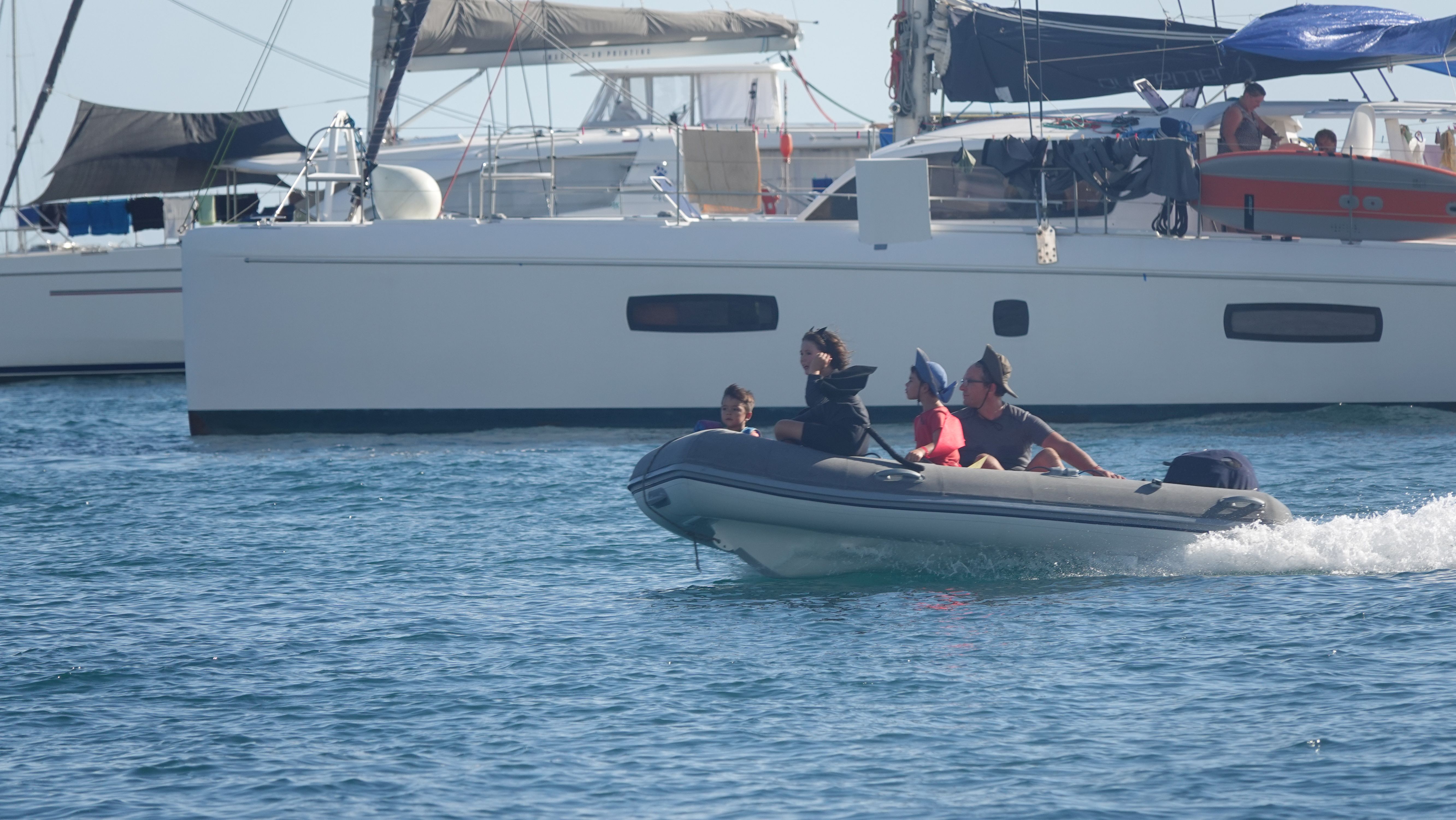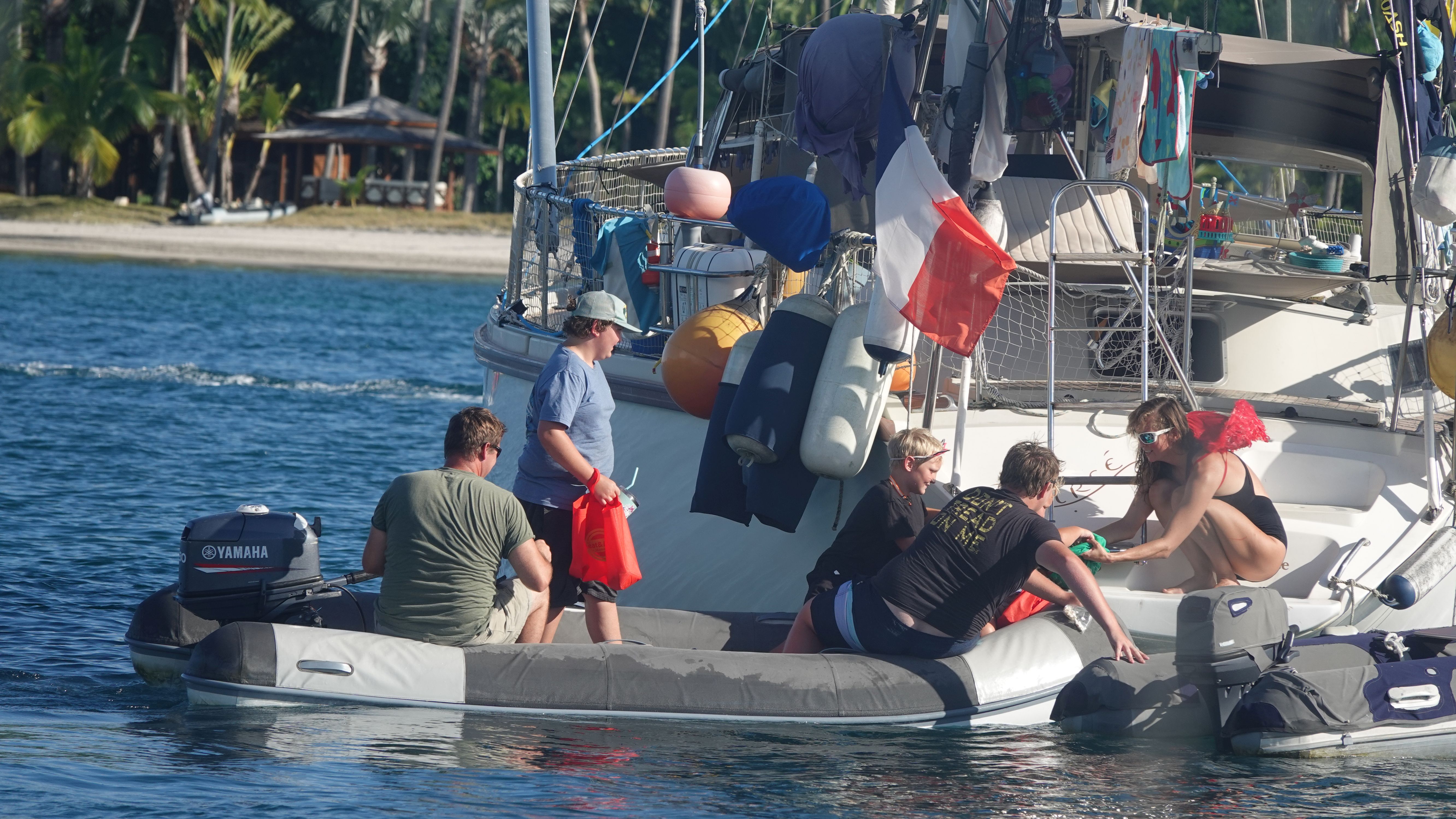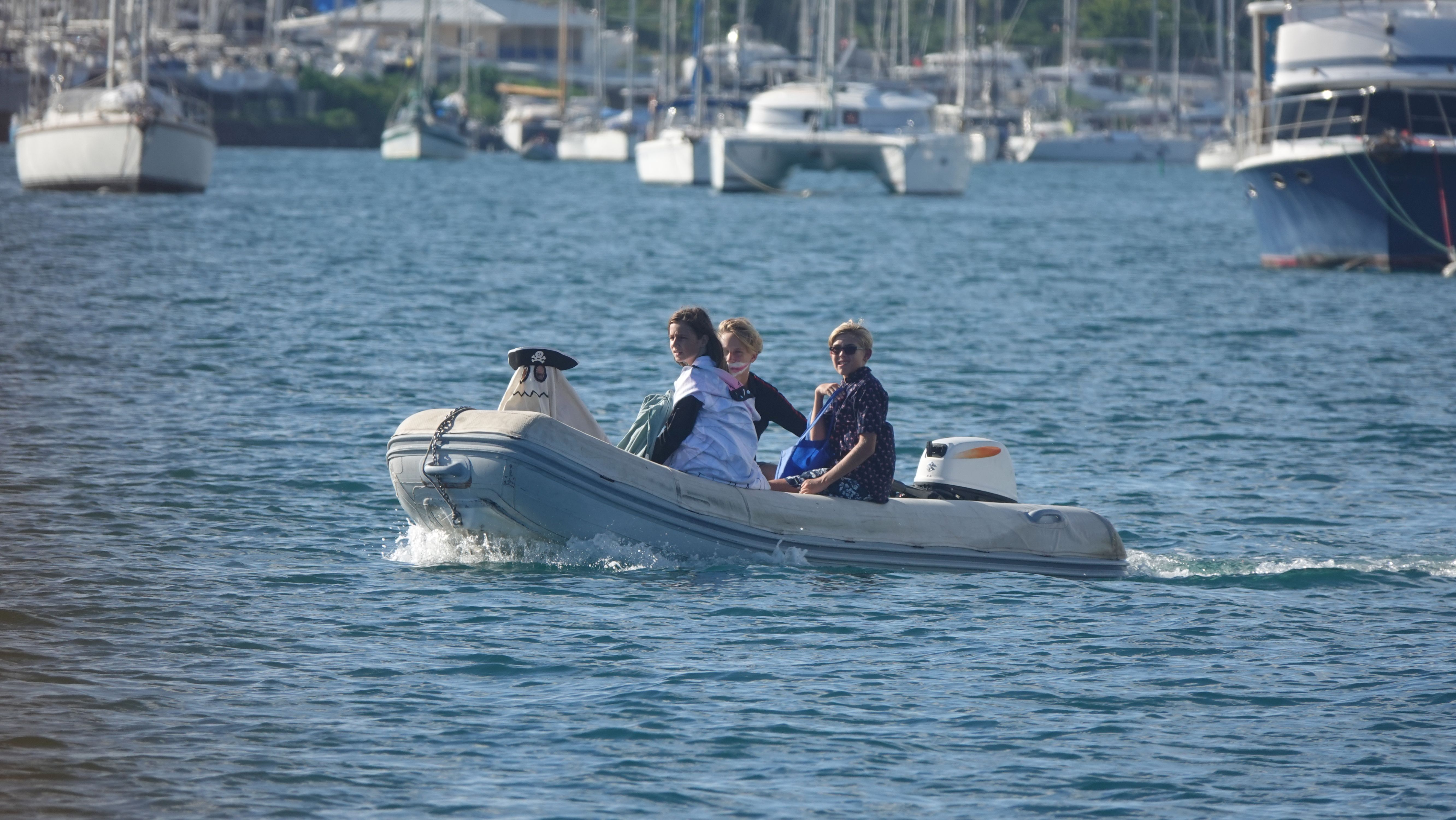 Zurück an Bord gibt es noch eine kleine Überraschung. Der 31. Oktober ist Halloween und mit so vielen USA-geflaggten Booten wird das unter den Cruisern natürlich auch gefeiert. Dutzende Dinghies, gefüllt mit verkleideten Kindern düsen durch die Ankerbucht. Bei allen Ankerliegern, die ihre gelbe Q-Flagge gesetzt haben wird "Trick or treat!" gerufen und Naschis kassiert.