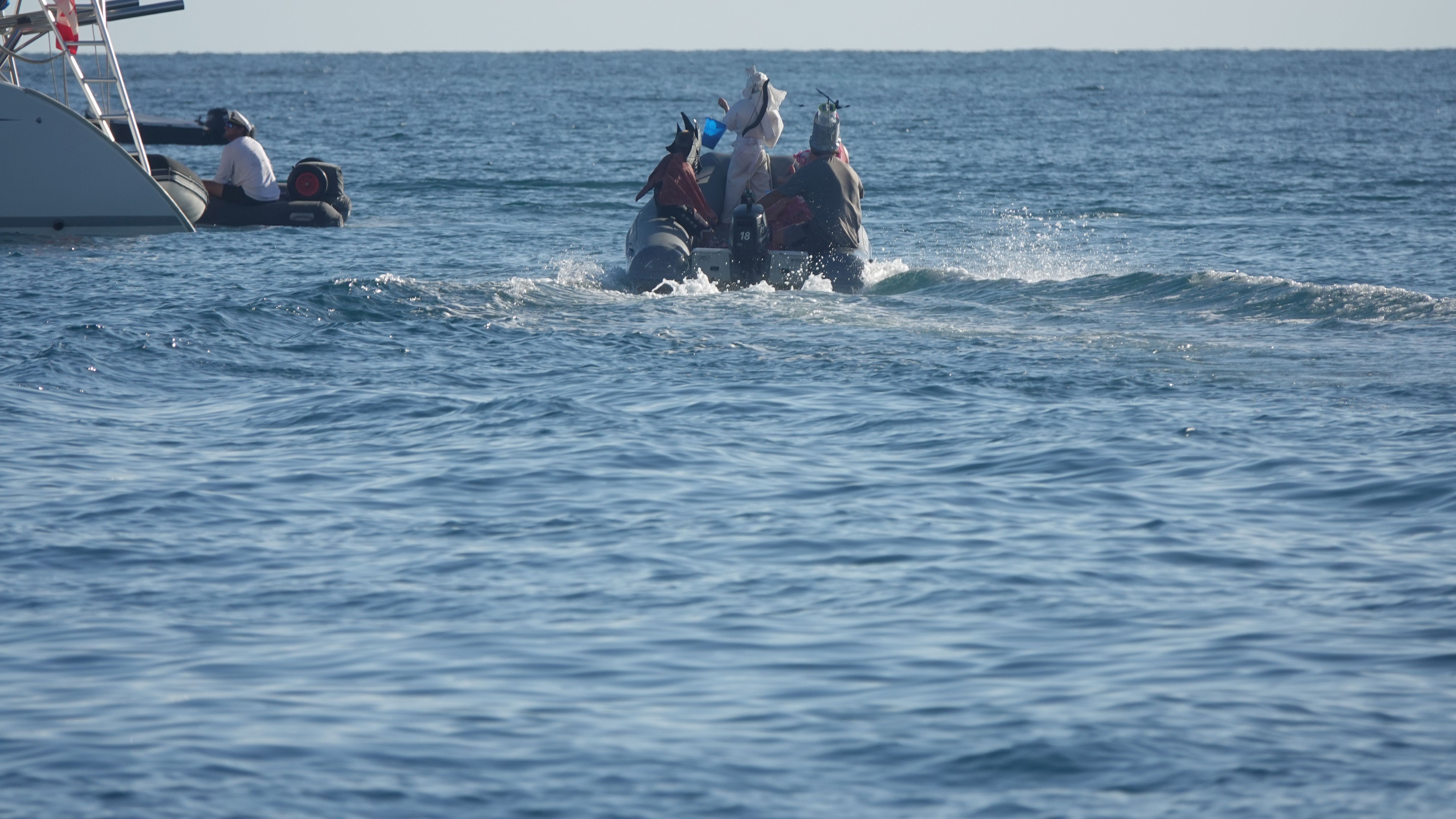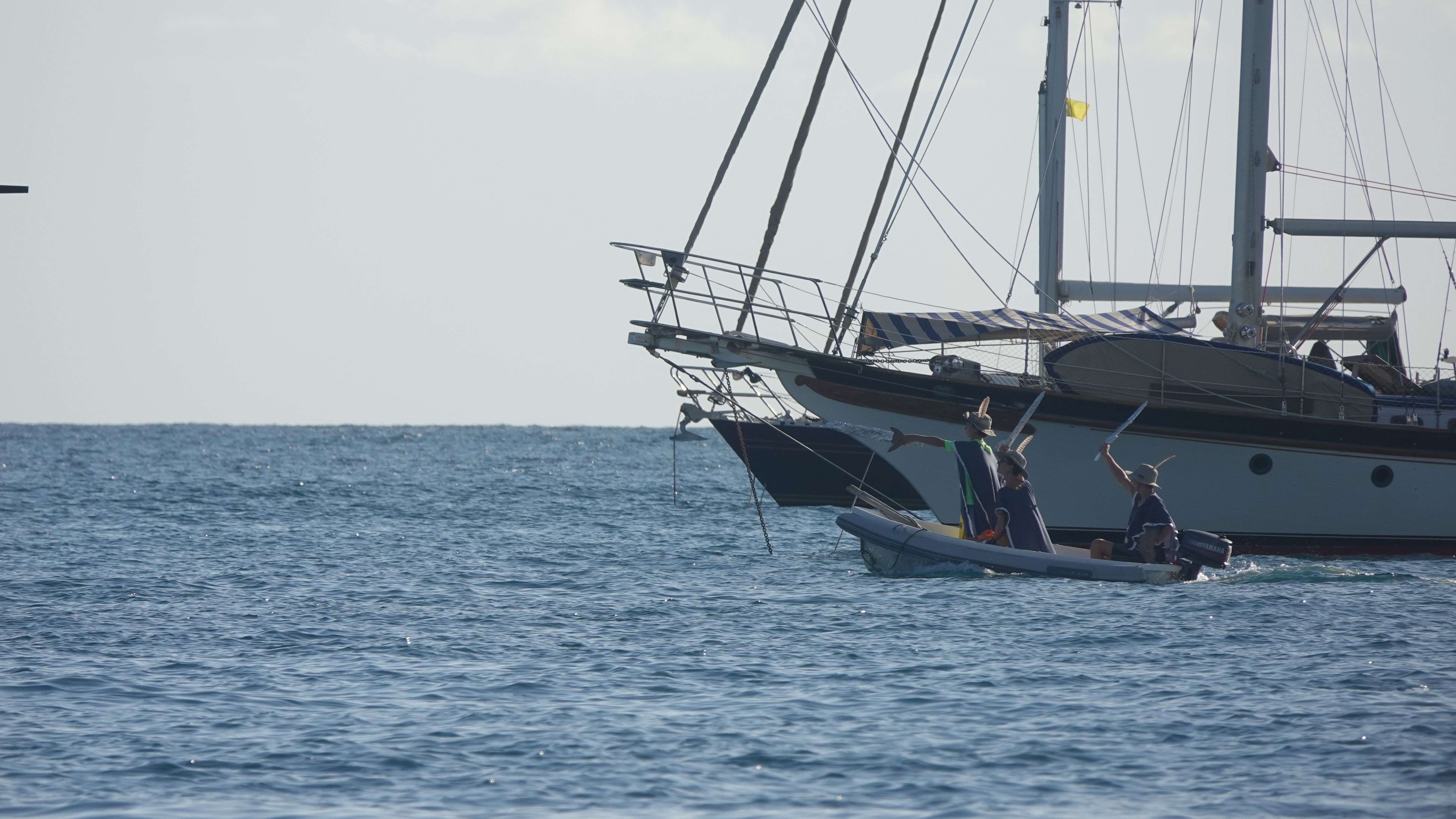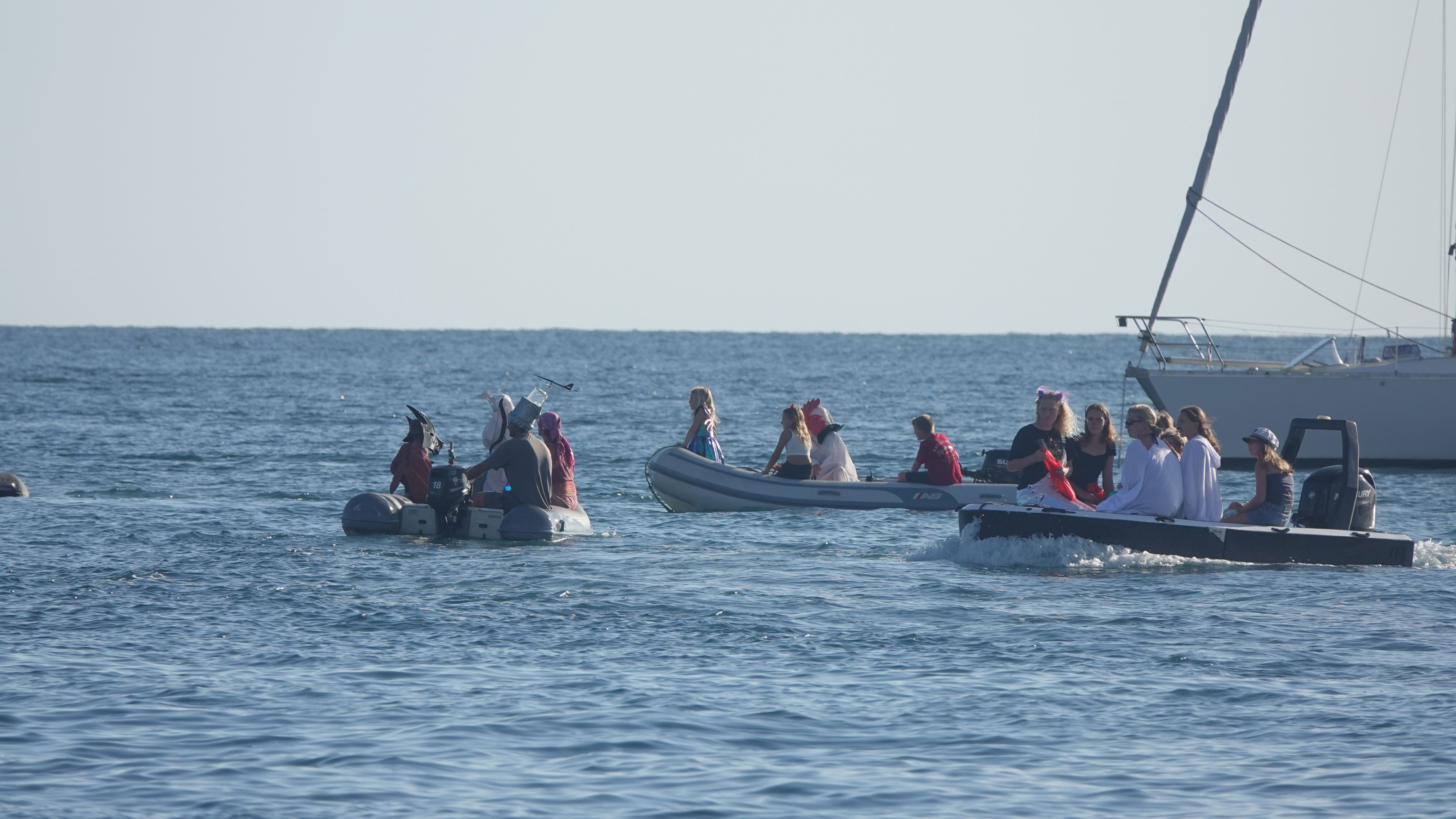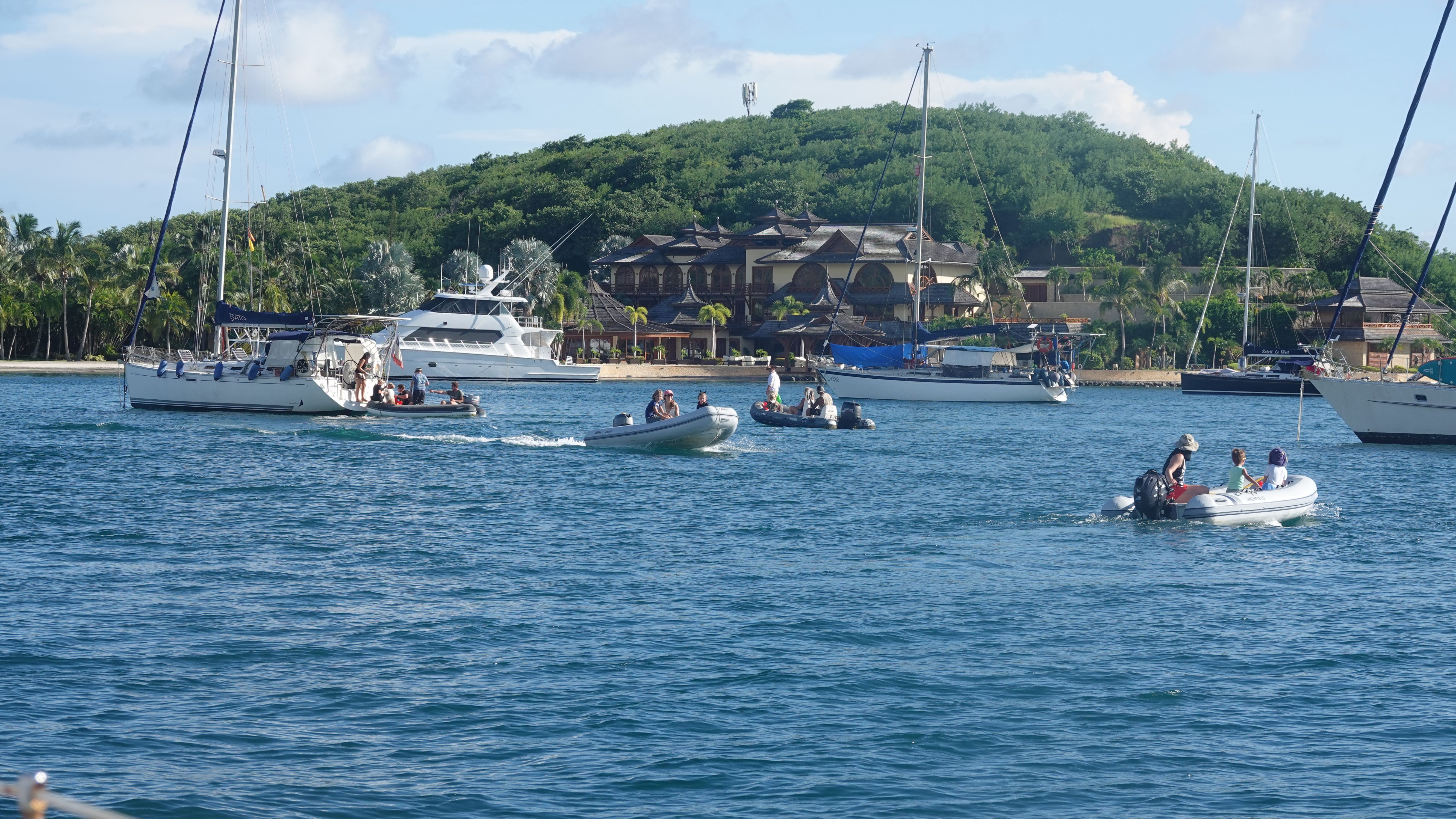Zurück an Bord gibt es noch eine kleine Überraschung. Der 31. Oktober ist Halloween und mit so vielen USA-geflaggten Booten wird das unter den Cruisern natürlich auch gefeiert. Dutzende Dinghies, gefüllt mit verkleideten Kindern düsen durch die Ankerbucht. Bei allen Ankerliegern, die ihre gelbe Q-Flagge gesetzt haben wird "Trick or treat!" gerufen und Naschis kassiert.