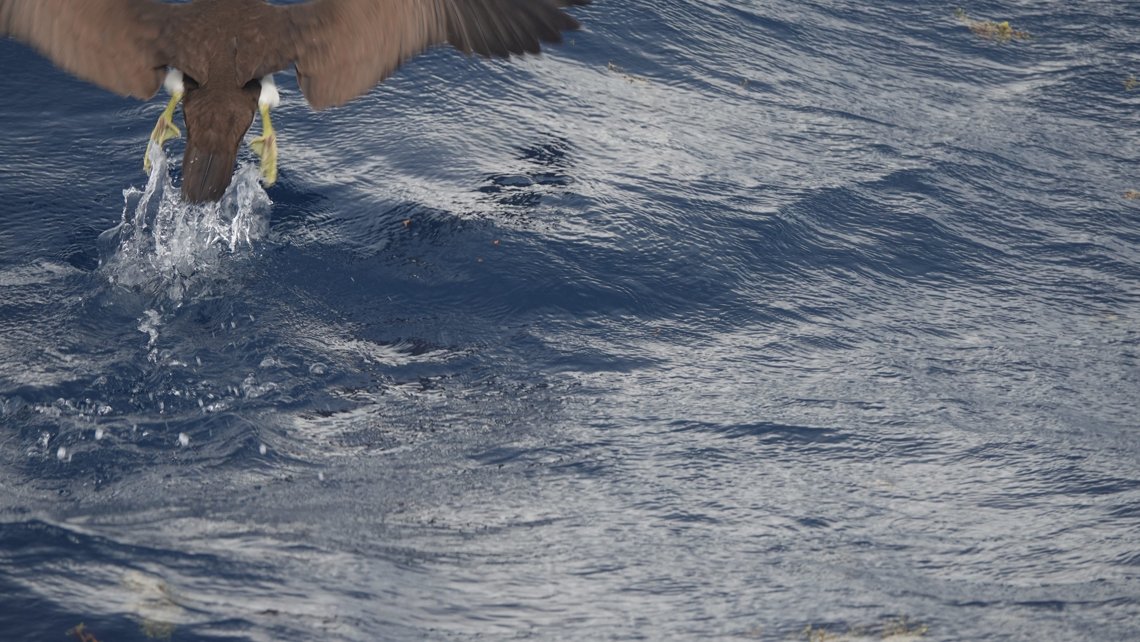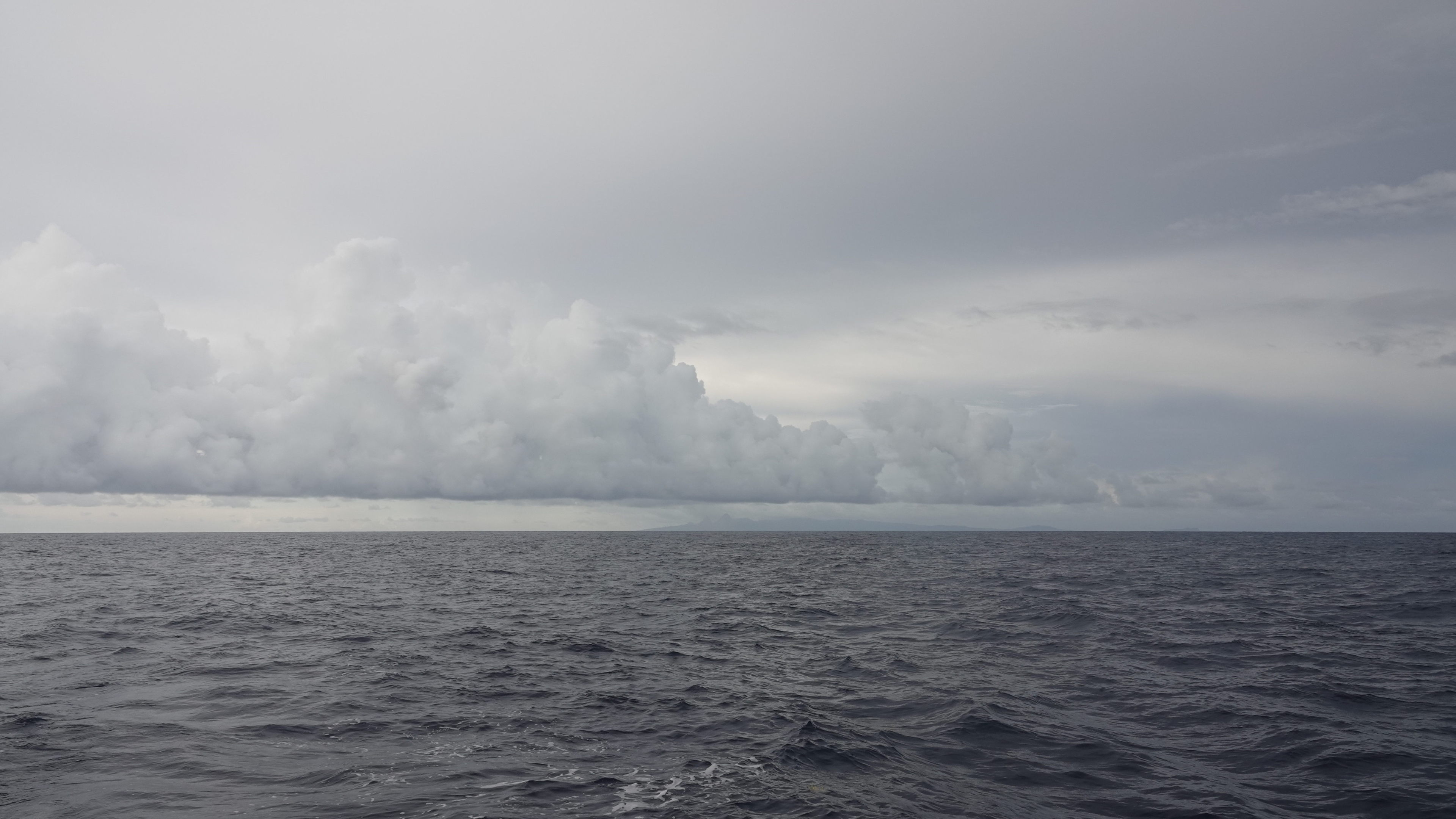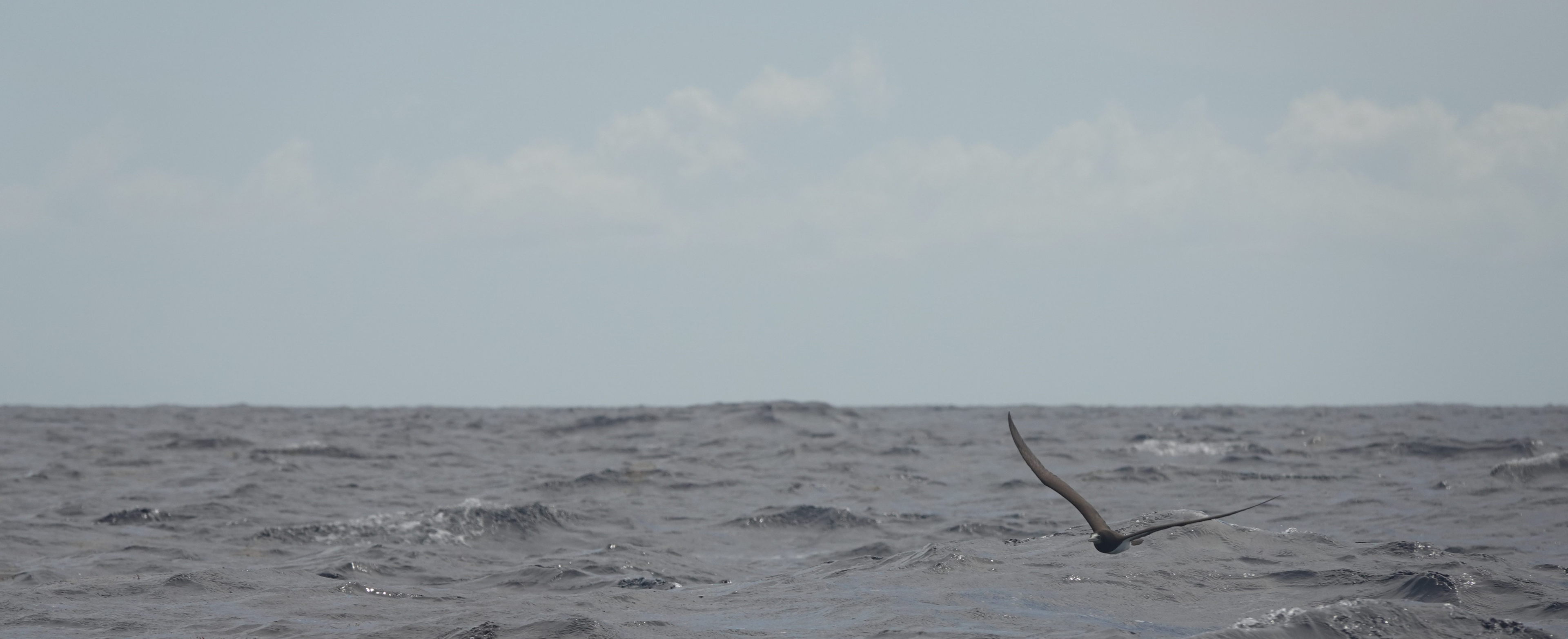 Ein paar braune Tölpel begleiten mich mehrere Stunden lang. Fliegen ein Stück vorraus, oft mit einem gefährlich dichten Gleitflug am Vorstag vorbei, setzen sich hundert Meter vorm Bug aufs Wasser und warten bis Lua vorbeigezogen ist. Dann wiederholt sich das Spiel.