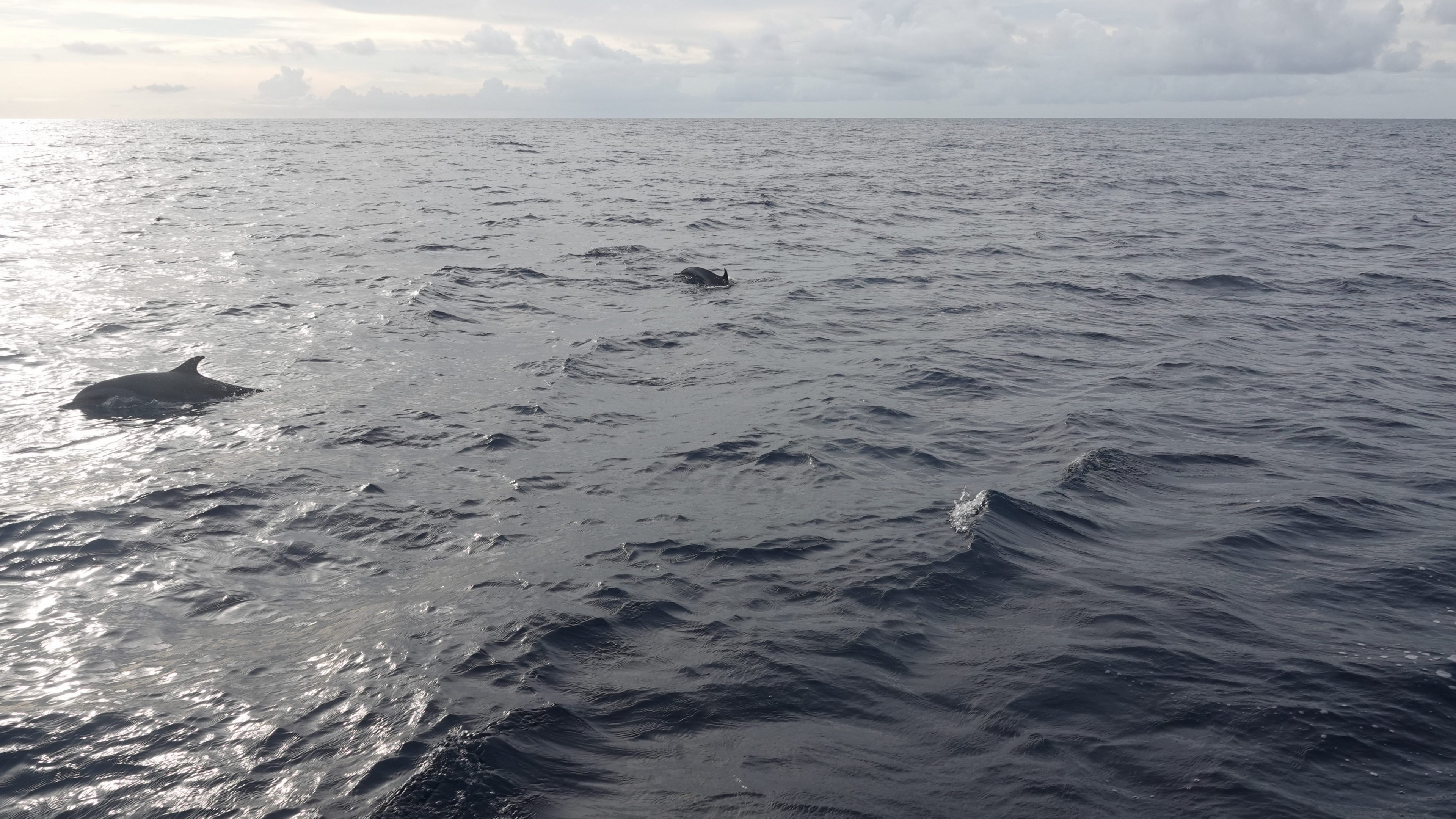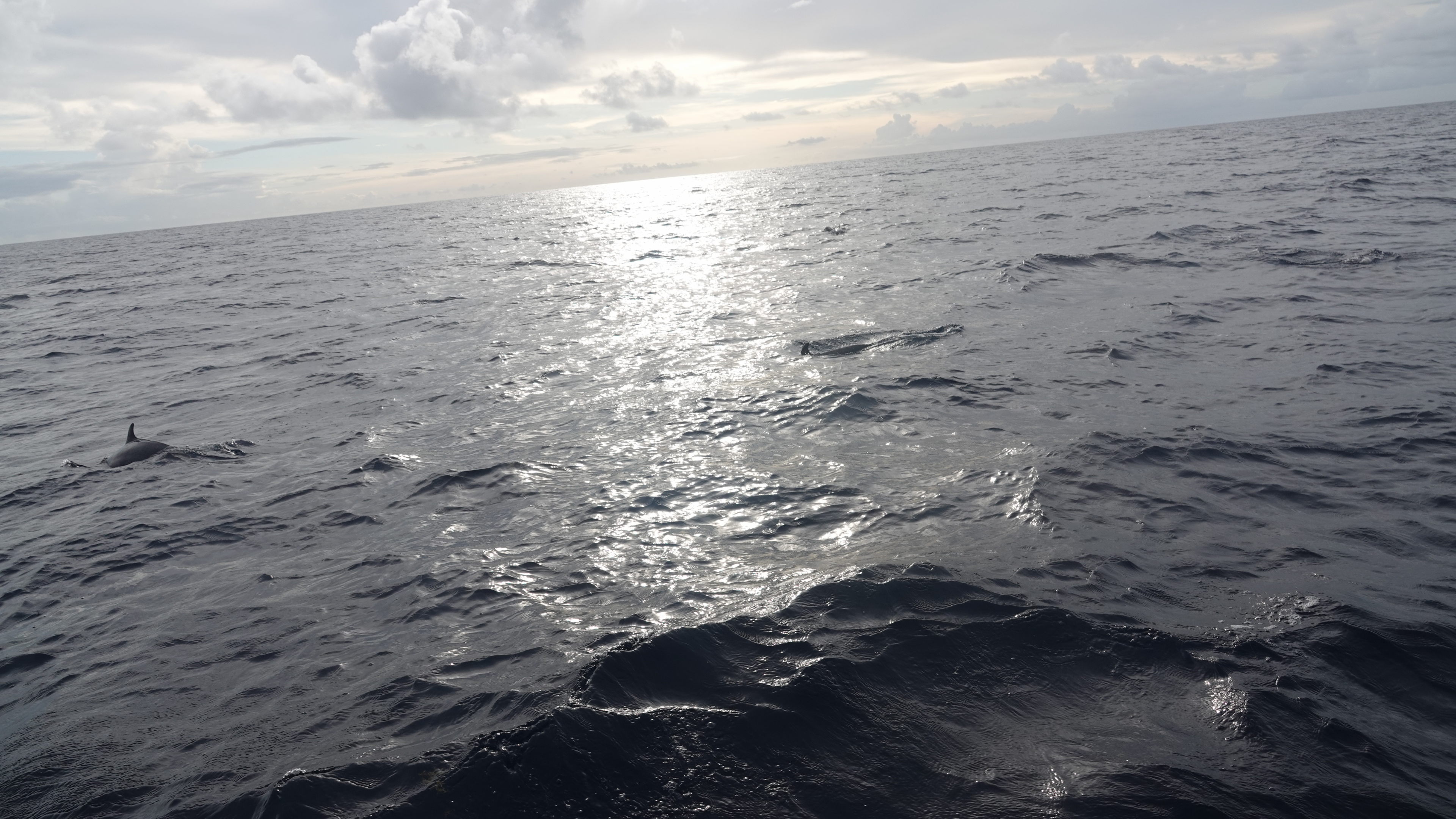Ein paar Meilen vor der Nordspitze von St Vincent kommt eine Delfinschule zu Besuch.