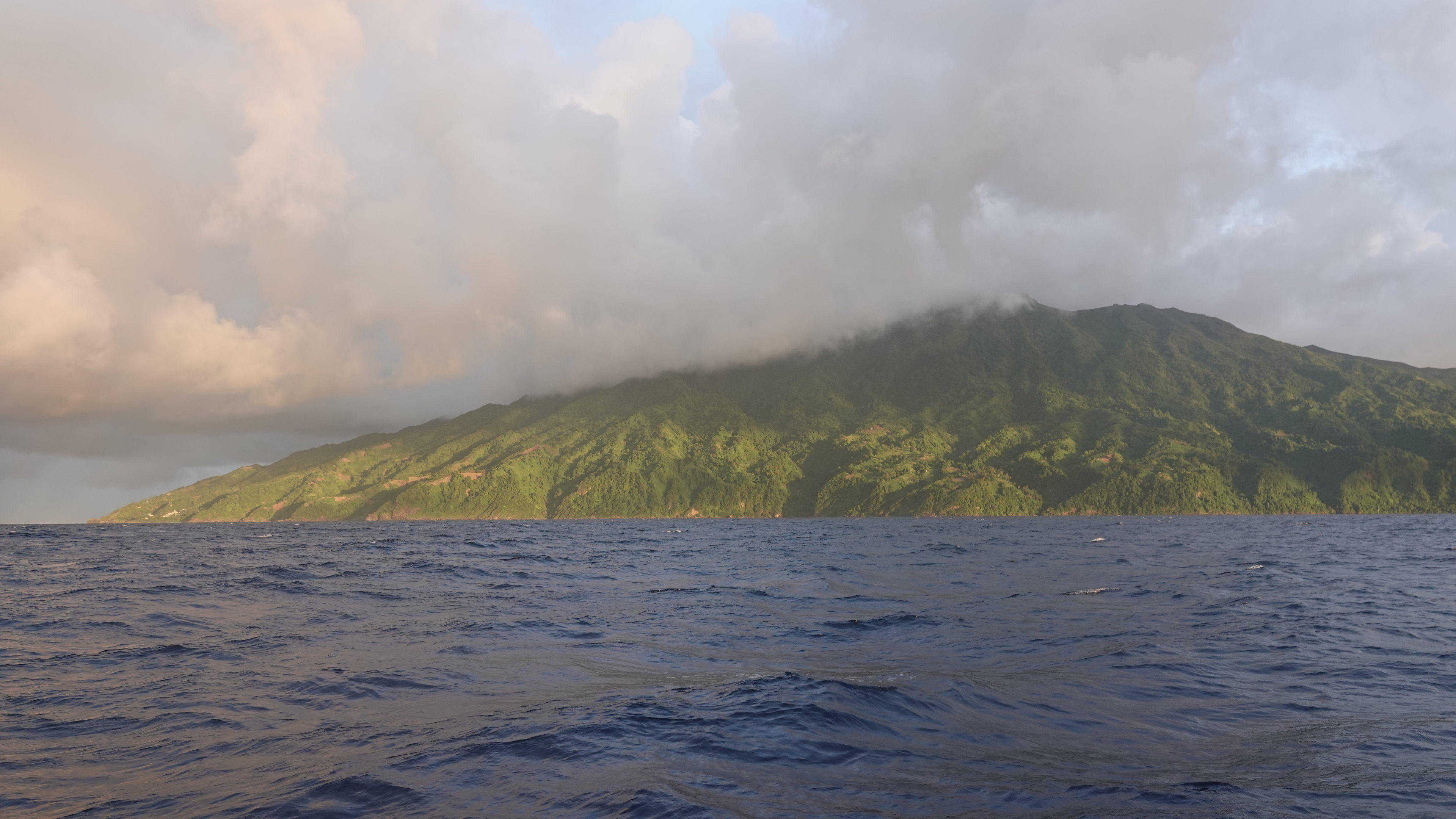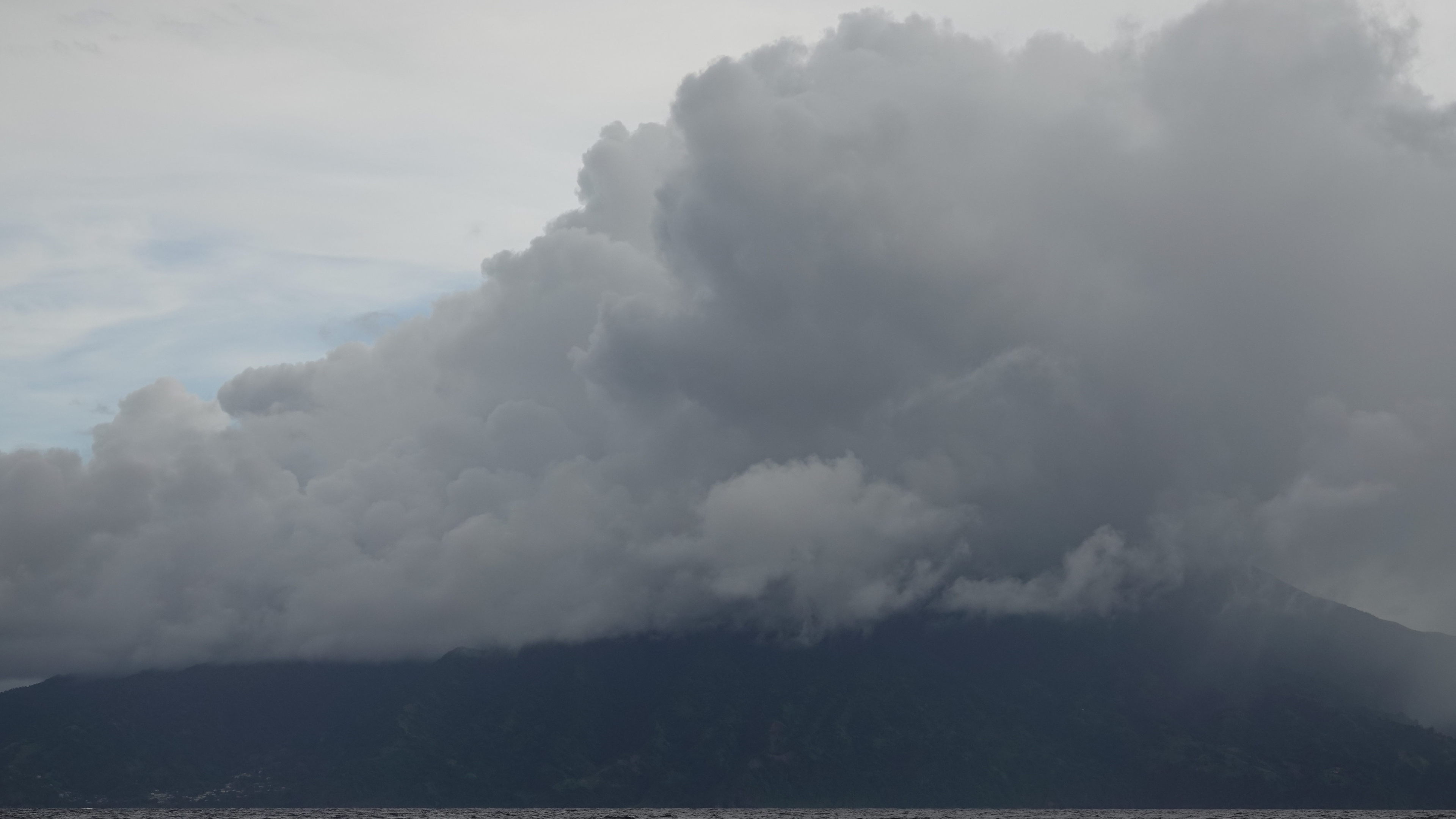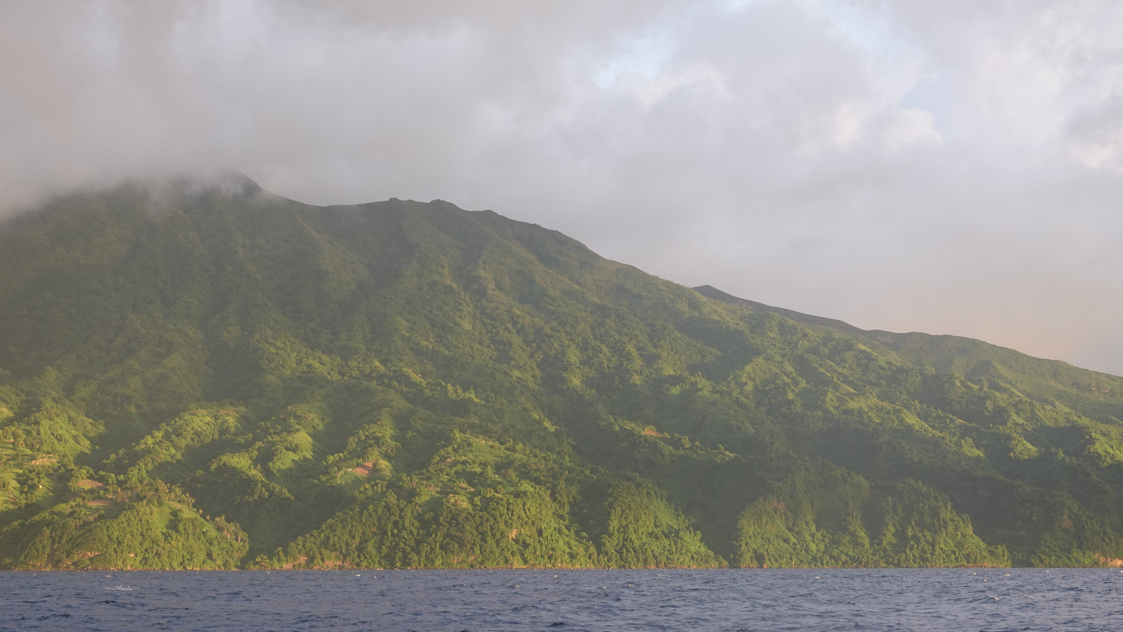 Den ganzen Tag lang klebt eine dicke Wolkenbank an den Gipfeln von St Vincent fest.