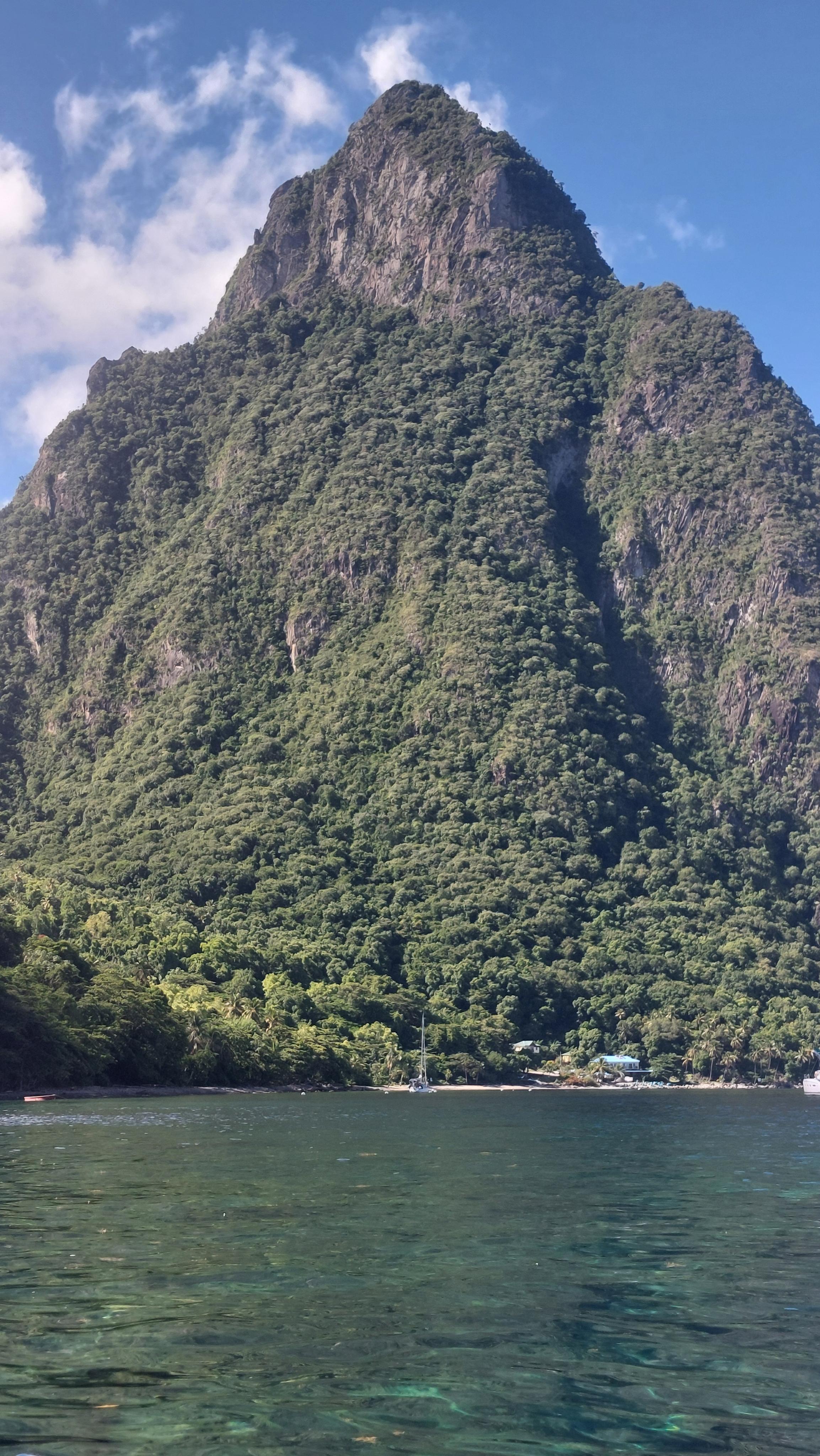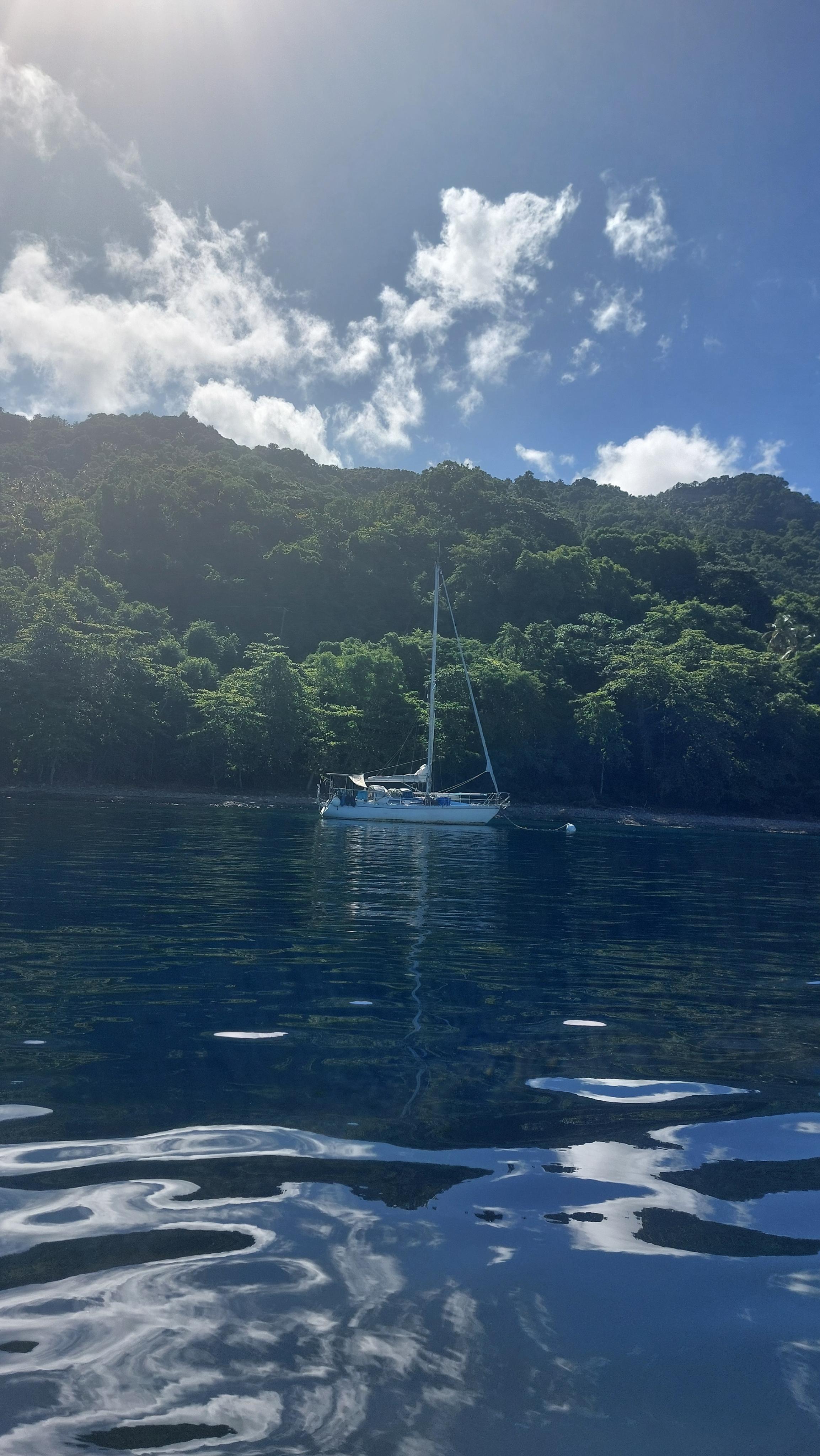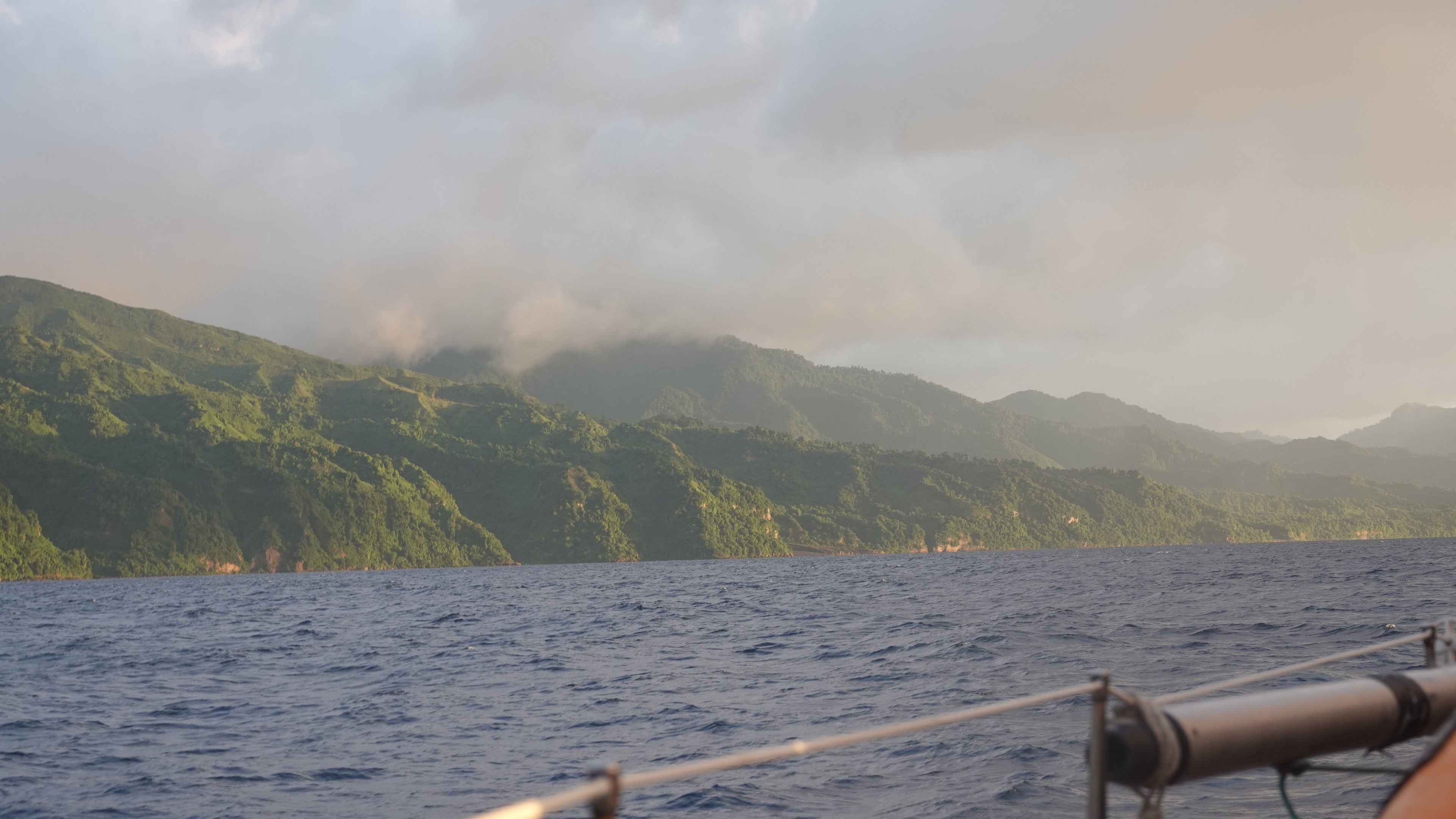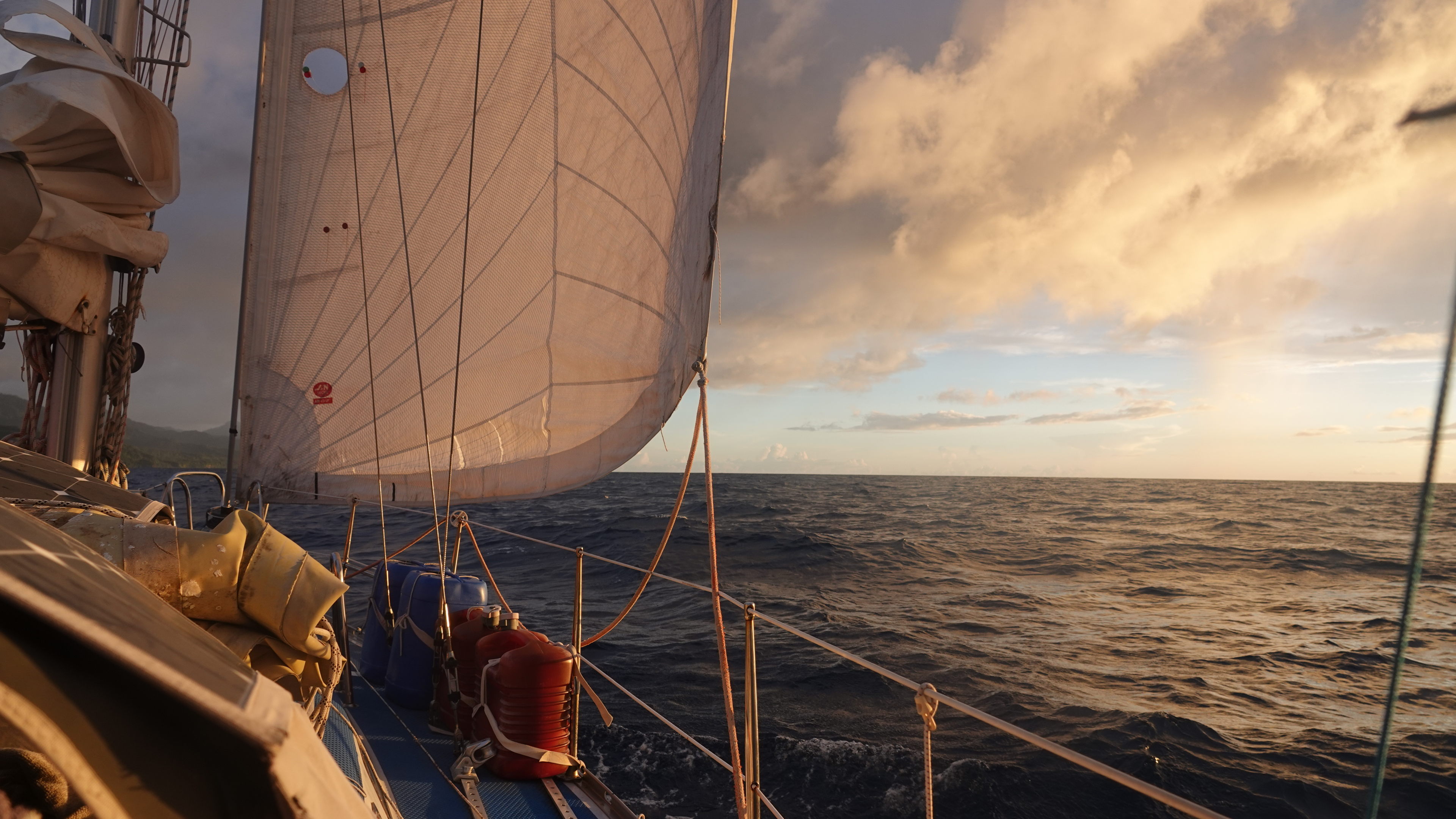 Die ersten paar Meilen merkt man den Einfluss der Pitons. Es gibt kaum Wind, der Hauch der da ist kommt aber aus allen Richtungen im ständigen Wechsel. Erst nach einer guten Stunde wird es etwas beständiger und es ist möglich länger als zwei Minuten am Stück zu segeln.