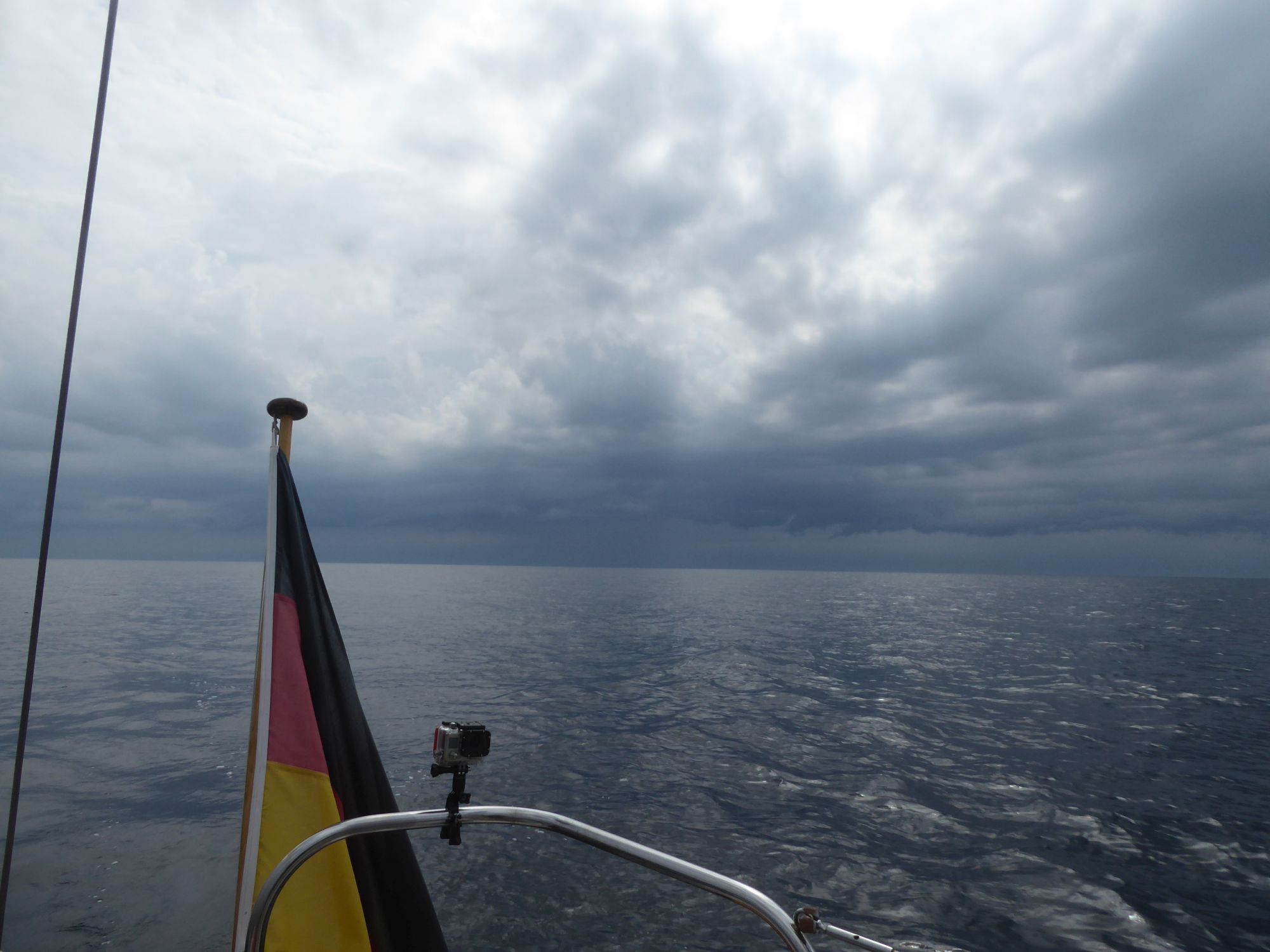des Unwetters das Großsegel weg und dümpel nur mit der Genua vor