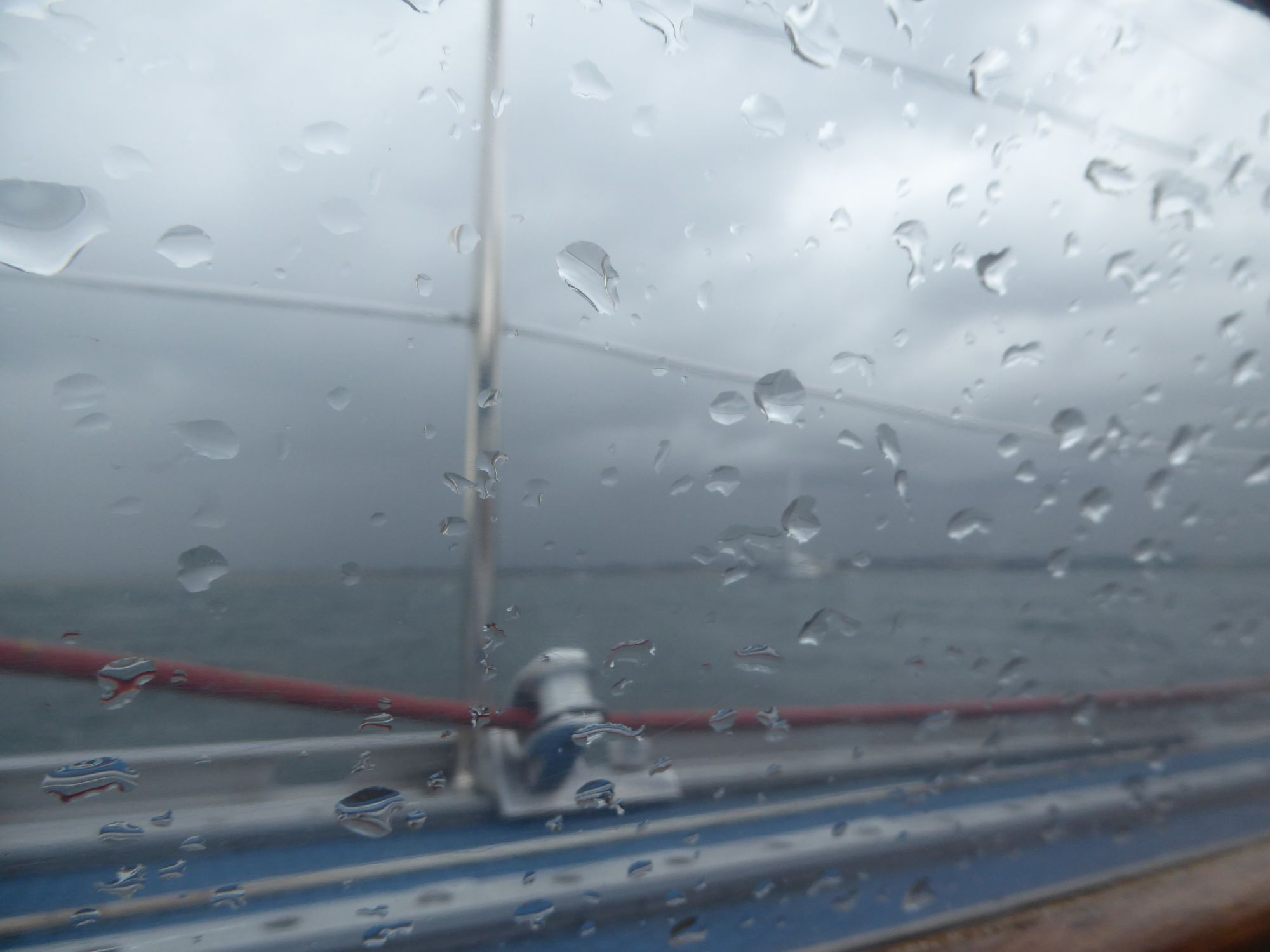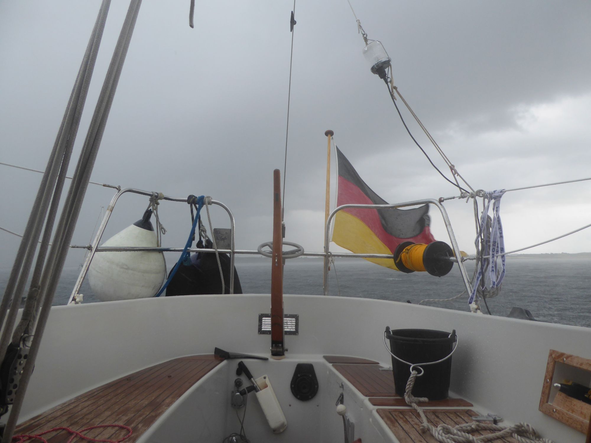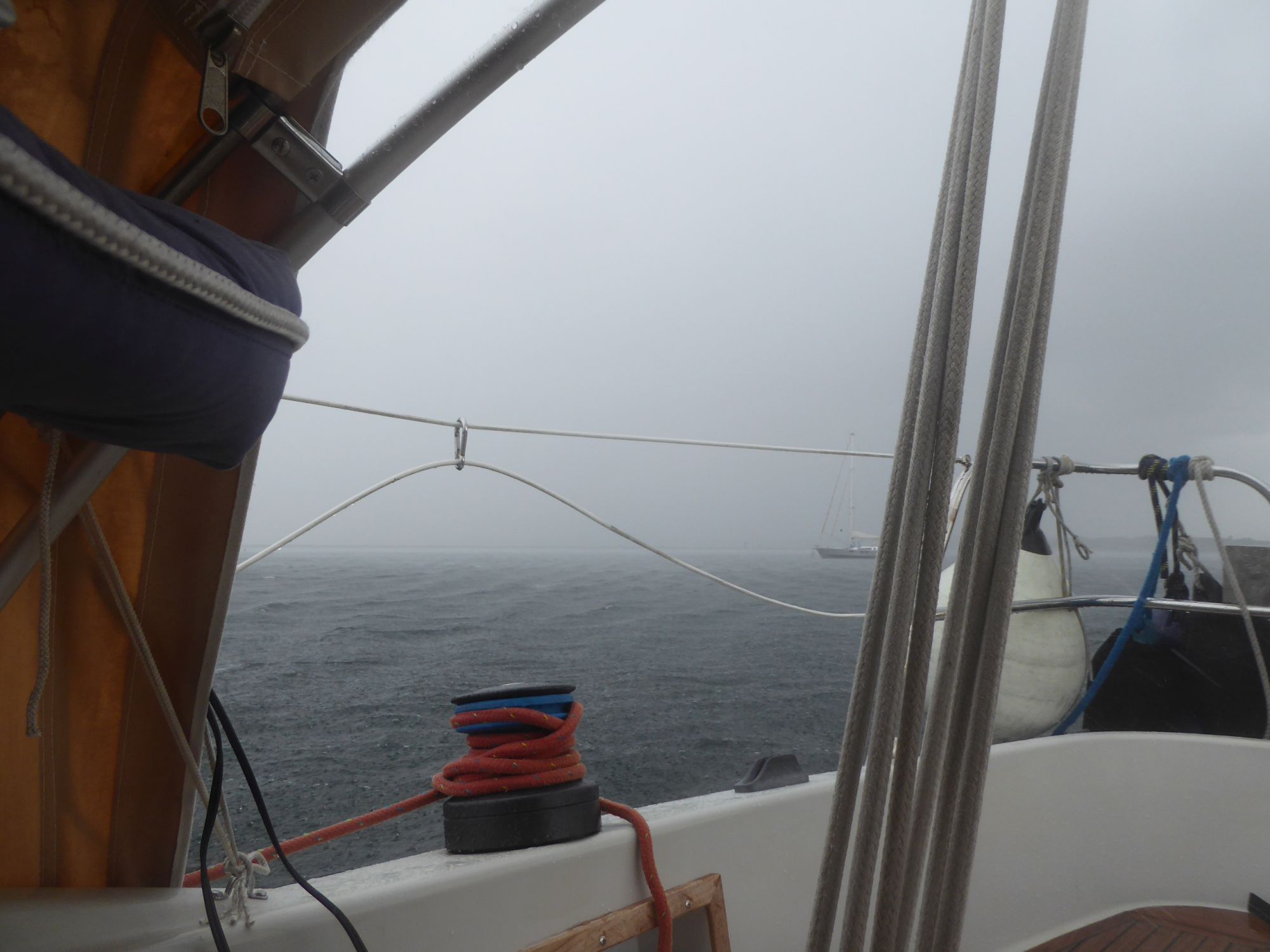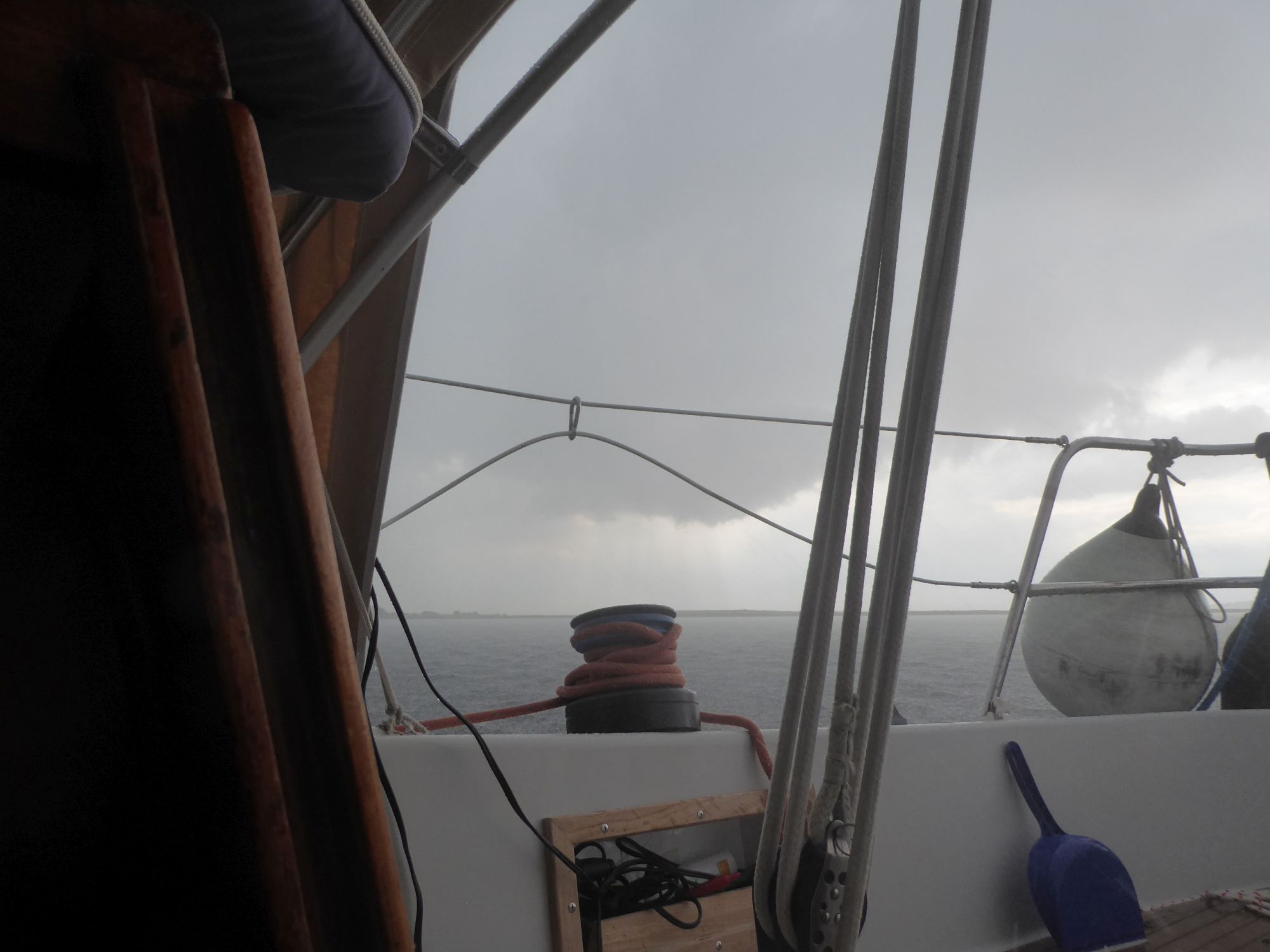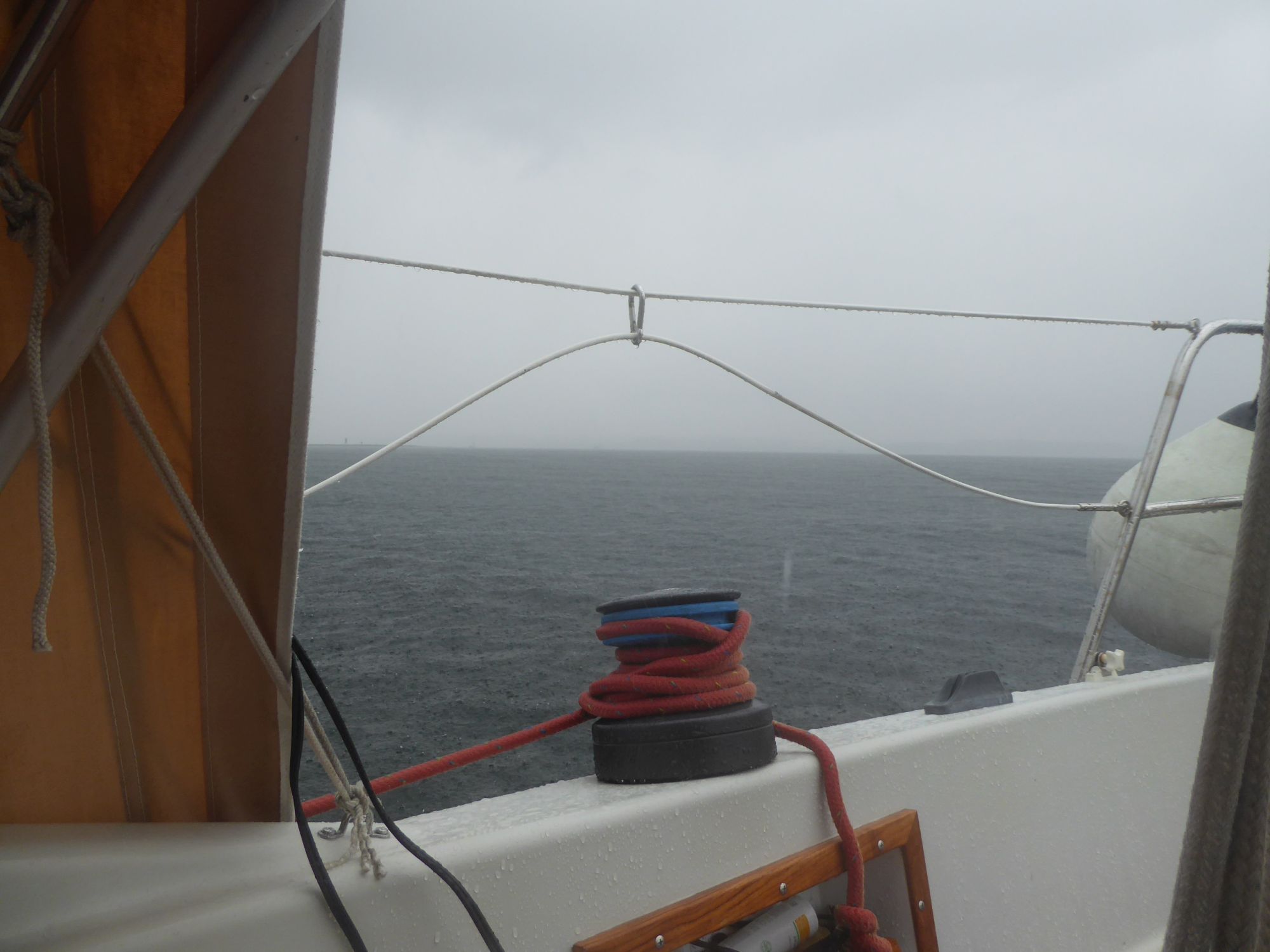 Der Wind hat wieder zugelegt. Immer wieder prasseln Schauer aufs Deck. Erst kurz vor zwei krieche ich aus der Koje. Mehr als fünf Minuten Sonne am Stück gibt es heute nicht.