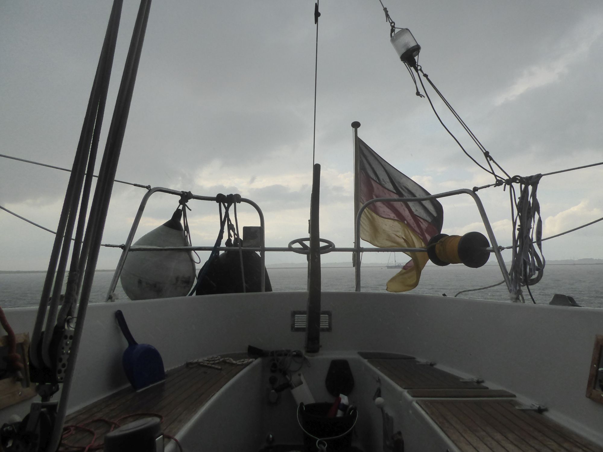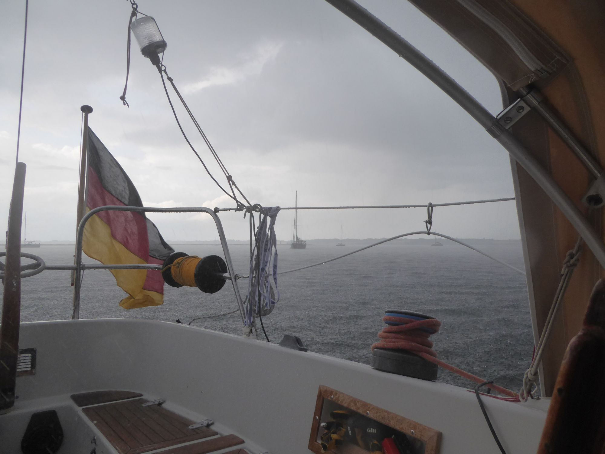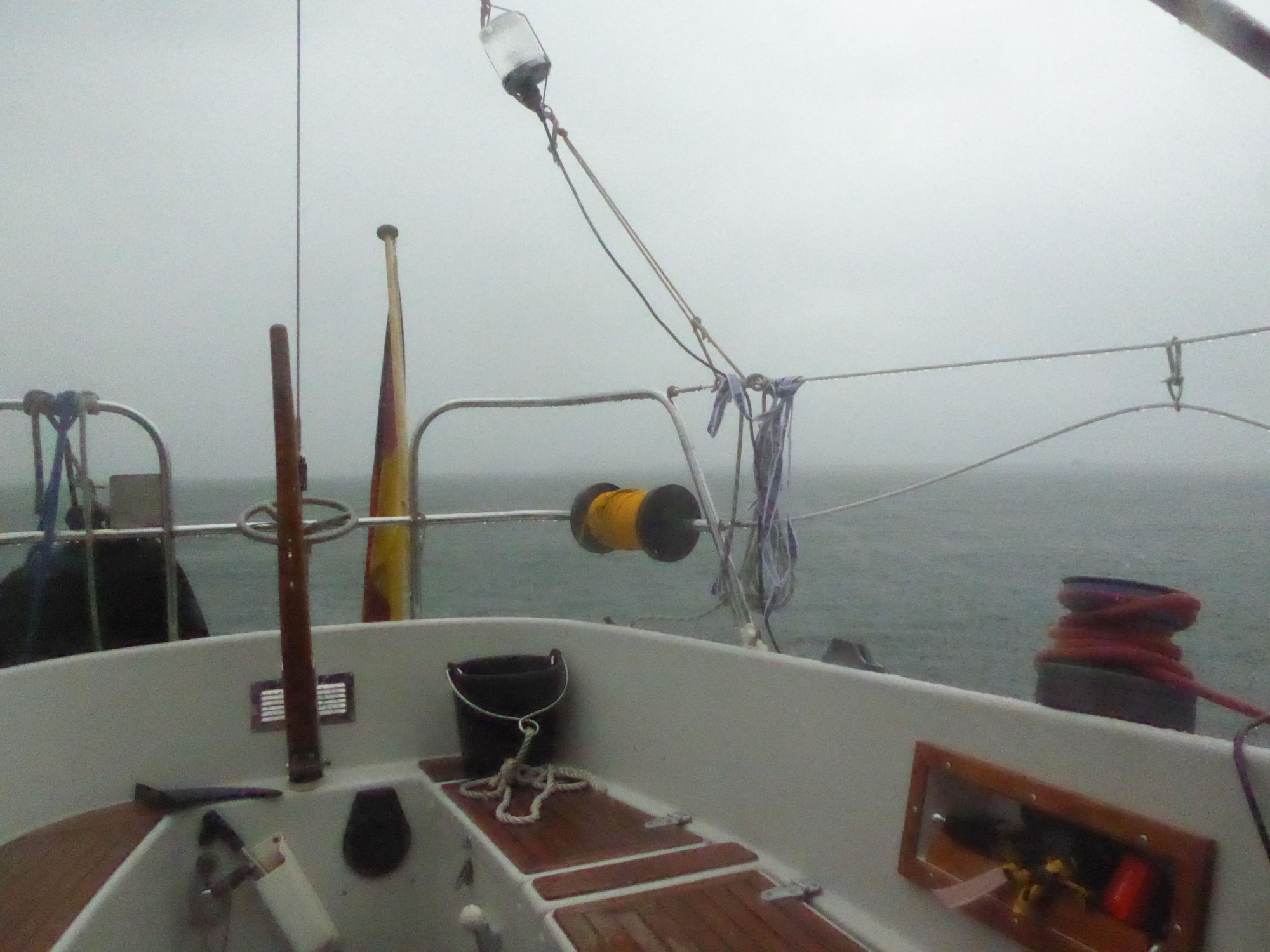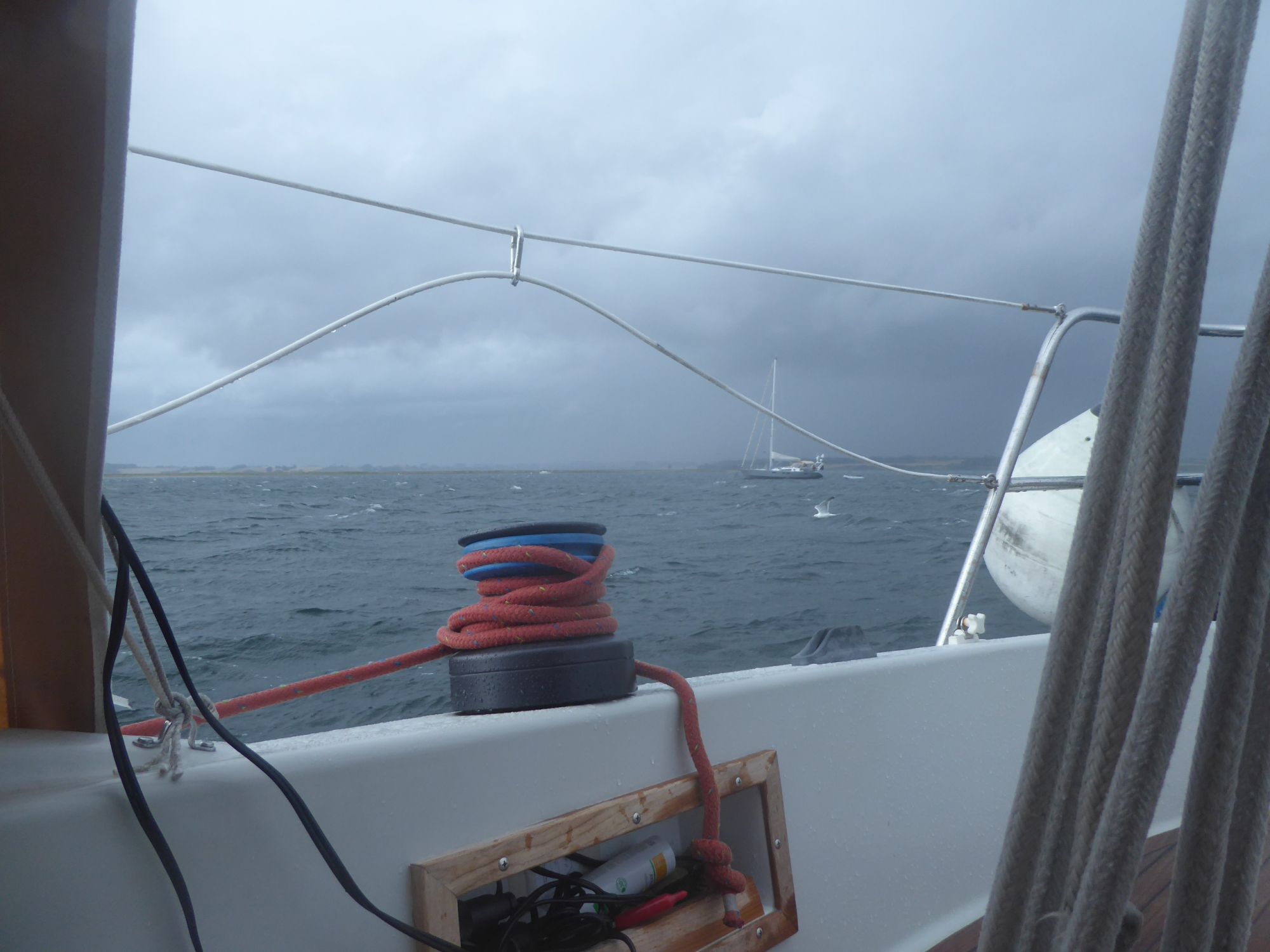 Der Wind hat wieder zugelegt. Immer wieder prasseln Schauer aufs Deck. Erst kurz vor zwei krieche ich aus der Koje. Mehr als fünf Minuten Sonne am Stück gibt es heute nicht.