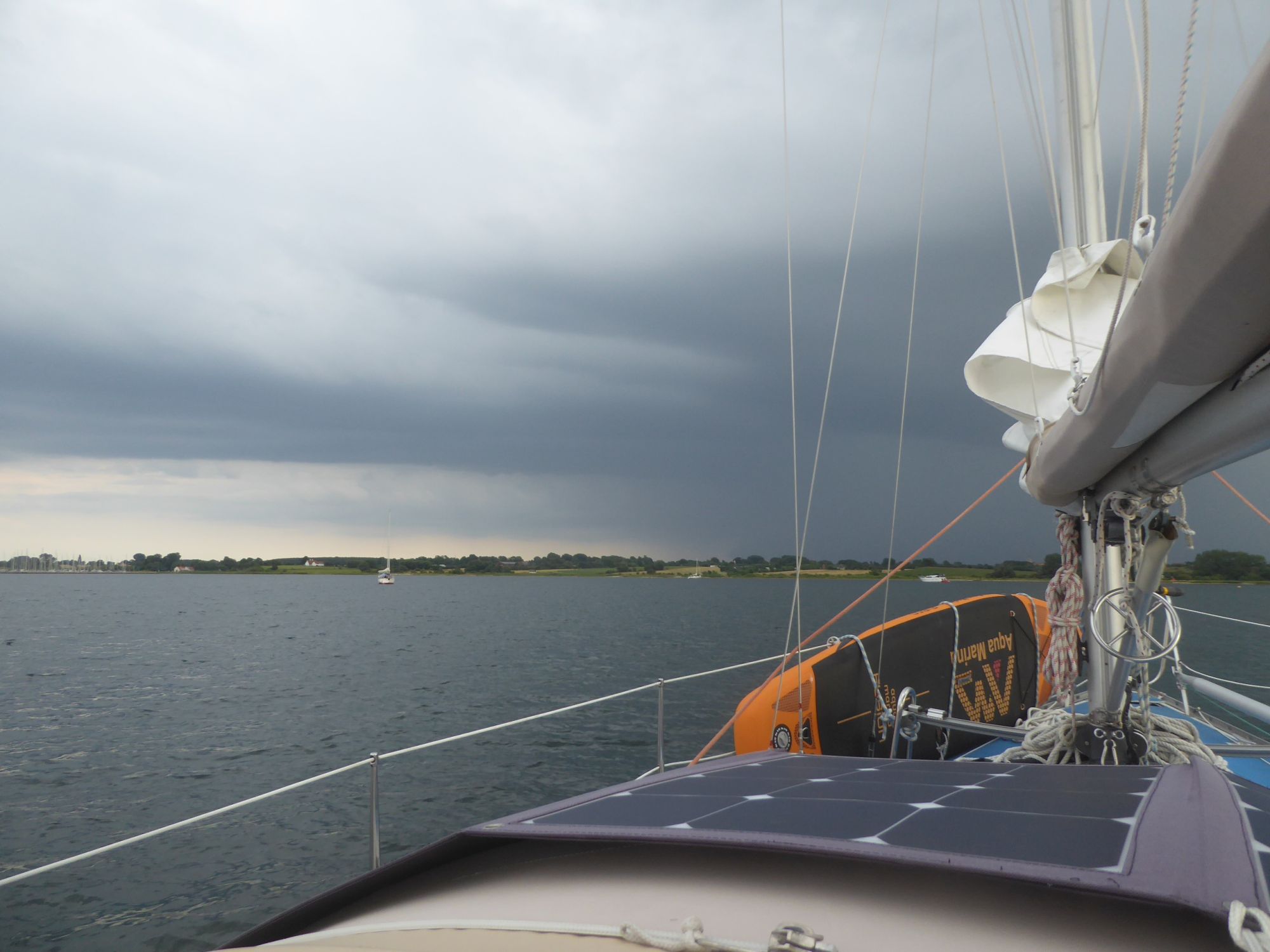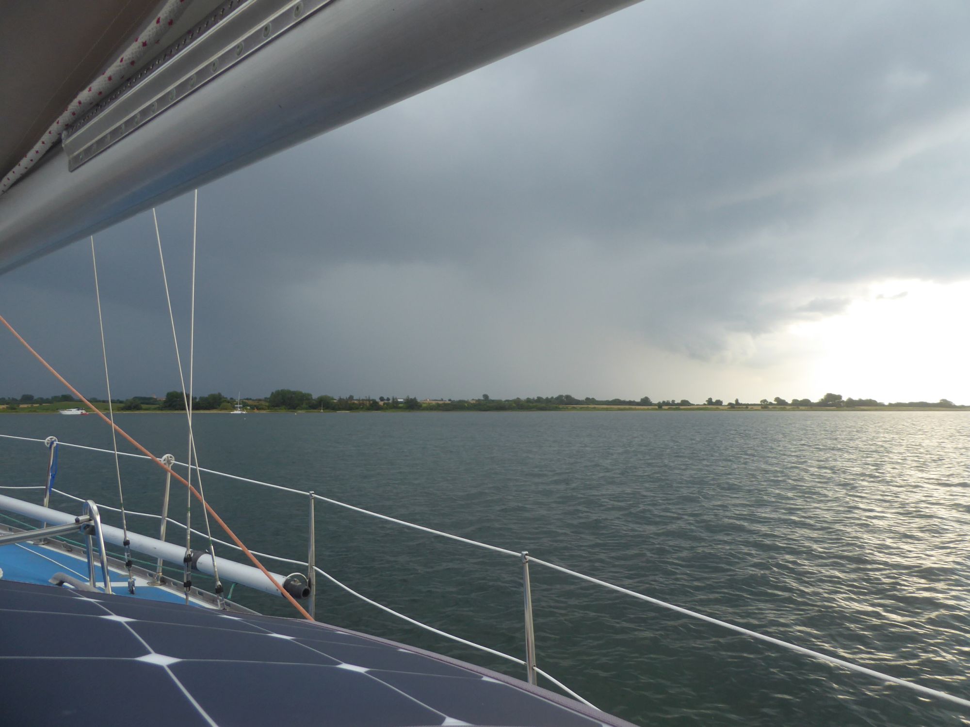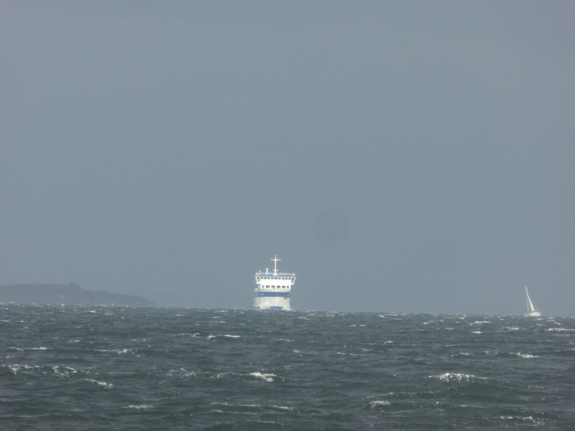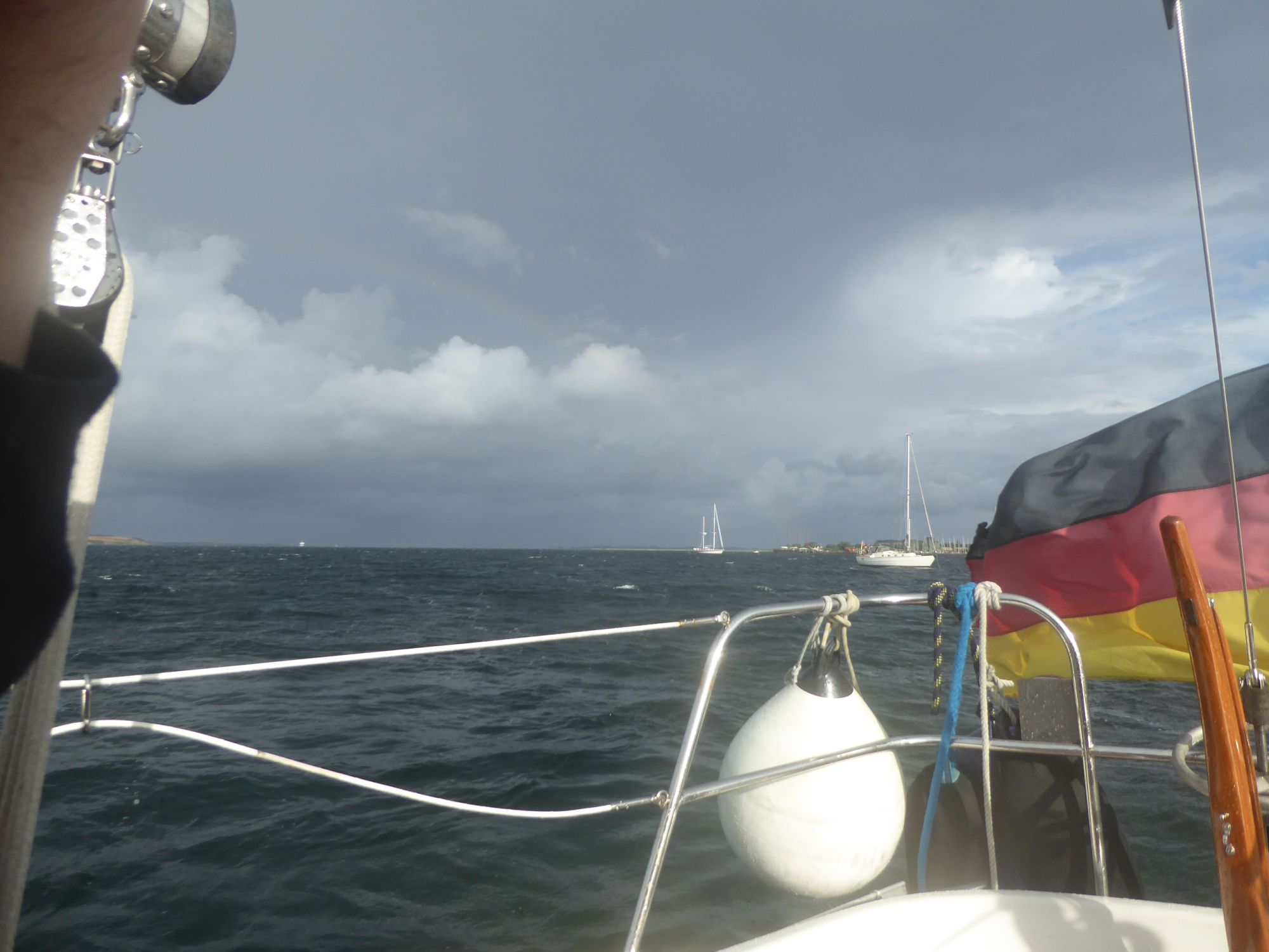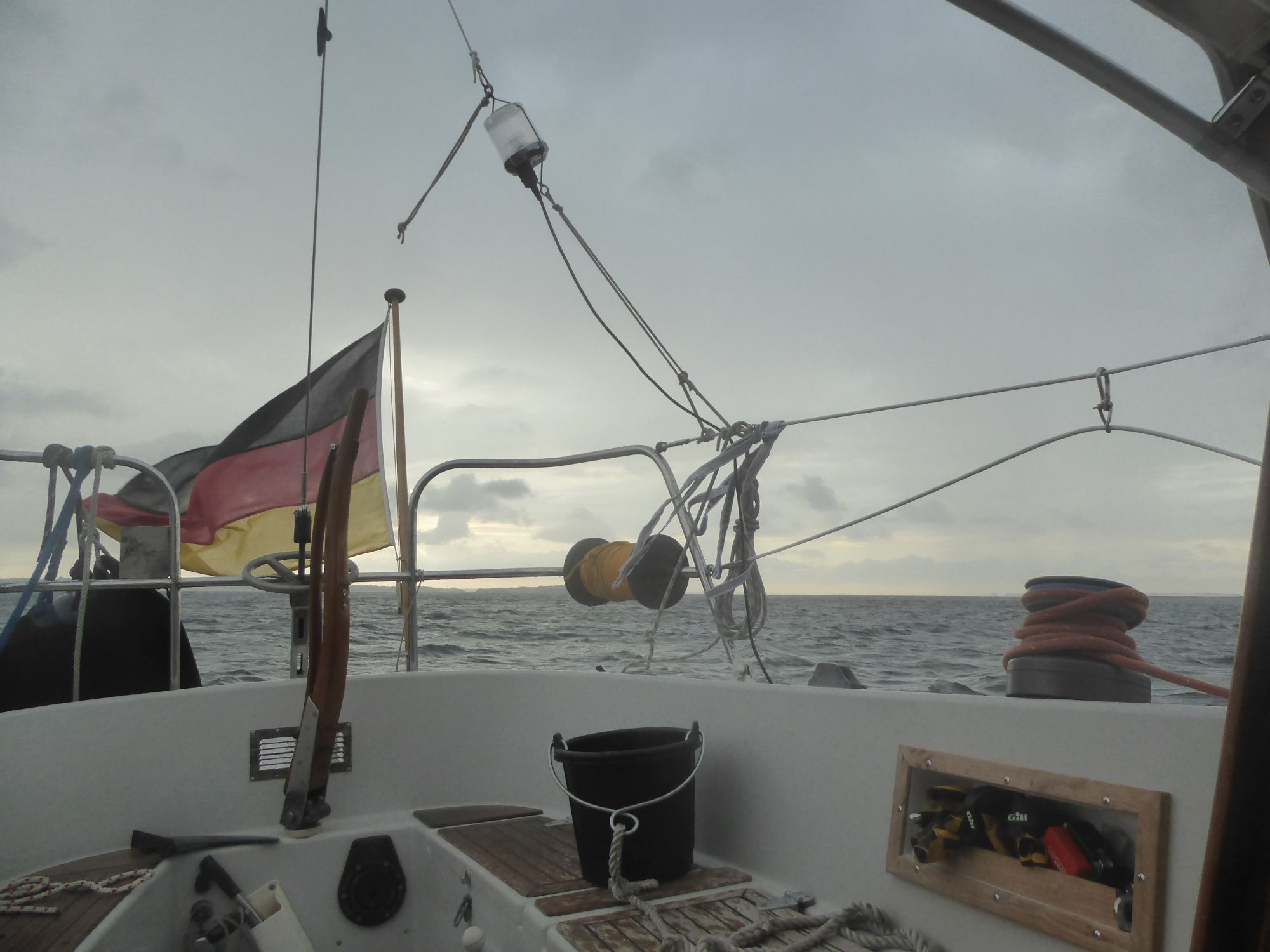 Der Wind hat wieder zugelegt. Immer wieder prasseln Schauer aufs Deck. Erst kurz vor zwei krieche ich aus der Koje. Mehr als fünf Minuten Sonne am Stück gibt es heute nicht.