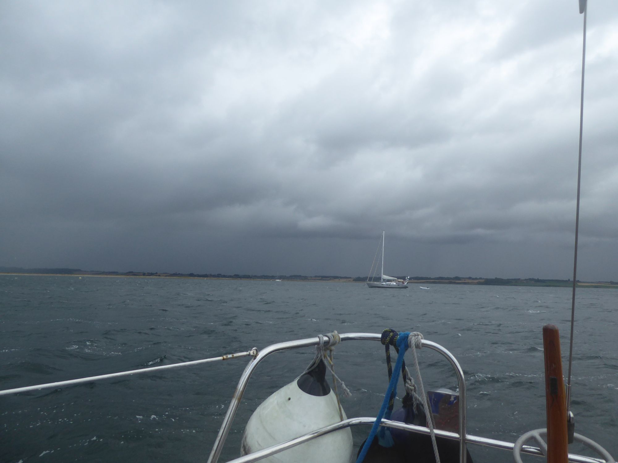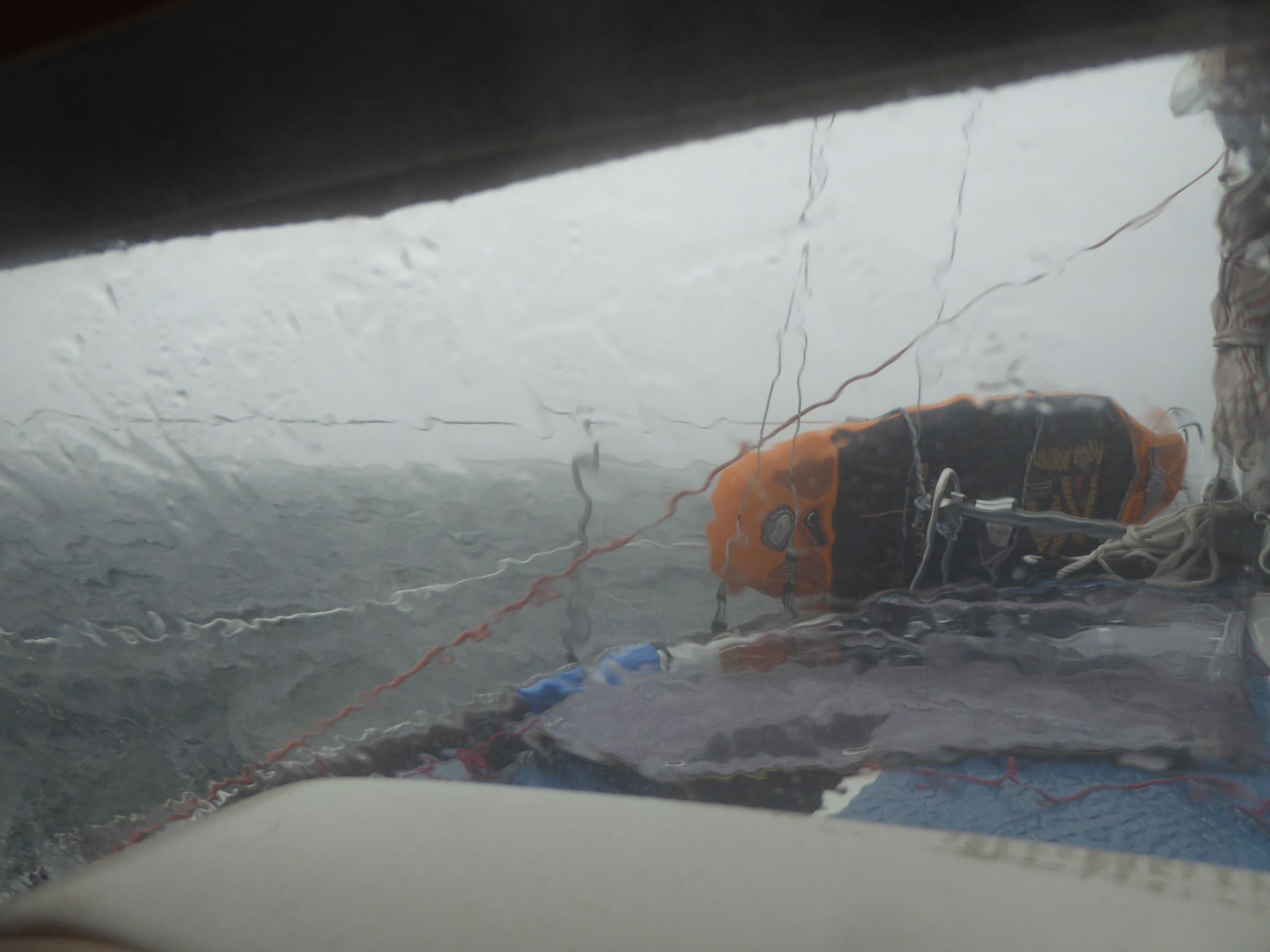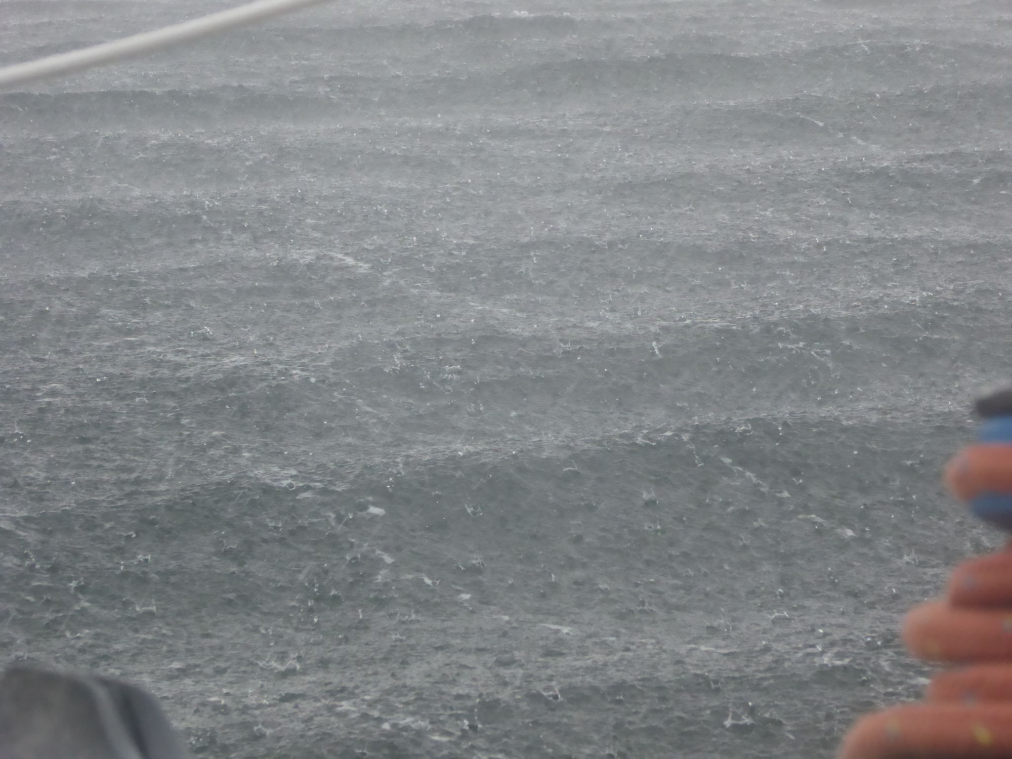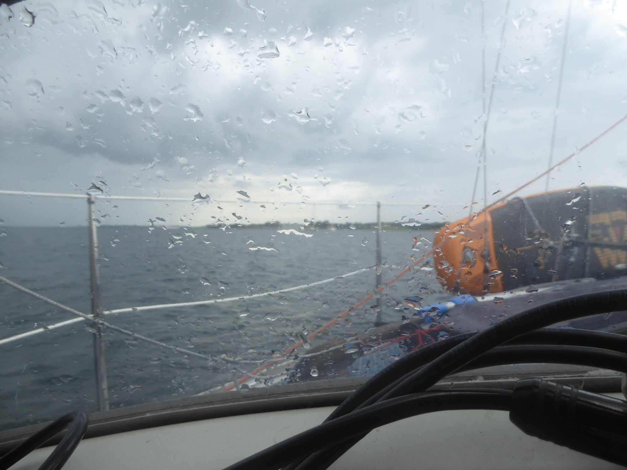 Der Wind hat wieder zugelegt. Immer wieder prasseln Schauer aufs Deck. Erst kurz vor zwei krieche ich aus der Koje. Mehr als fünf Minuten Sonne am Stück gibt es heute nicht.