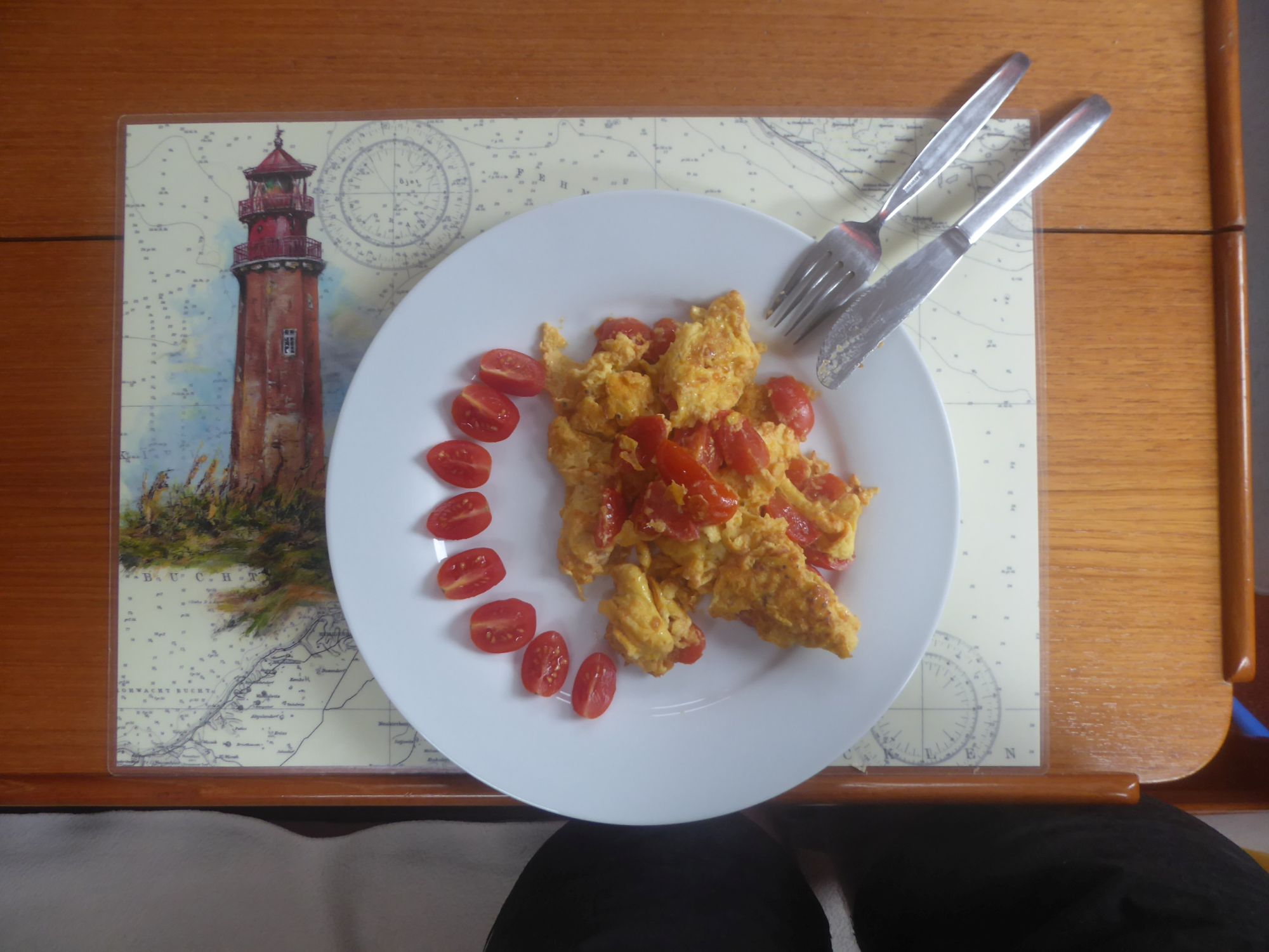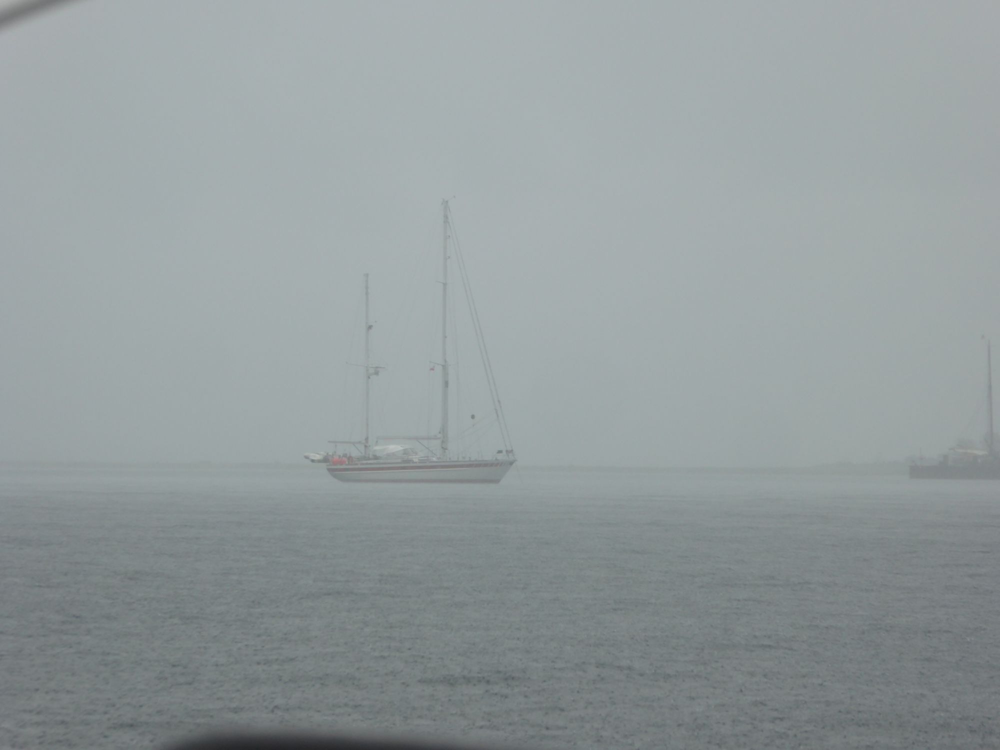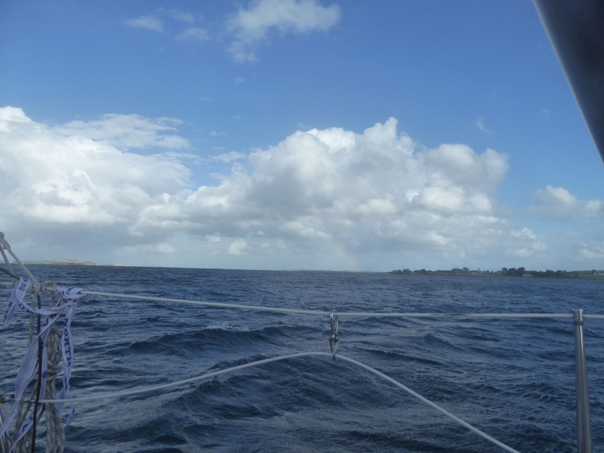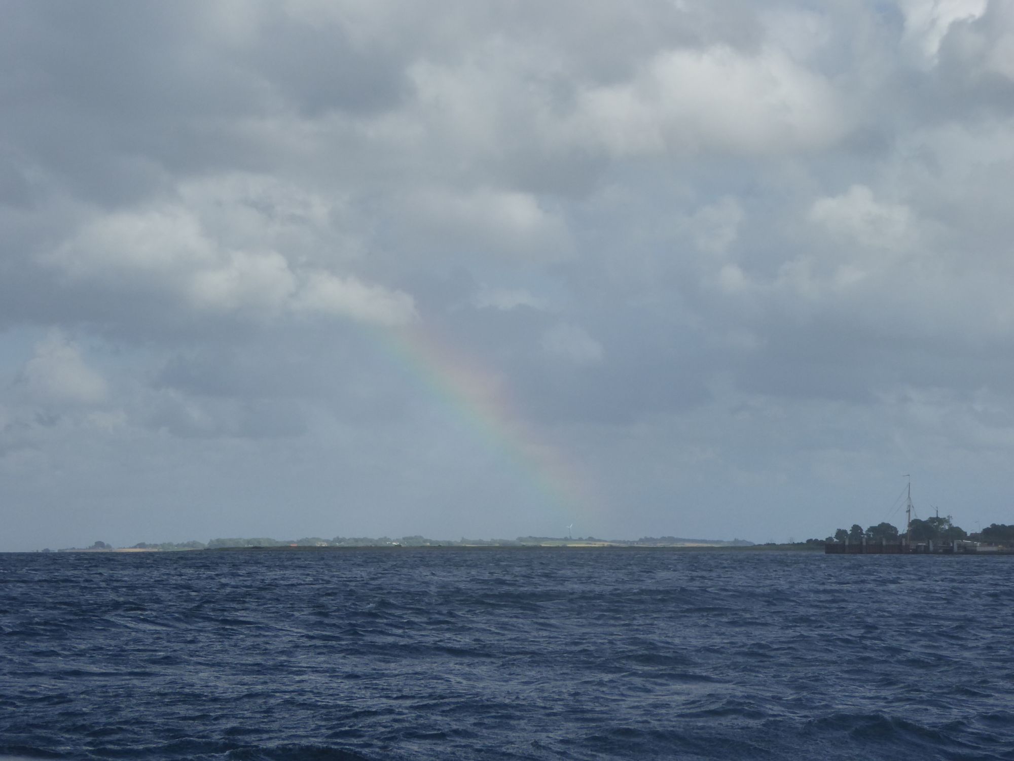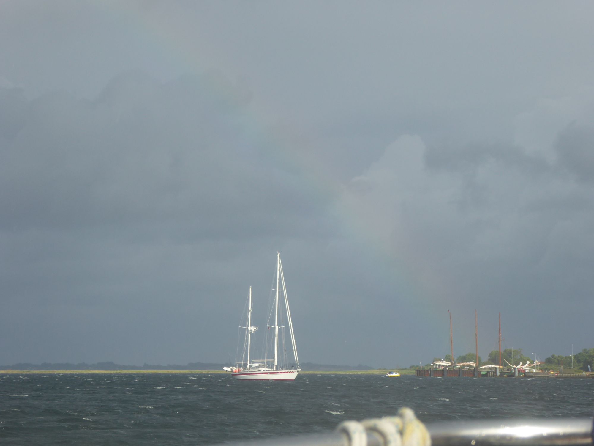 Der Wind hat wieder zugelegt. Immer wieder prasseln Schauer aufs Deck. Erst kurz vor zwei krieche ich aus der Koje. Mehr als fünf Minuten Sonne am Stück gibt es heute nicht.