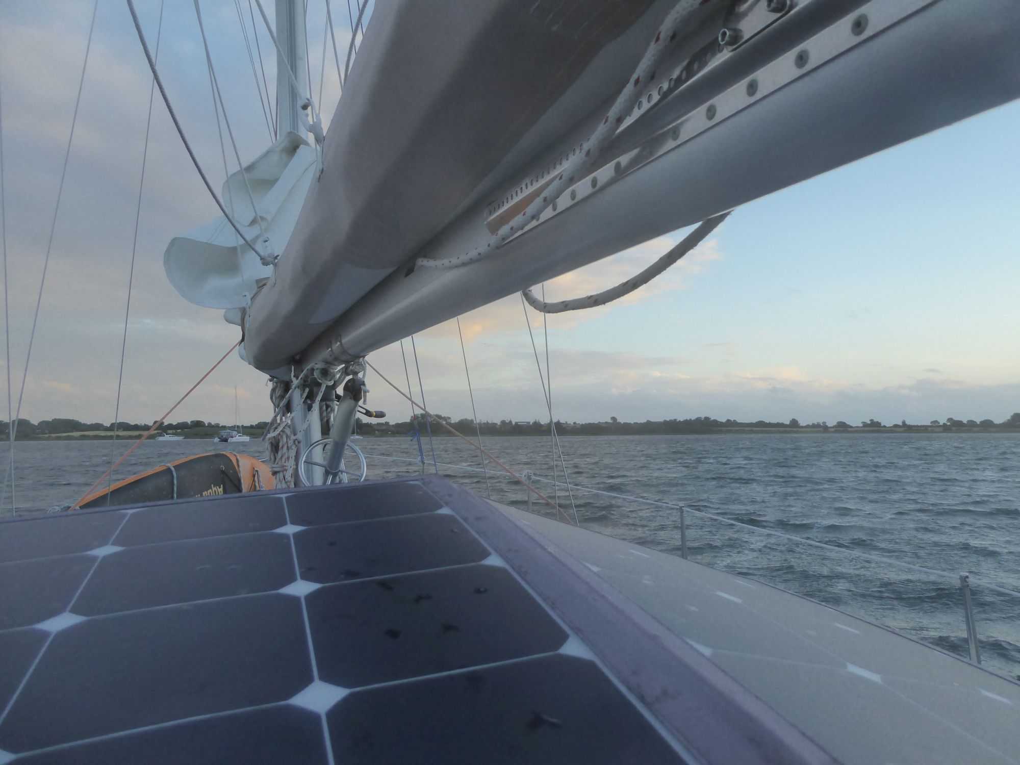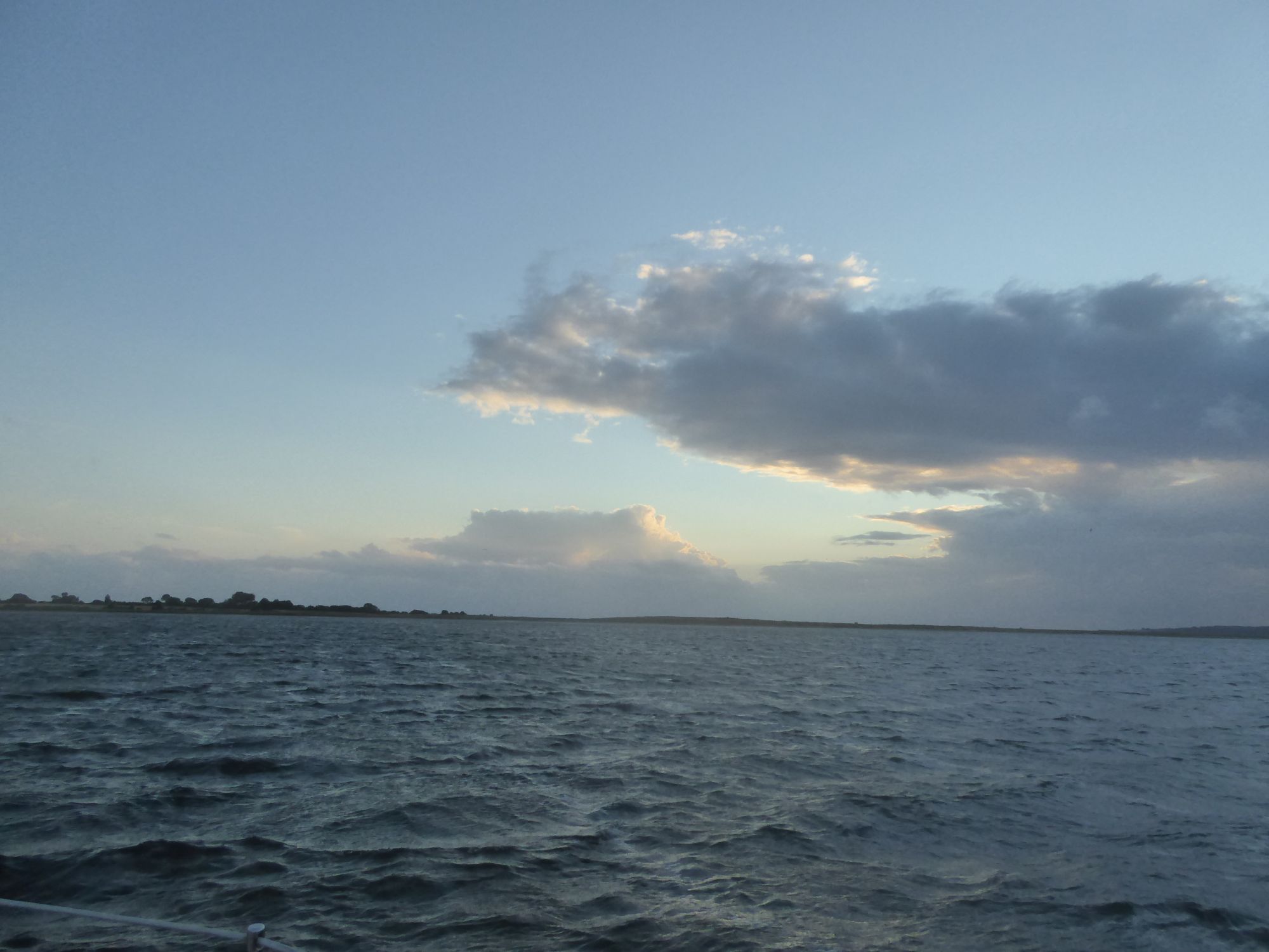 Am Abend lässt der Wind irgendwann nach. Das erste Mal seit ein paar Tagen, dass ich keine weißen Schaumkronen neben dem Boot habe.