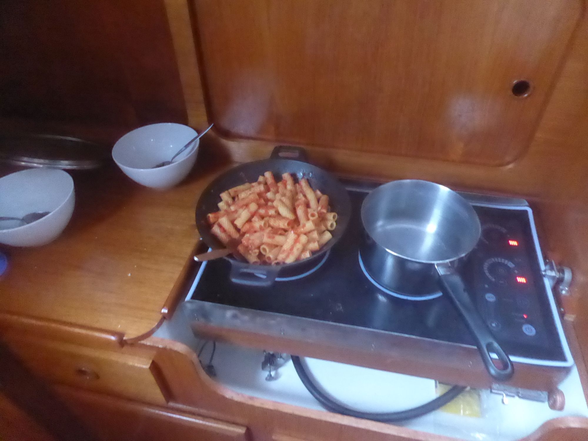 Endlich wieder Sonne! Liege lange im Bett und lese in der Koje. Dann kümmer ich mich um den Abwasch der letzten Tage.