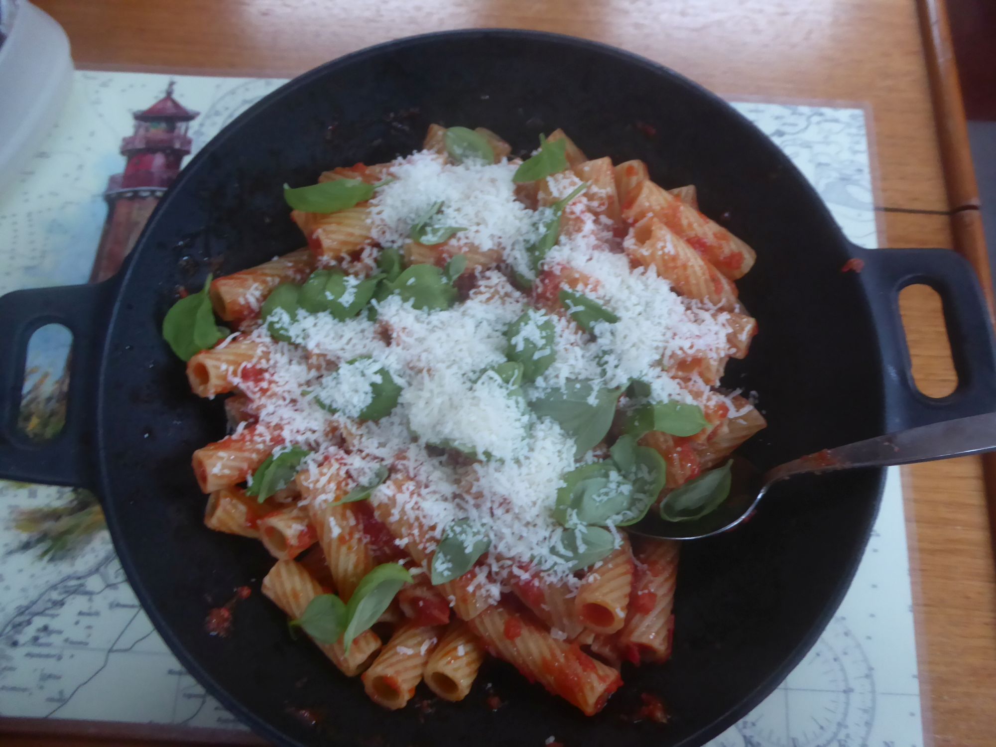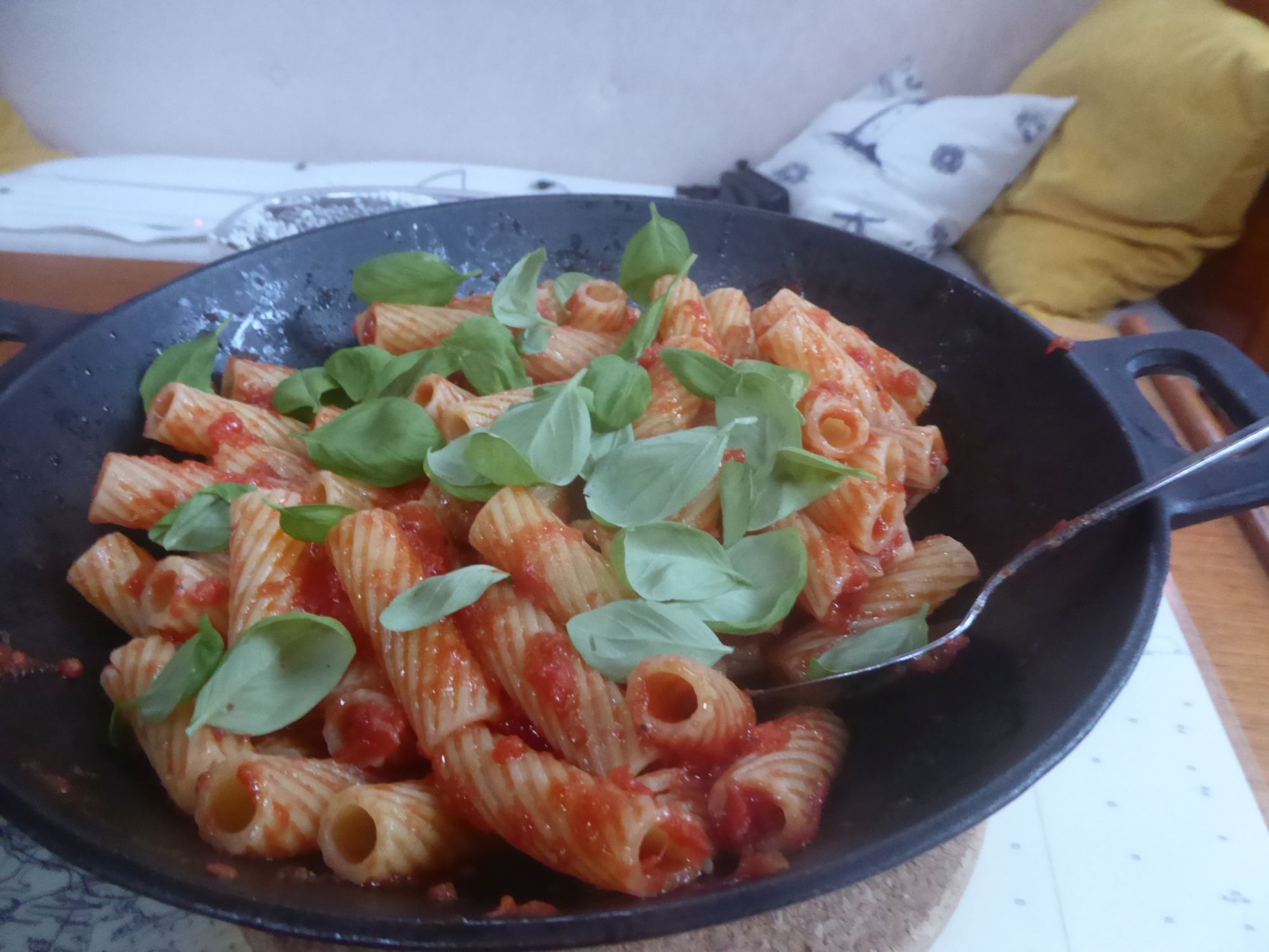 Abends gibt es Pizza aus der Bratpfanne. Das funktioniert überraschend gut.