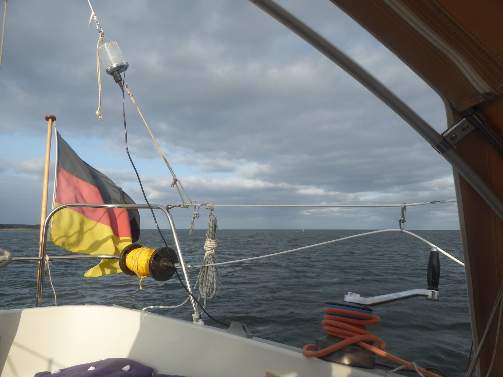 Zwischen sechs und sieben am Abend kommt der Nordwestwind urplötzlich und kalt wieder zurück. Ich lese erst noch im Cockpit ein paar Seiten in eine Wolldecke gewickelt, dann im Salon und schließlich in der warmen Koje bis tief in die Nacht.
