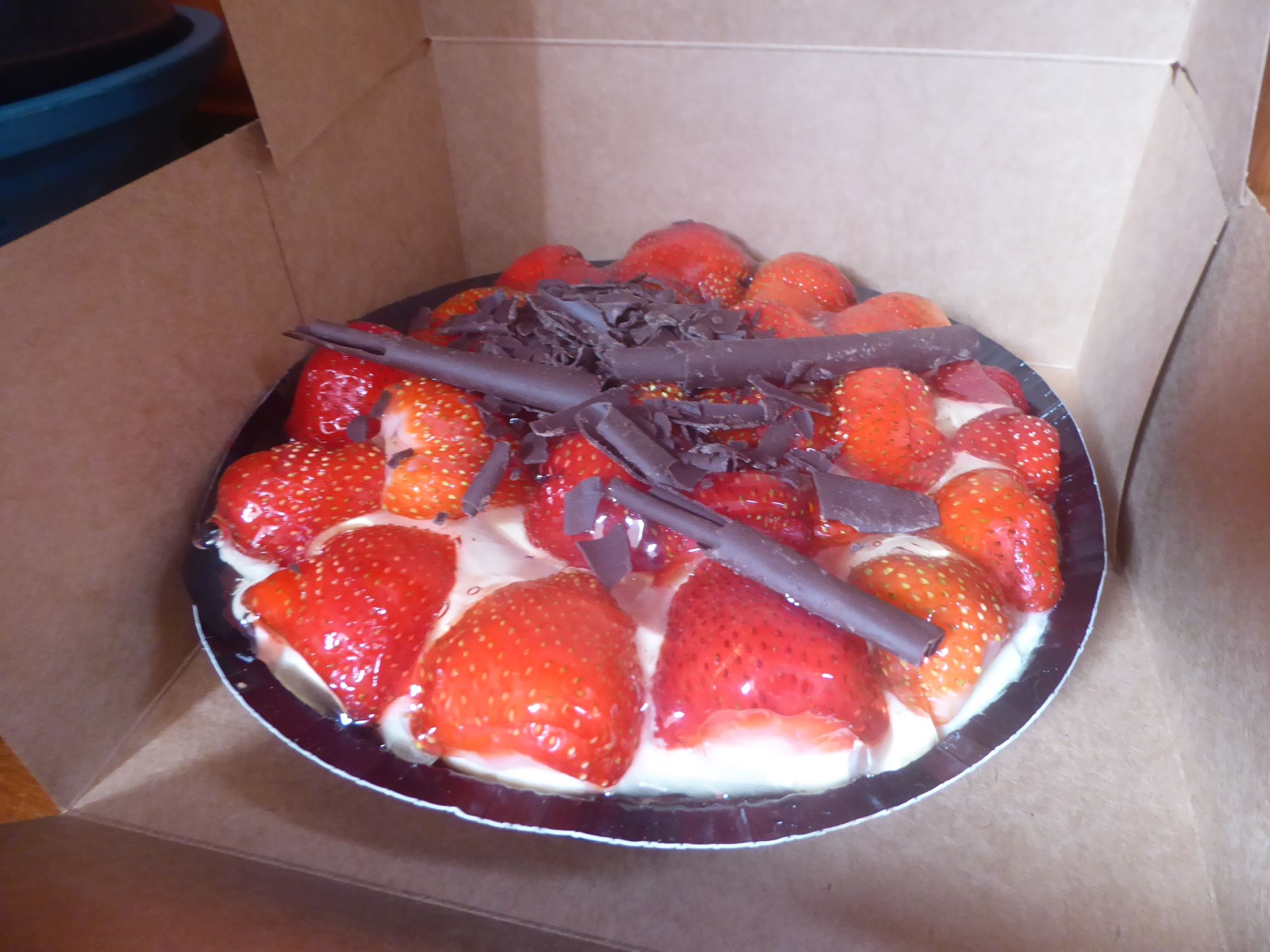 Hafentag in Sæby. Sonne. Mittags gehe ich duschen, dann mache ich mich auf den Marsch zum Brugsen. Der ist eineinhalb Kilometer vom Hafen entfernt, was spätestens auf dem Rückweg, schwer beladen in der brennenden Sonne ganz schön schweißtreibend ist. Doch der Weg hat sich gelohnt. Meine Obstvorräte sind wieder aufgestockt, die Kühltruhe ist wieder ordentlich gefüllt, und beim Bäcker habe ich eine besonders schicke Erdbeertorte erstanden.