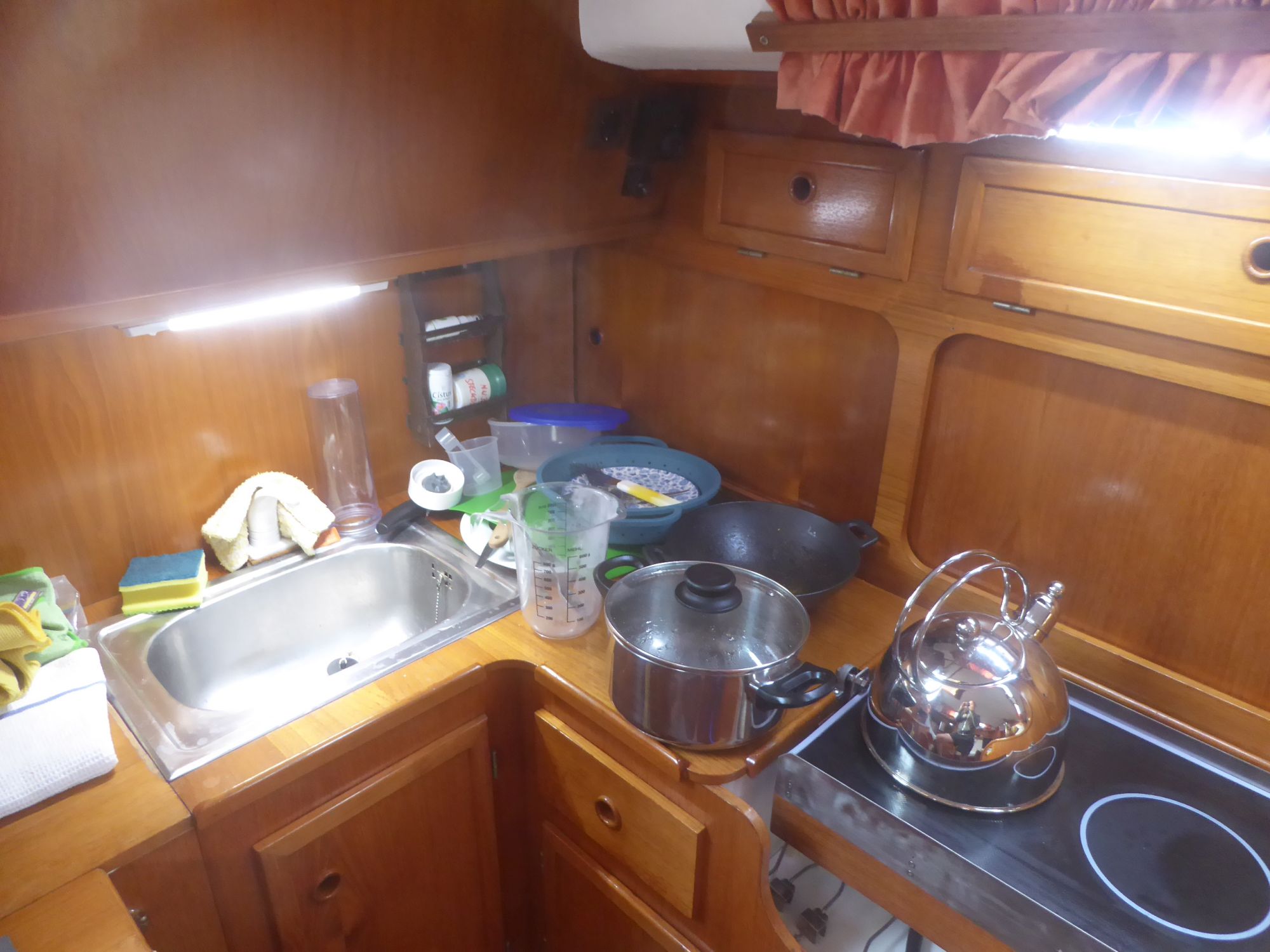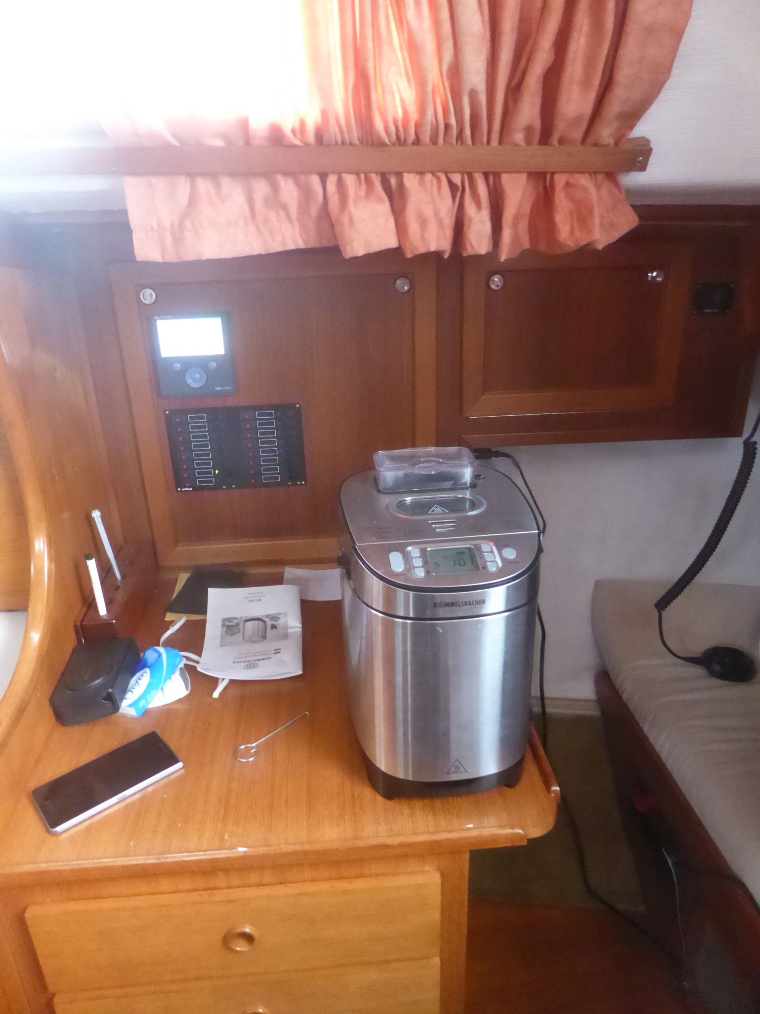 Die wird auch gleich nachdem alles verstaut ist angebrochen. Anschließend laufe ich zum Hafenbüro. Als ich vom Einkaufen zurückkam war mein Liegeplatz auf rot. Wenn ich heute noch weg muss wird das eine Nachtfahrt. Doch auf dem Plan im Hafenbüro steht der Platz auf grün, "da hat wohl der Wind das Schild umgestellt" heißt es und ich kann die Nacht bleiben. Ich backe Brot für die nächsten Tage, fülle meine Wasservorräte auf und genieße das schöne Wetter.