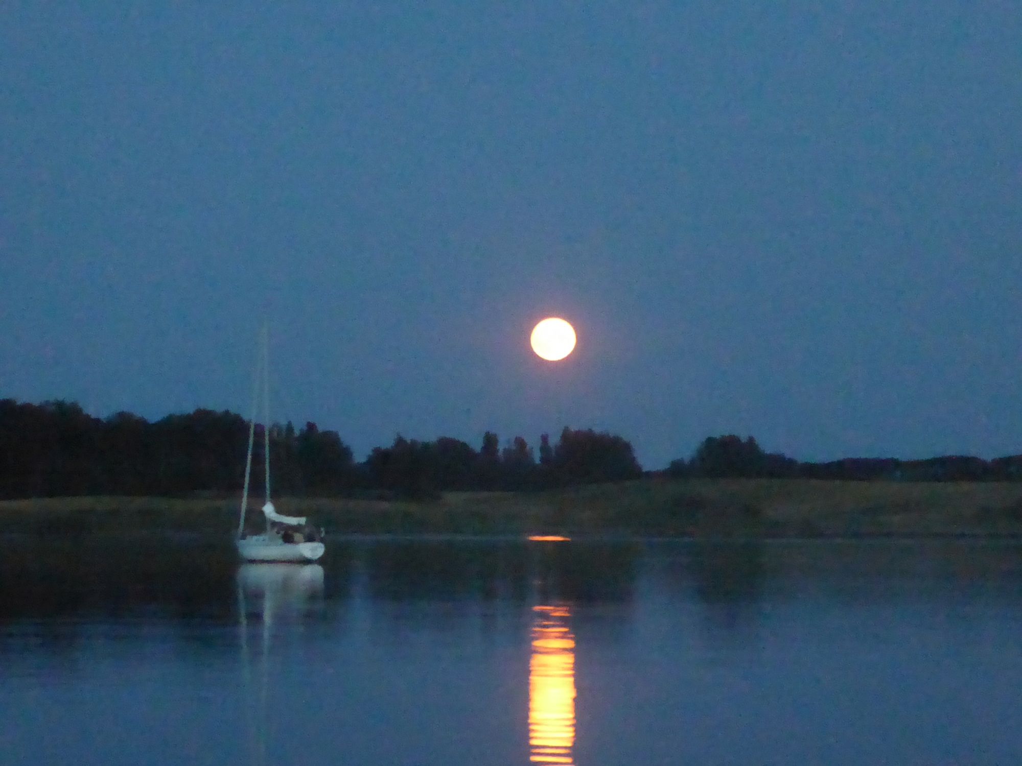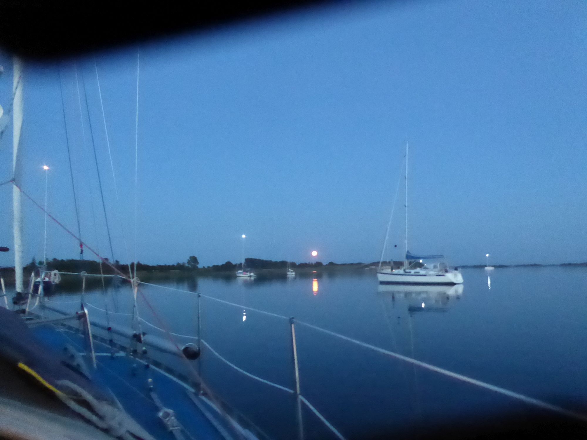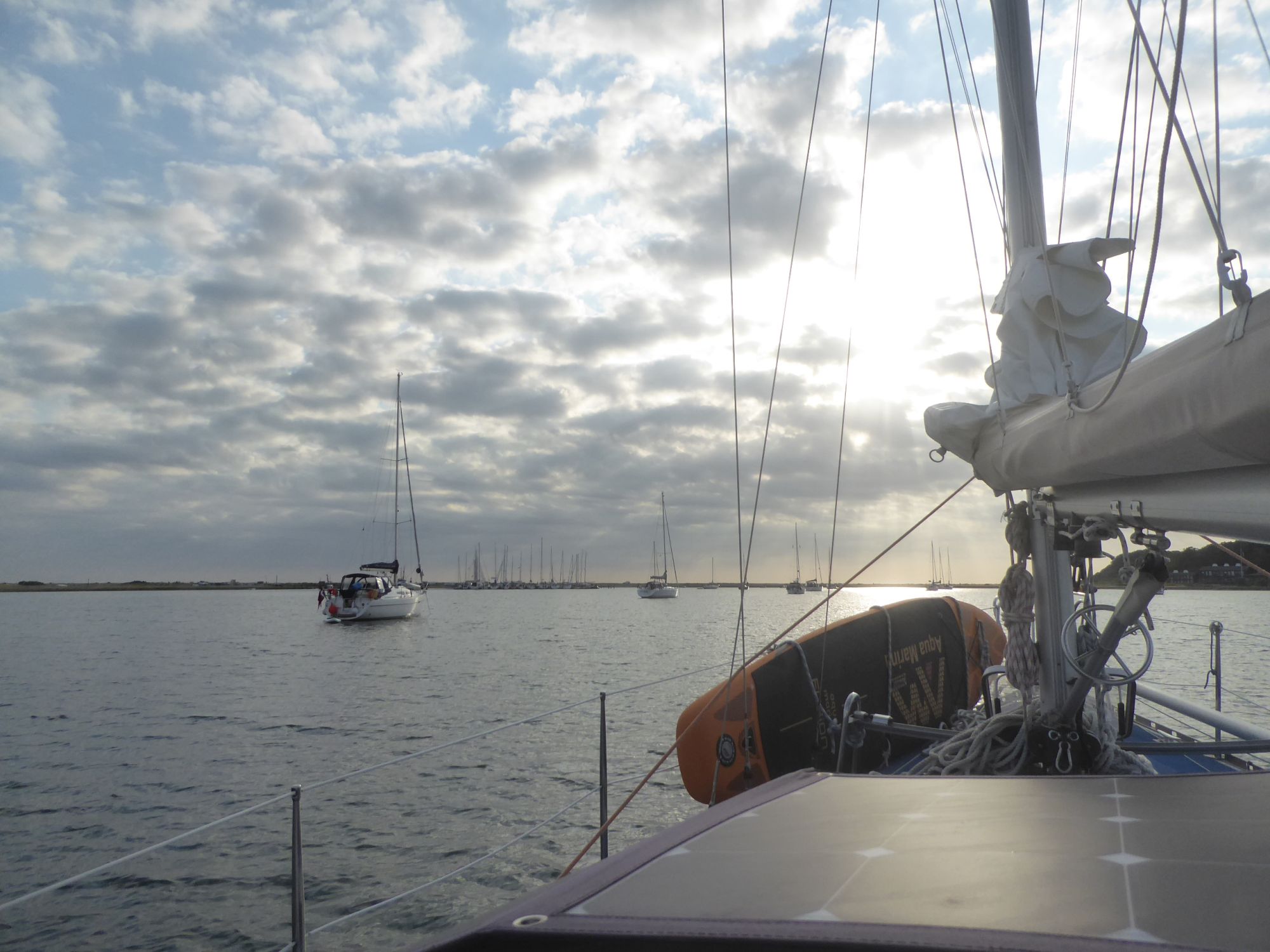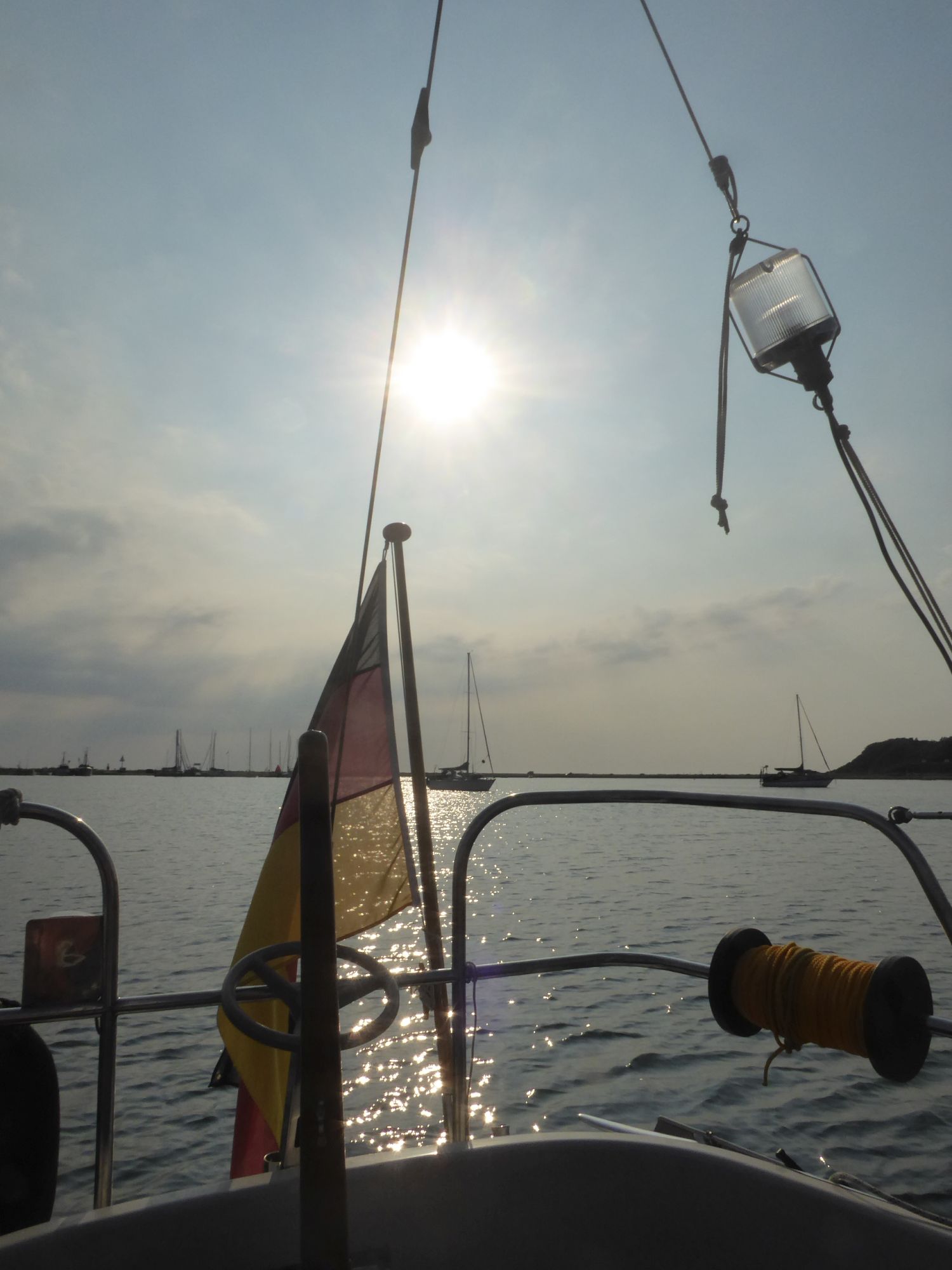 Der Tag beginnt wieder bewölkt mit Nachmittagssonne. Leichter Hauch aus Nord, der zum Abend hin auf Ost dreht. Am Ende des Tages liegen hier 30 Boote vor Anker!