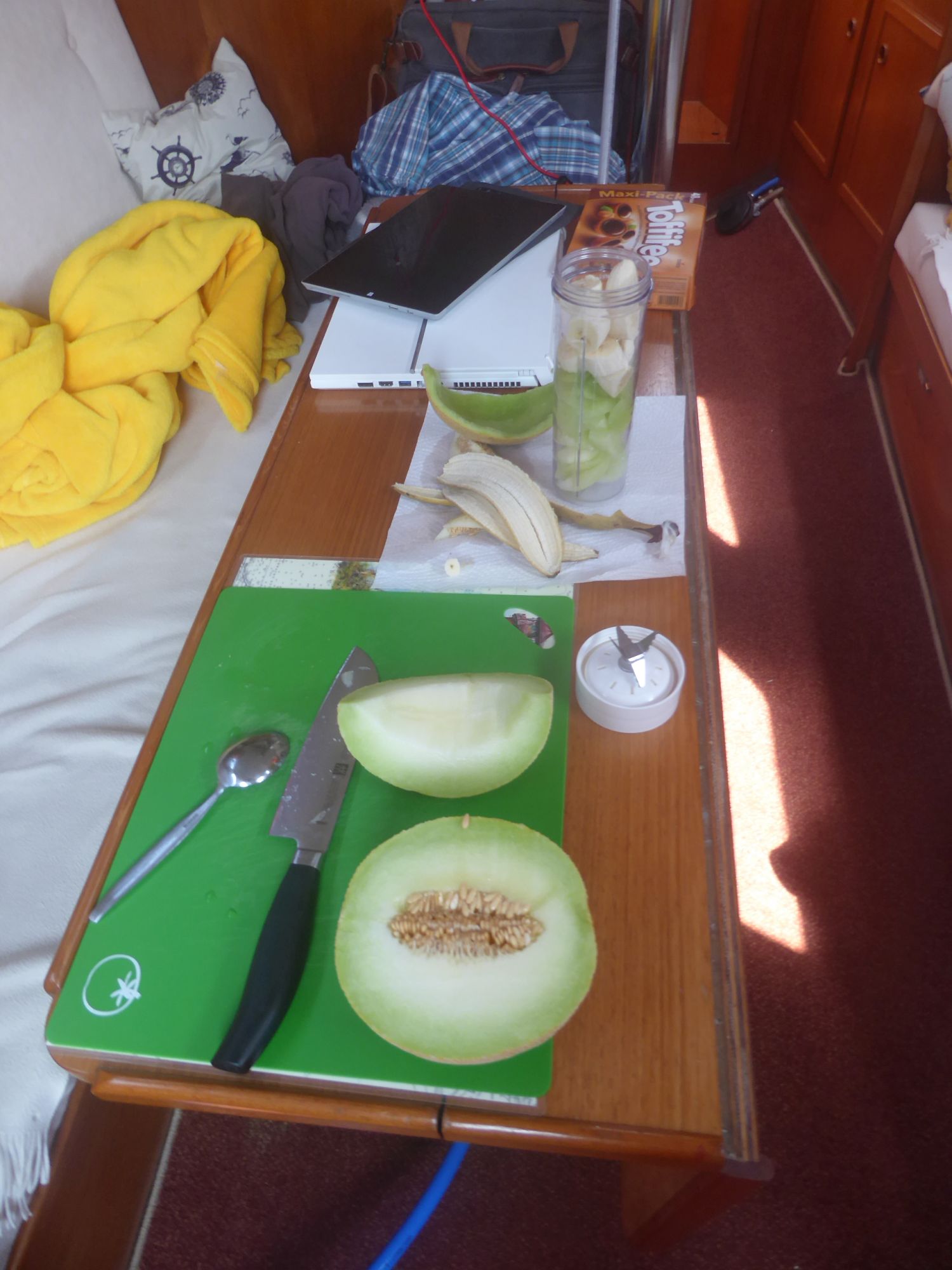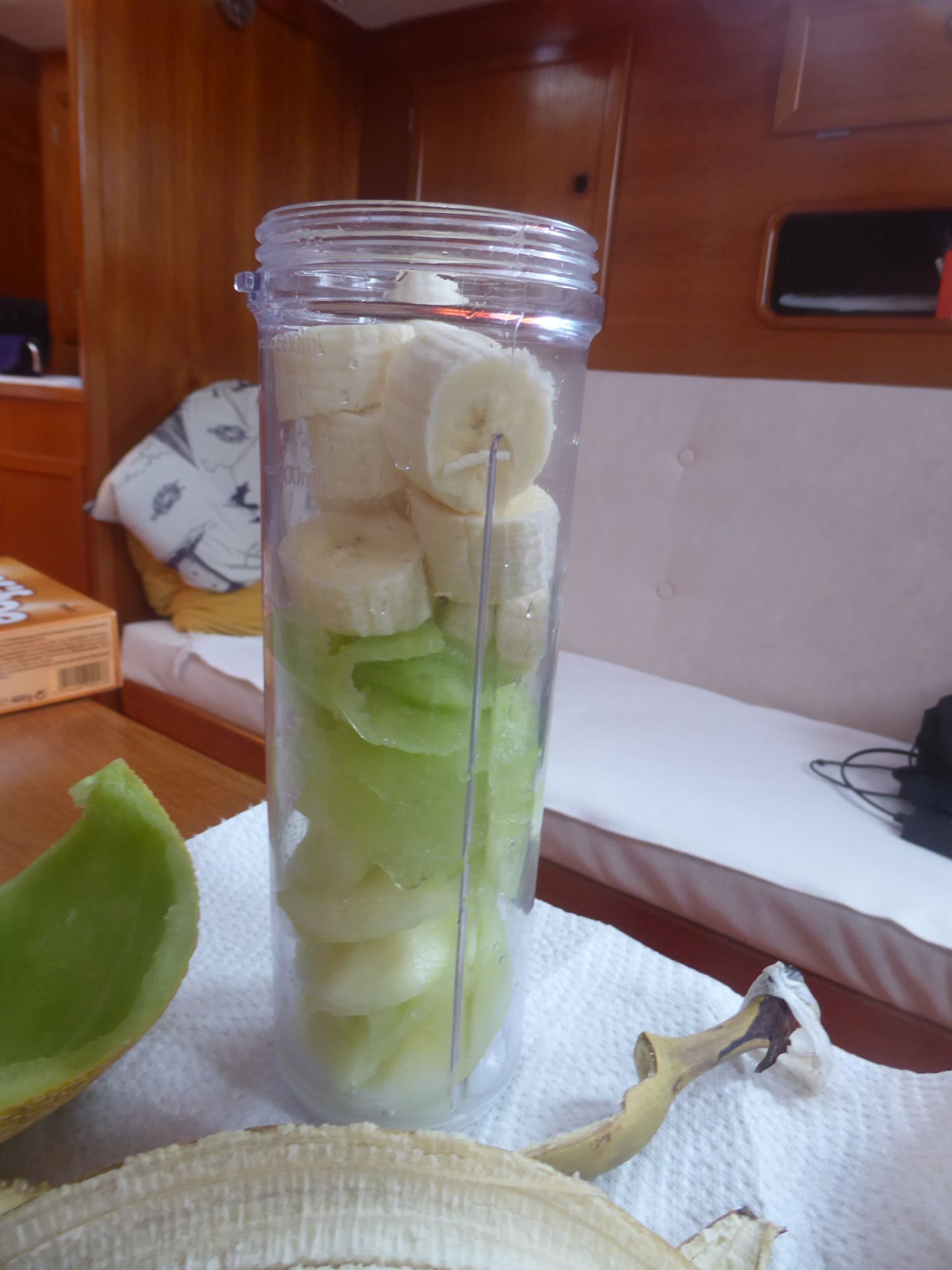 Melone-Bananen-Smoothie ist besonders erfrischend. Die Melone ist so groß, dass eine Hälfte für zwei Smoothies reicht.