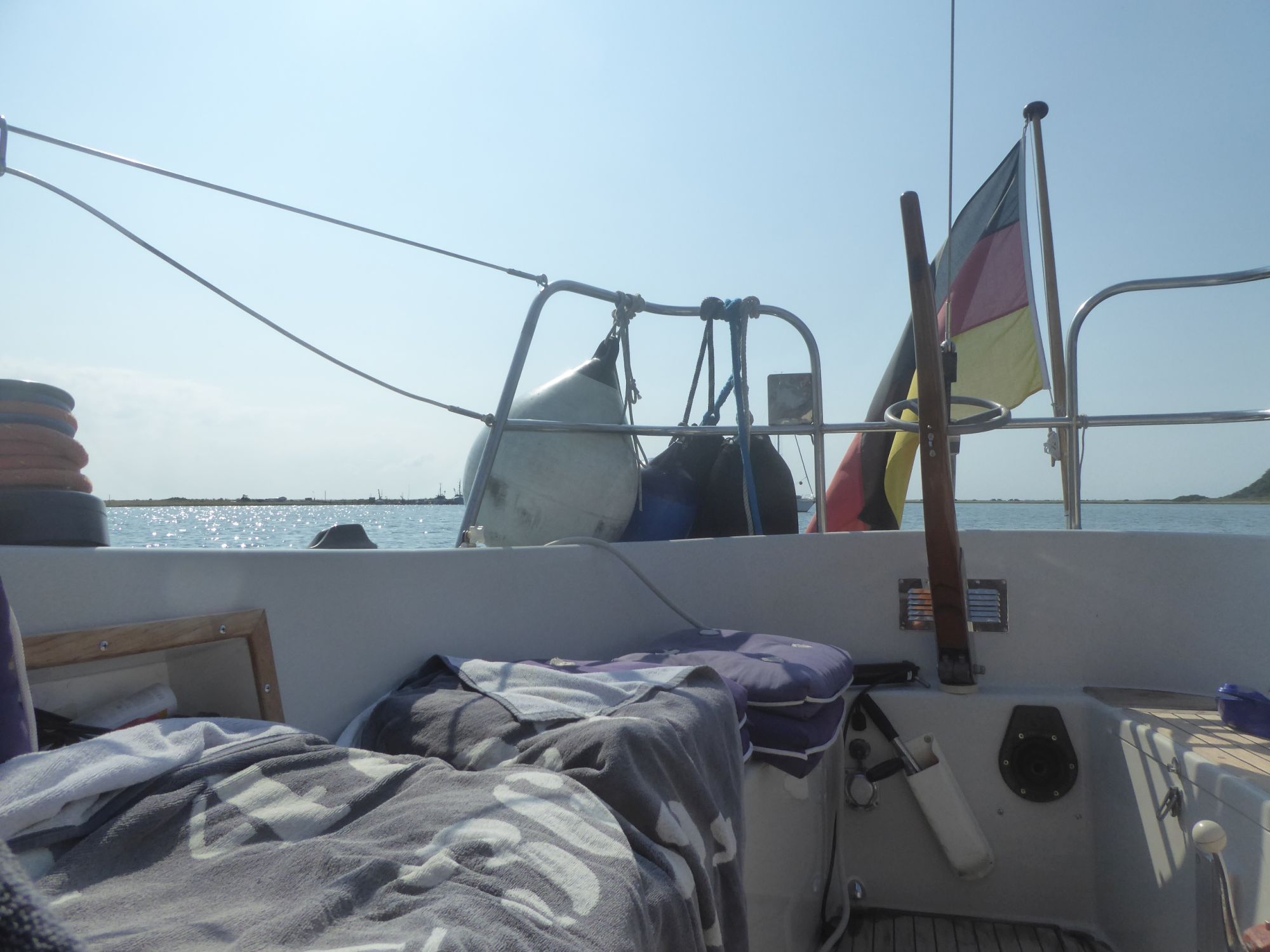 Am frühen Nachmittag reißt es auf. Mit dem günstigen Wind kann ich bis in die Ankerbucht segeln und starte den Motor erst um den Anker einzufahren.