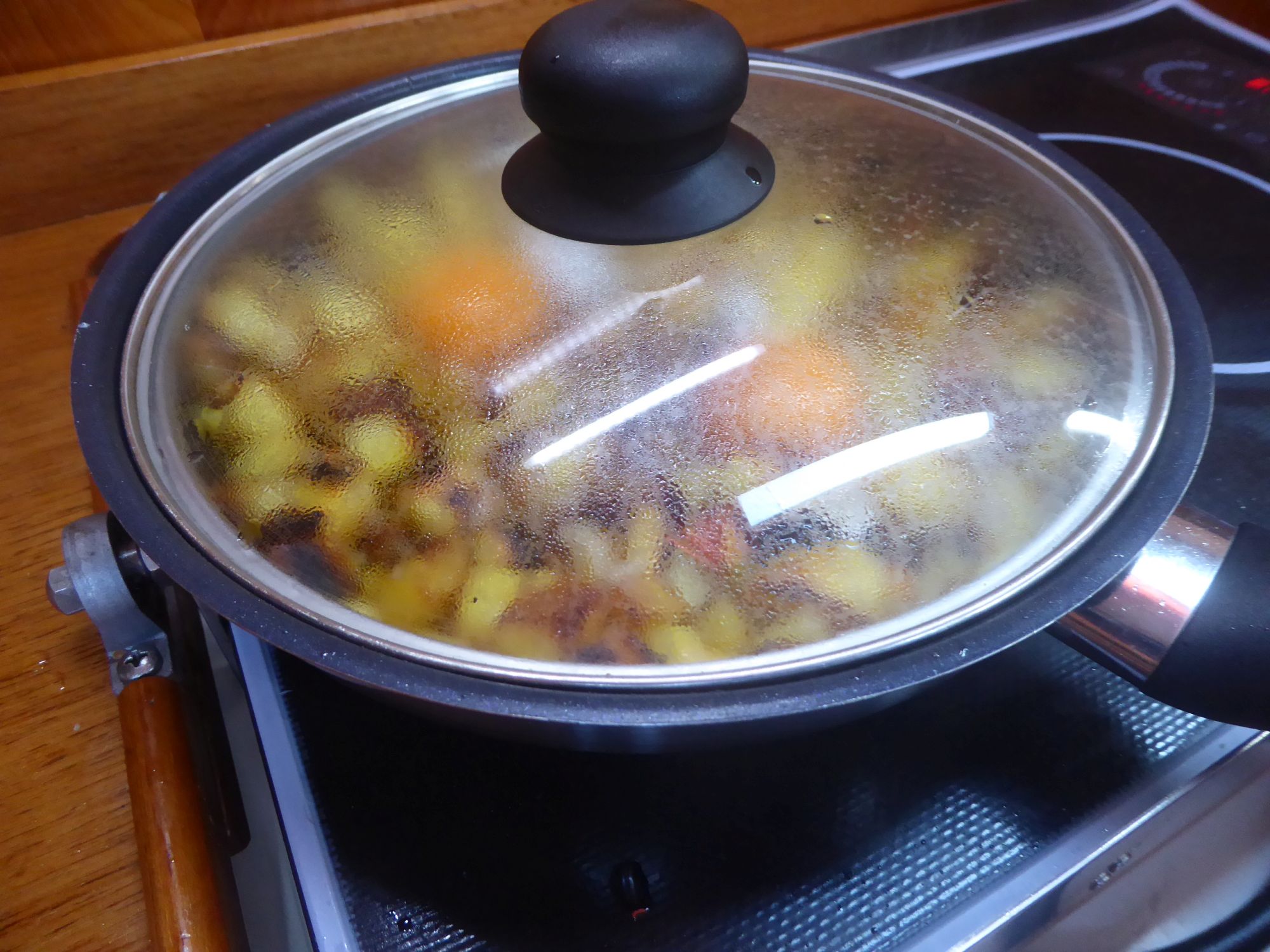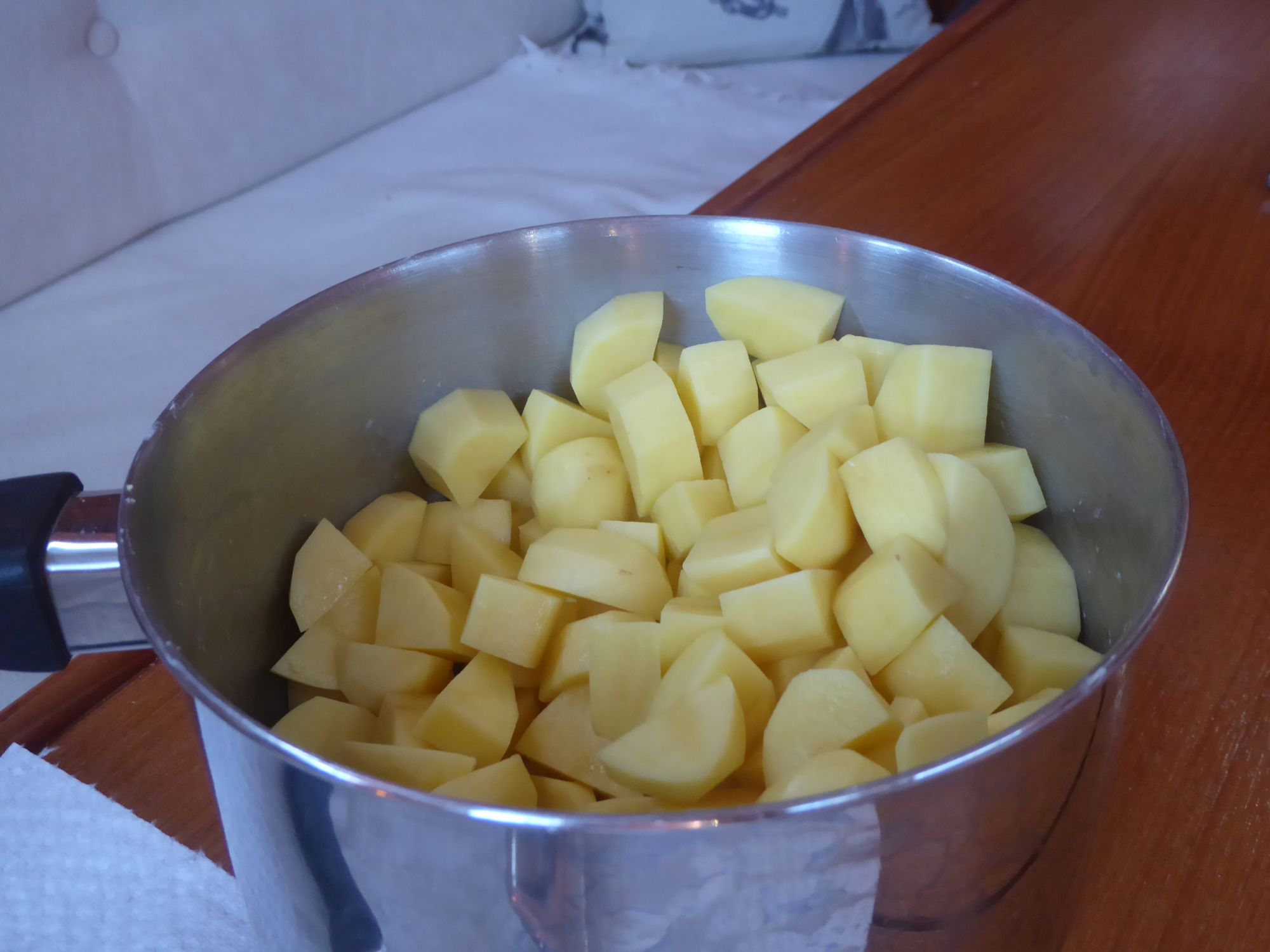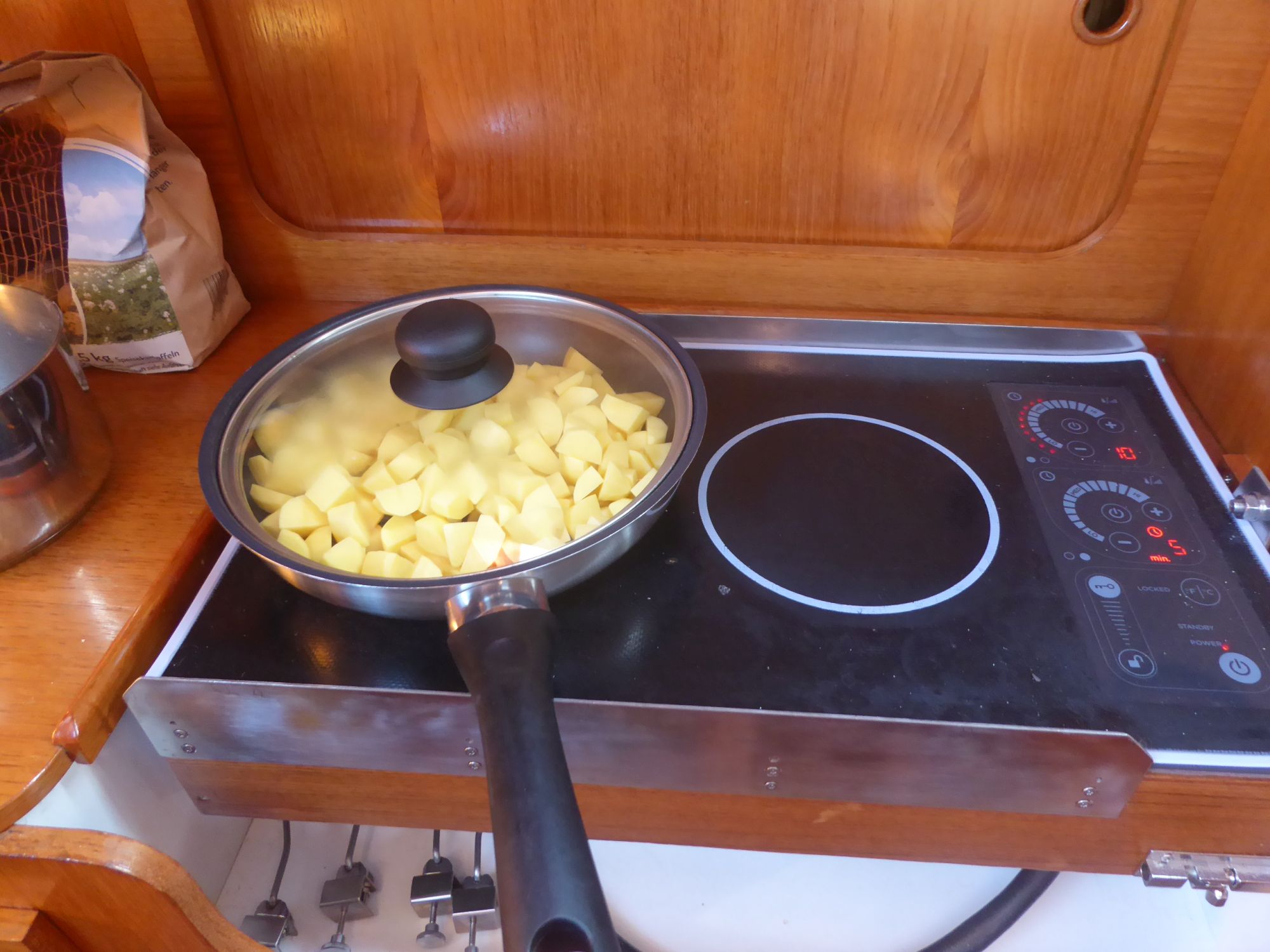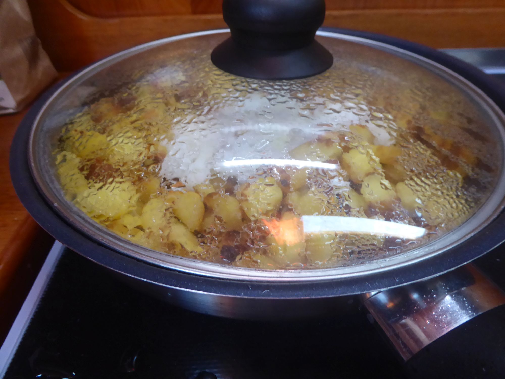 Abends gibt es Bratkartoffeln aus Fehmarnkartofeln, dazu Spiegeleier.