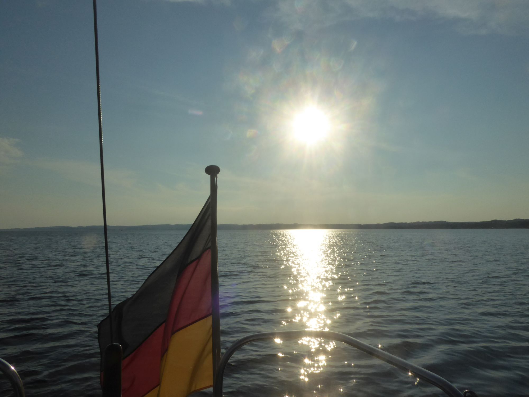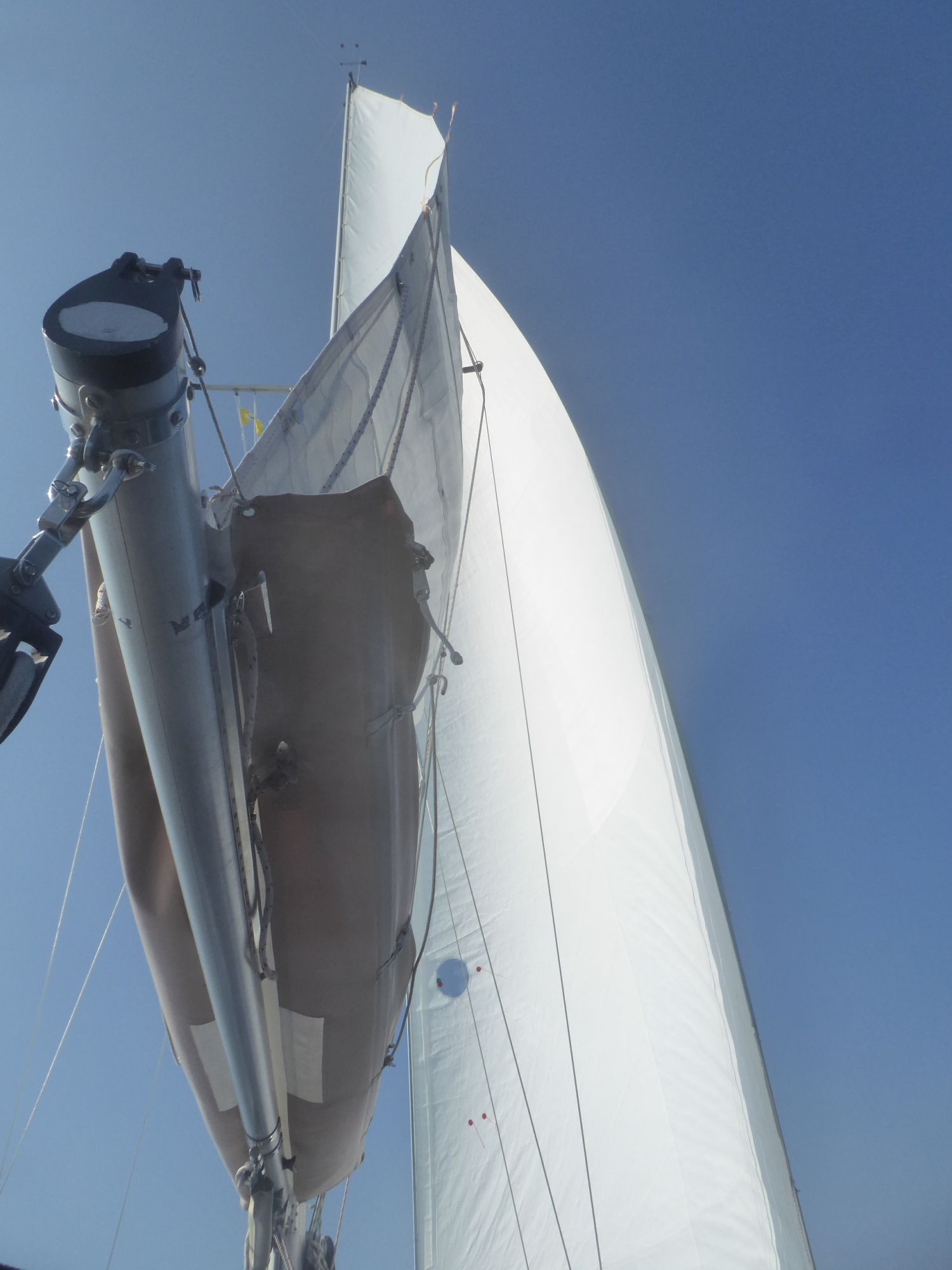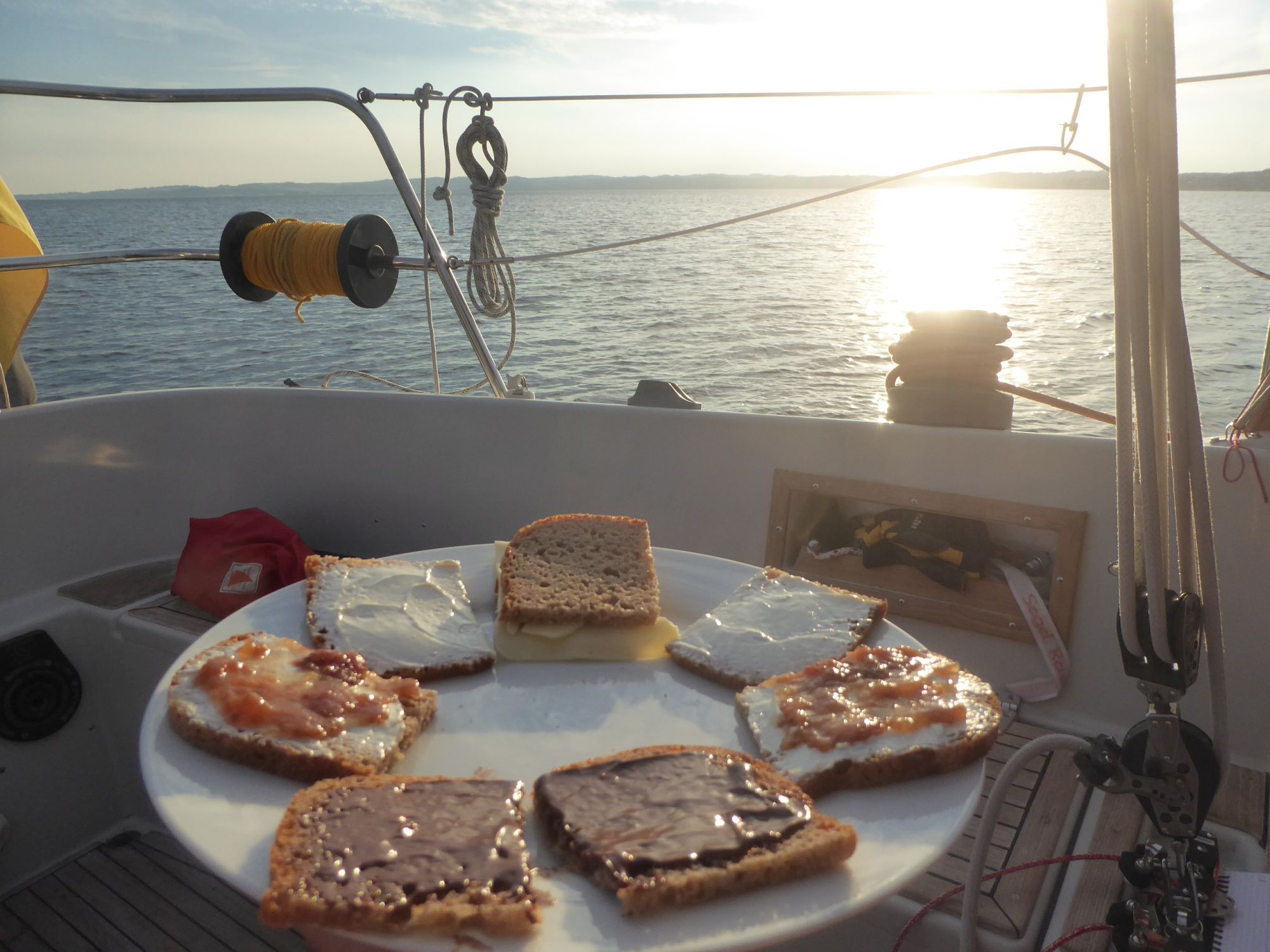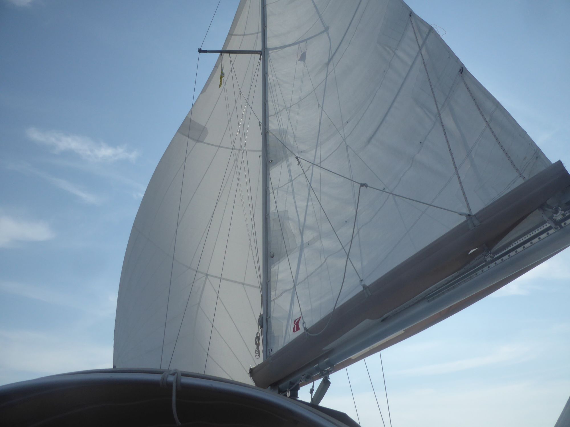 Ab halb fünf wird Schmetterling gesegelt. Der Wind lässt leider immer weiter nach. Nur die Wellen bleiben übrig und so muss ich häufig in das schlagende Groß greifen. Erst in der Ebeltoftbucht läuft es am Wind wieder richtig gut.