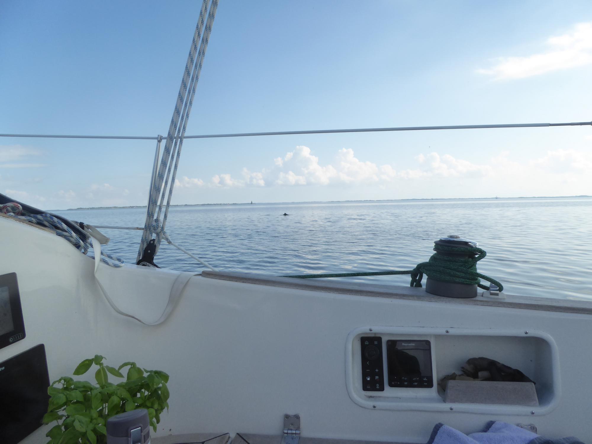 Fünf, sechs Schweinswale ziehen stundenlang ums Boot. Ich