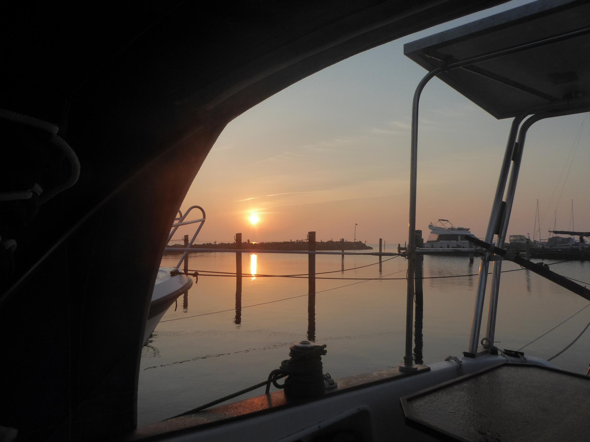 Um drei Uhr fülle ich den Wassertank und mache mich abfahrbereit. Ich hatte mir zwar extra eine Box mit Sorgeleine gesucht, diese ist aber heute auf der Leeseite. Der Wind kommt von schräg vorne von Backbord. Also hangel ich mich mit einer Leine am Bug, einer am Heck, und als ich die Heckpfähle erreiche einer dritten Leine mittschiffs an den Püttingen aus der Box, die doppelt so lang ist wie Jabberwock. Vorne einen Meter fieren, hinten dichtholen, dann das ganze wiederholen bis das Boot zwischen den Pfählen liegt. Das ist langsames Vorankommen, aber stellt sicher, dass stets beide Enden belegt und vor Vertreiben gesichert sind.