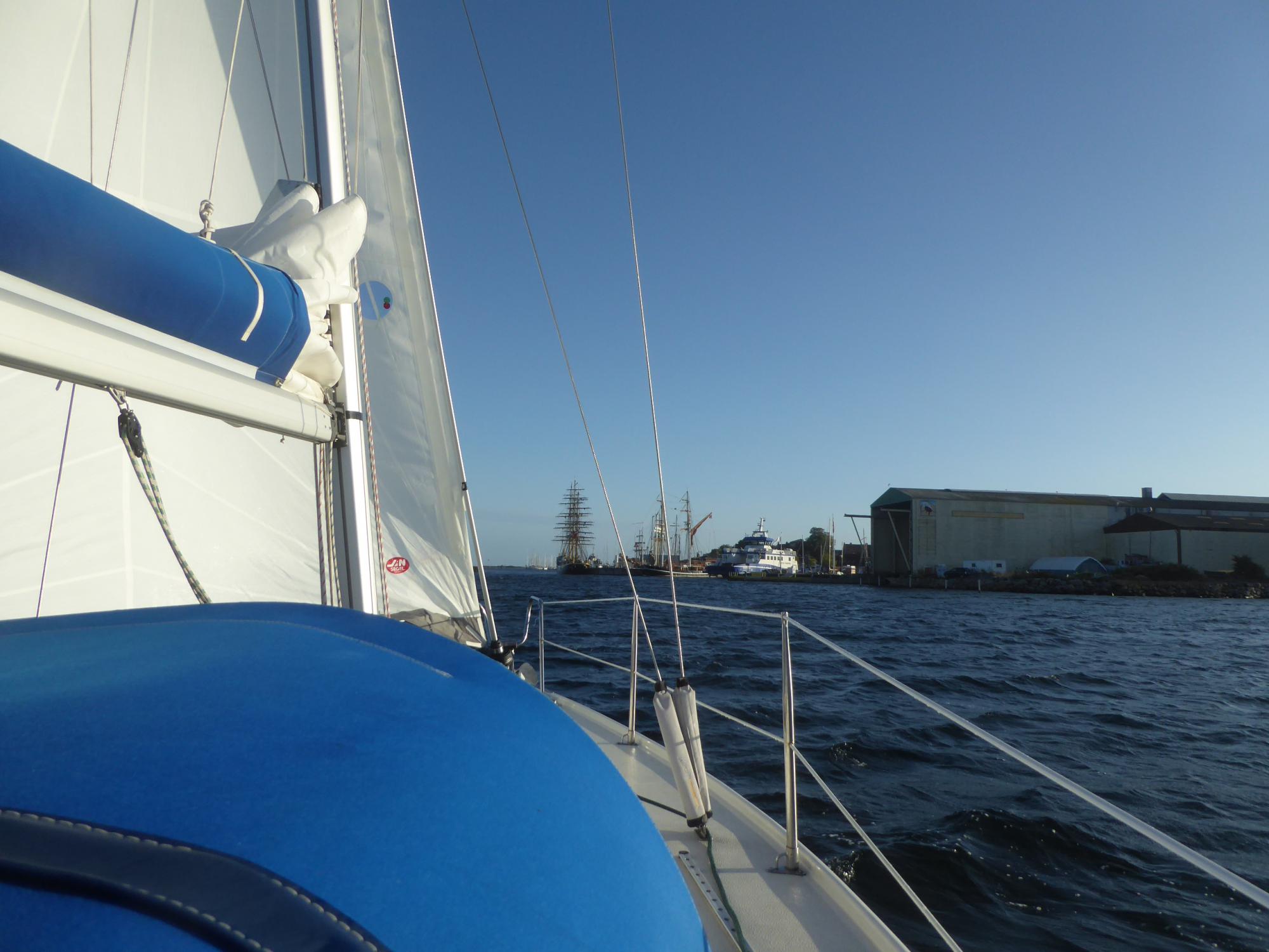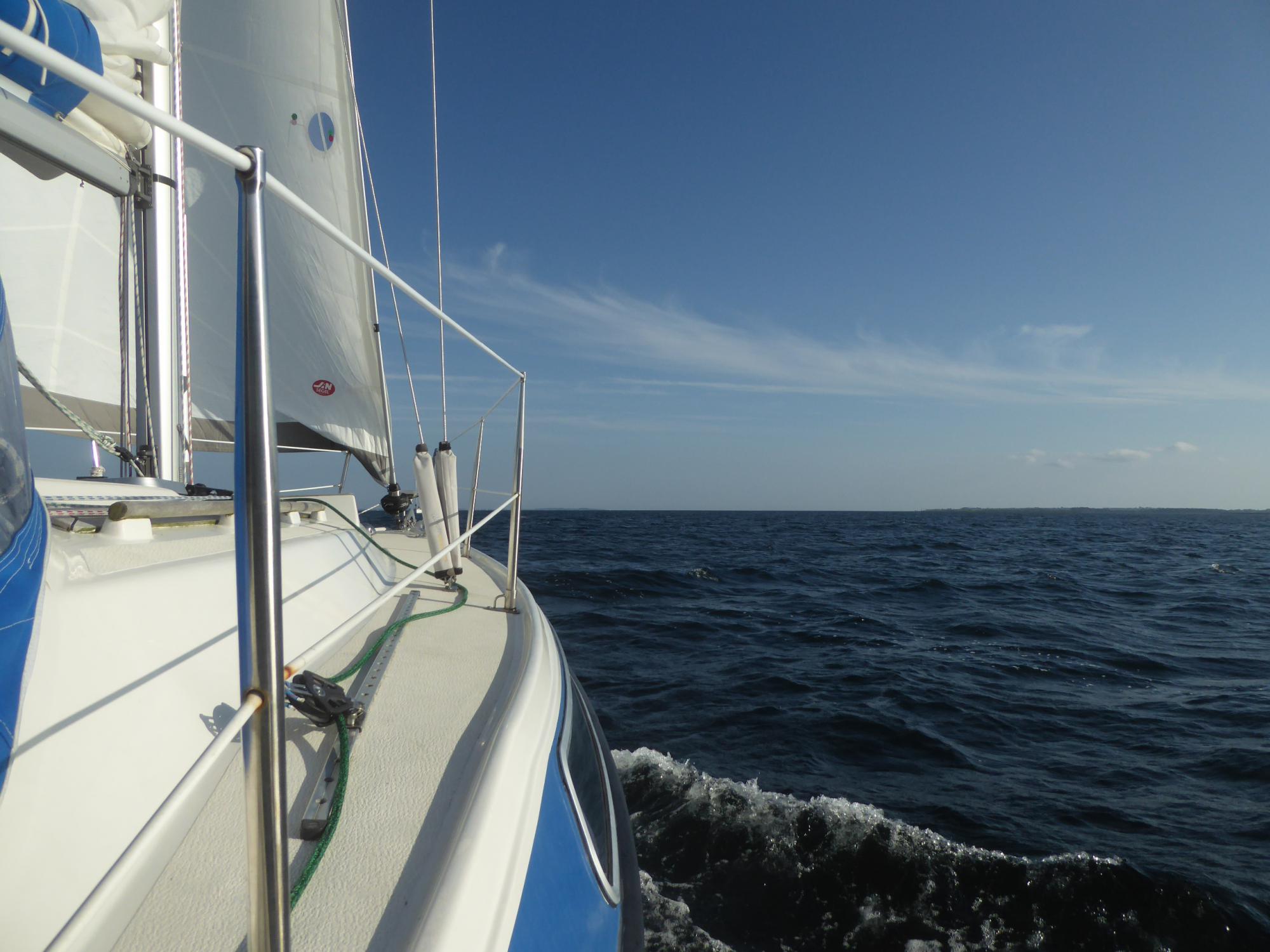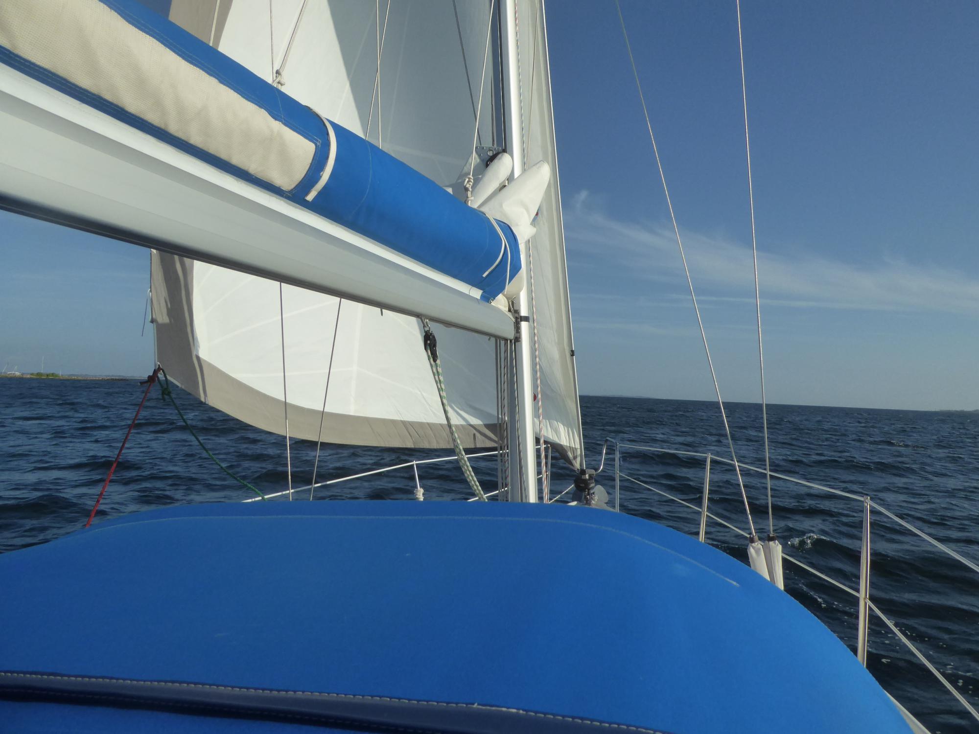 Es weht mit vier bis fünf Beaufort. Die Genua alleine bringt fünf bis sechs Knoten Fahrt. Das reicht. Durchs Mørkedyb geht es platt vorm Laken. Das erste Stück nach Marstal dann mit Windstärke sechs bis sieben hoch am Wind.