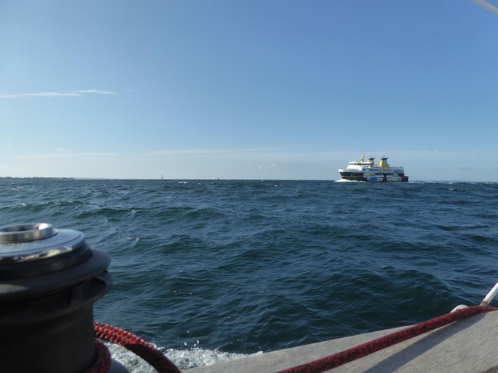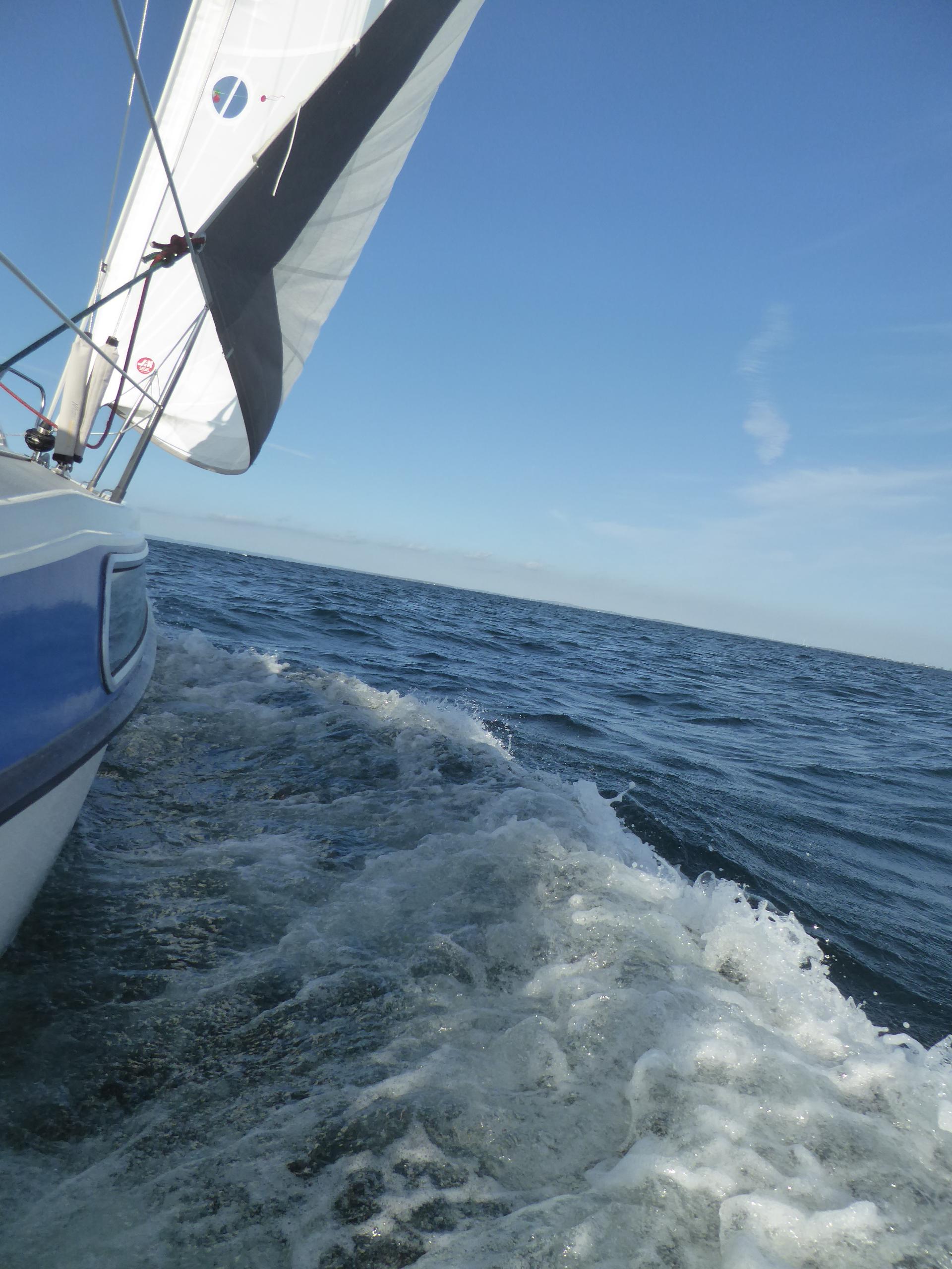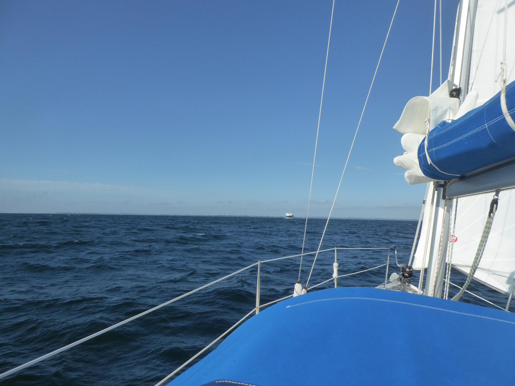 Es weht mit vier bis fünf Beaufort. Die Genua alleine bringt fünf bis sechs Knoten Fahrt. Das reicht. Durchs Mørkedyb geht es platt vorm Laken. Das erste Stück nach Marstal dann mit Windstärke sechs bis sieben hoch am Wind.