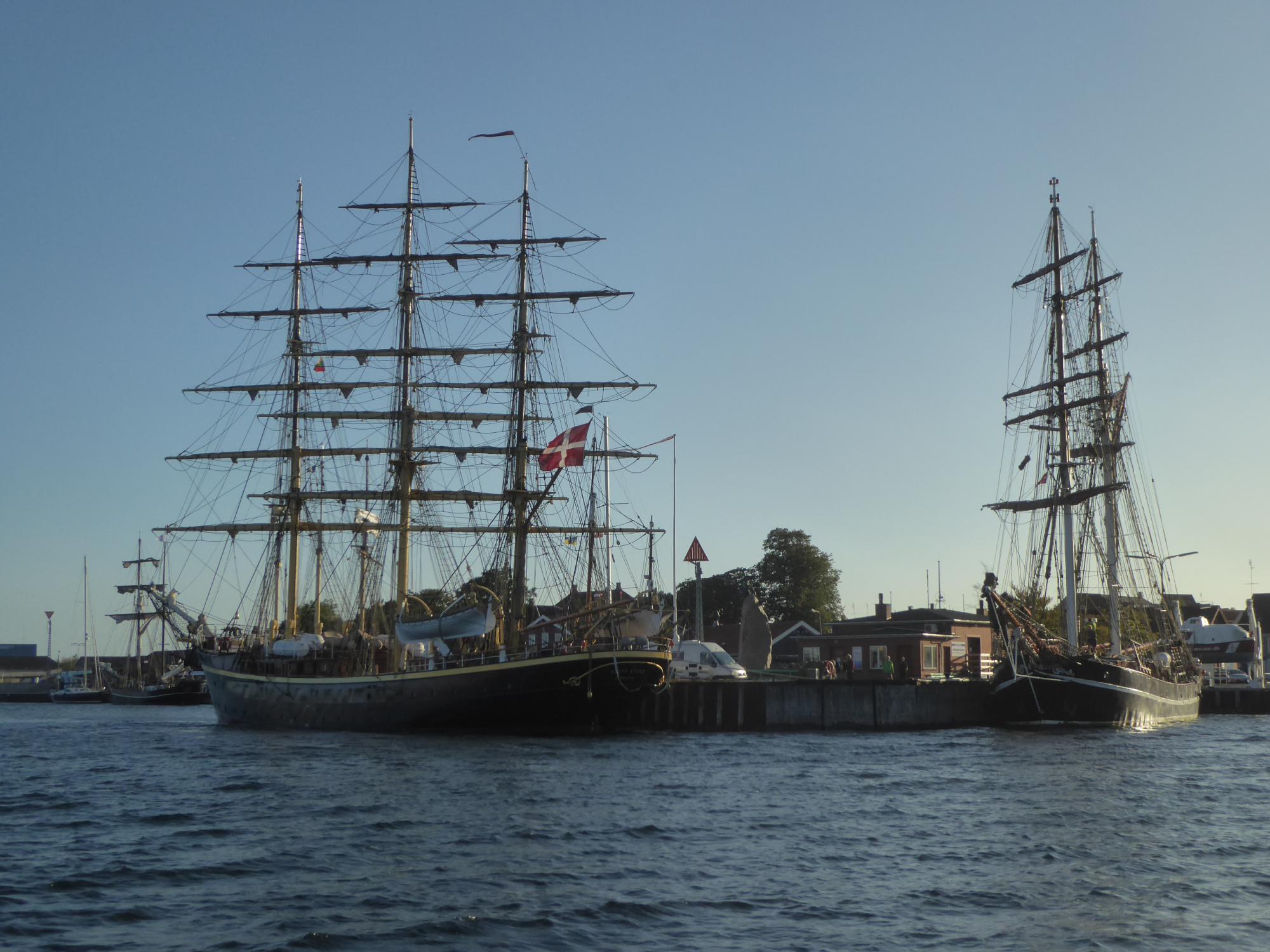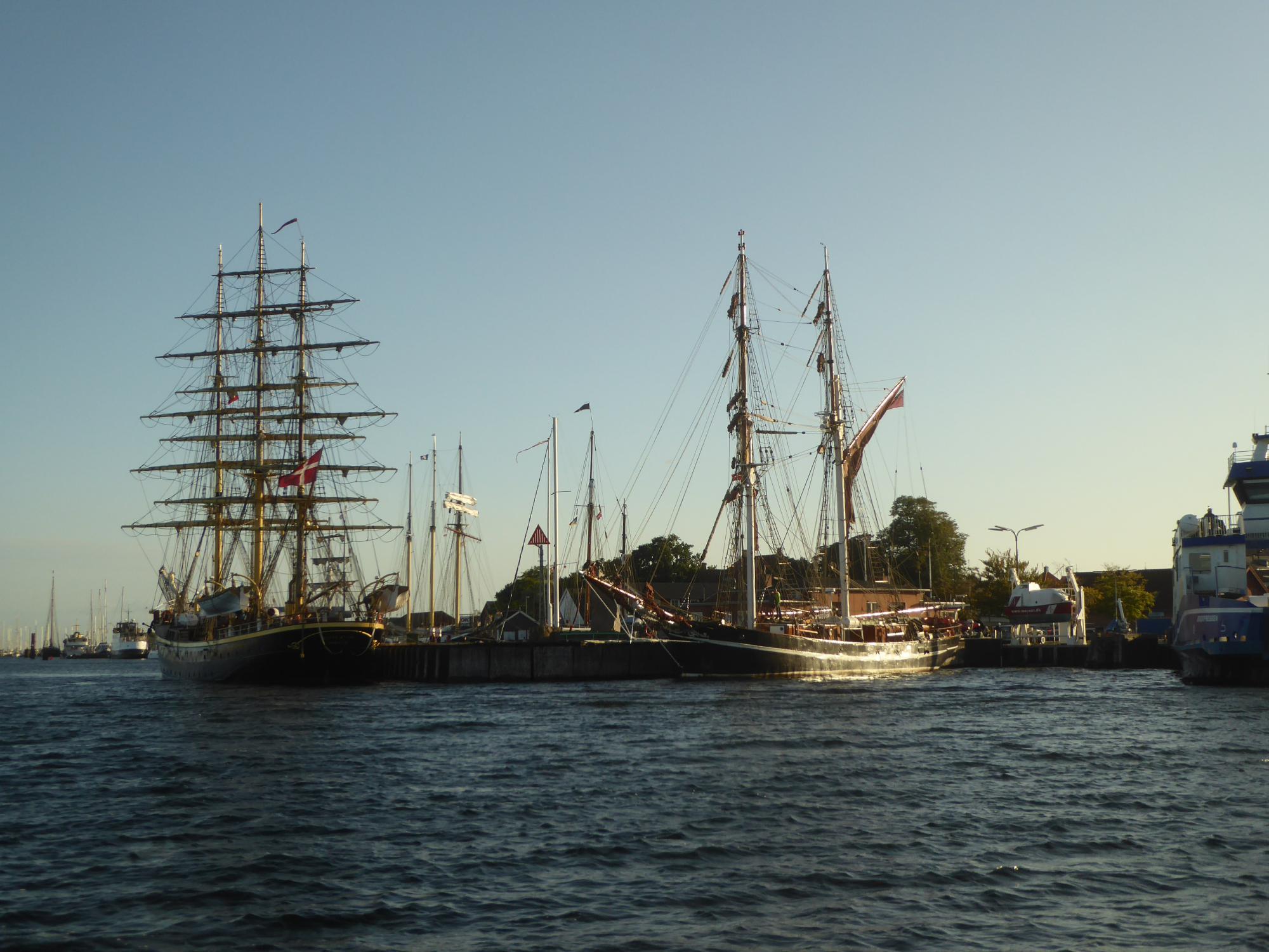 Im Hafen ist jeder Meter Mole von Großseglern belegt, selbst die Molen in und vor der Hafeneinfahrt sind belegt.