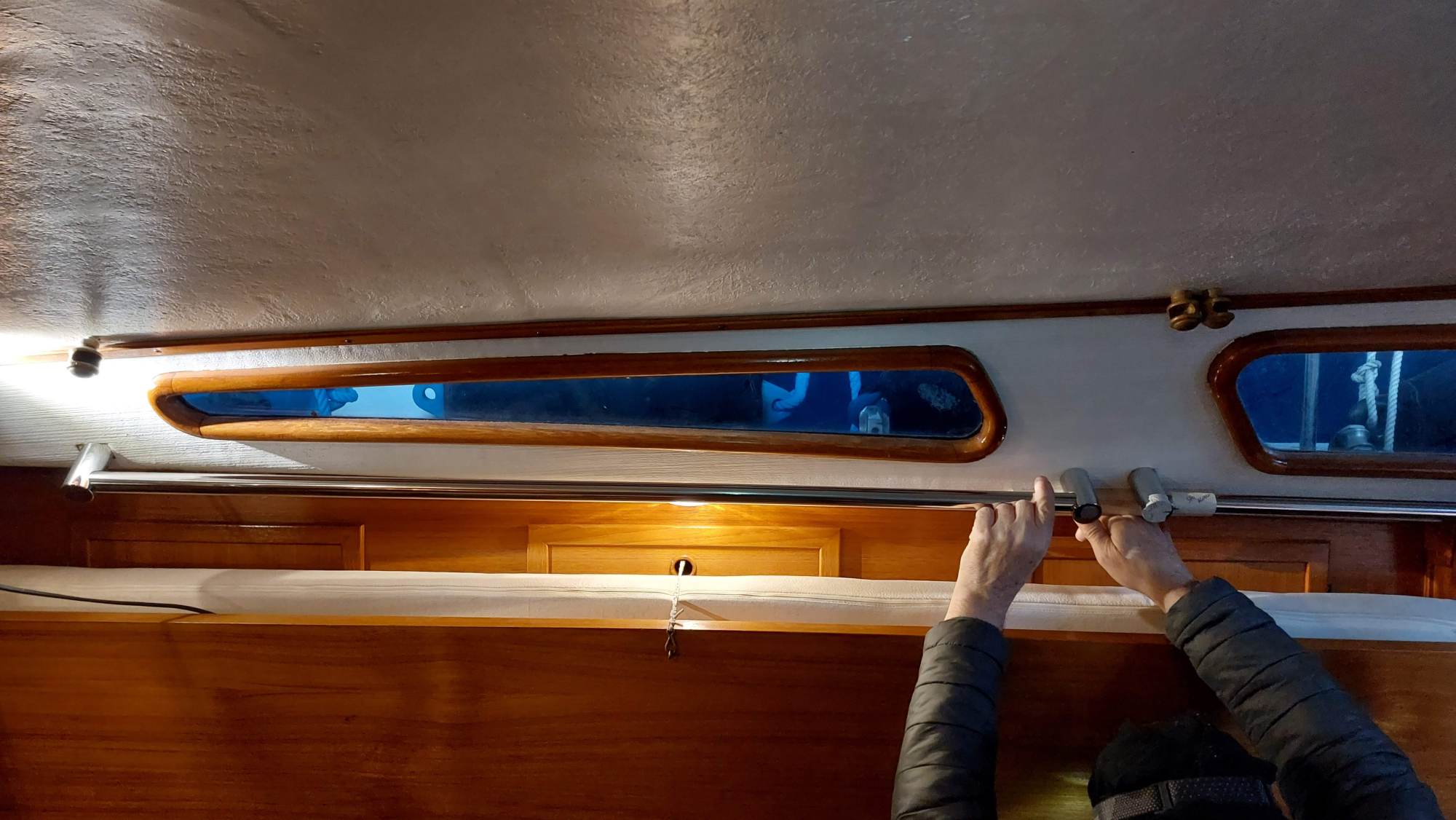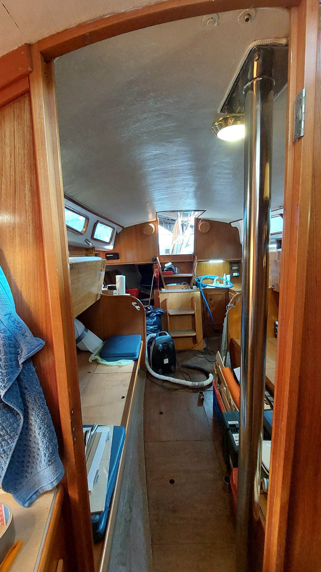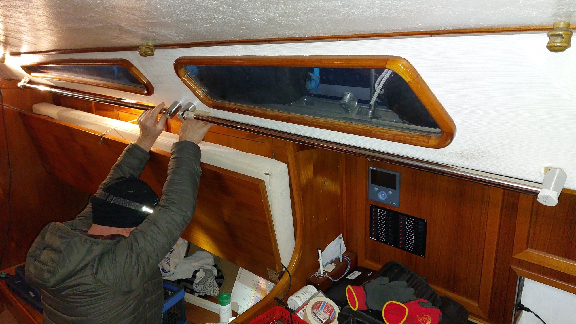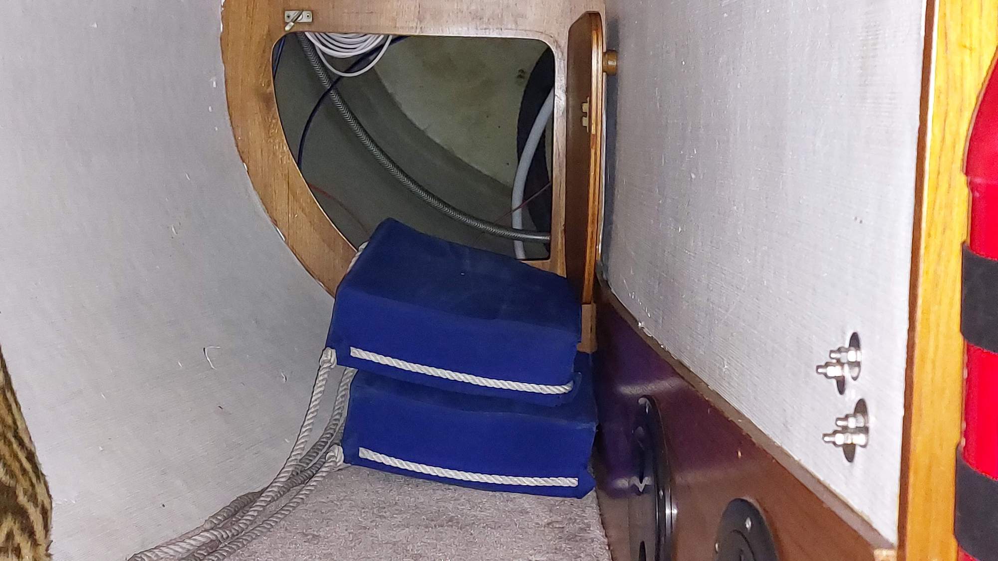 Für die Windsteuerung muss ich häufiger durch die Hundekoje an den Spiegel kriechen.