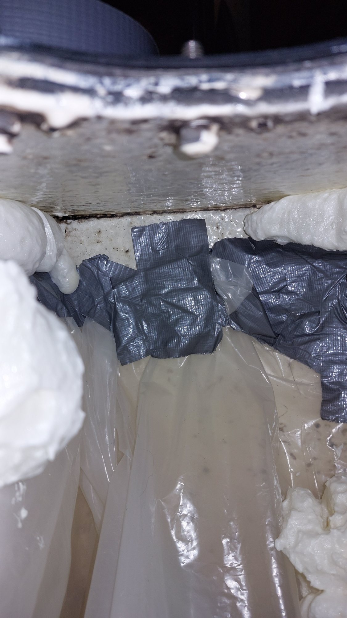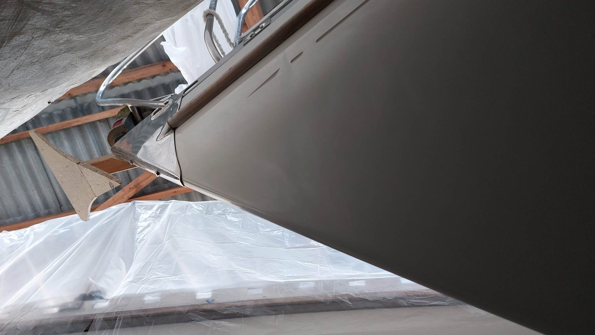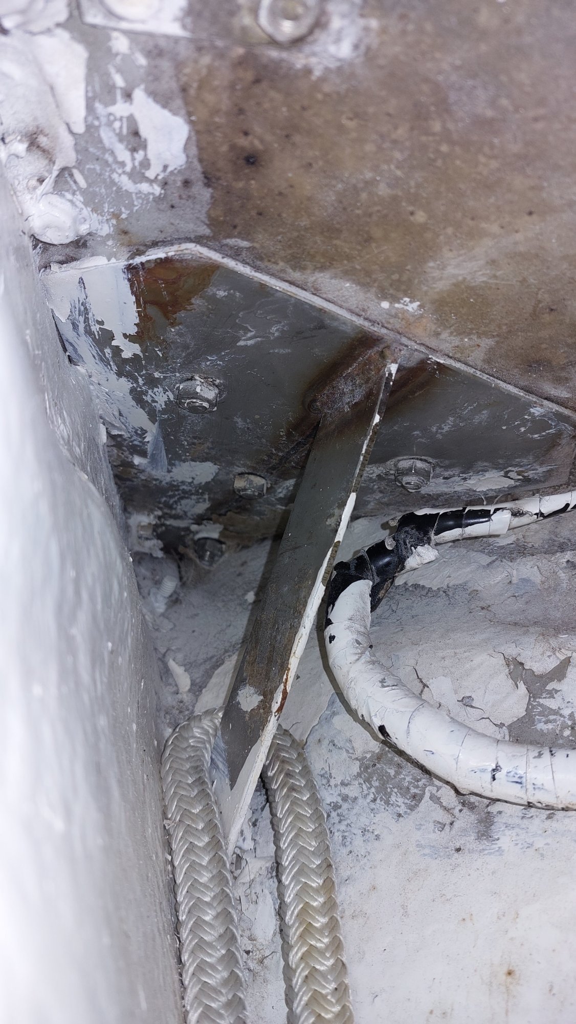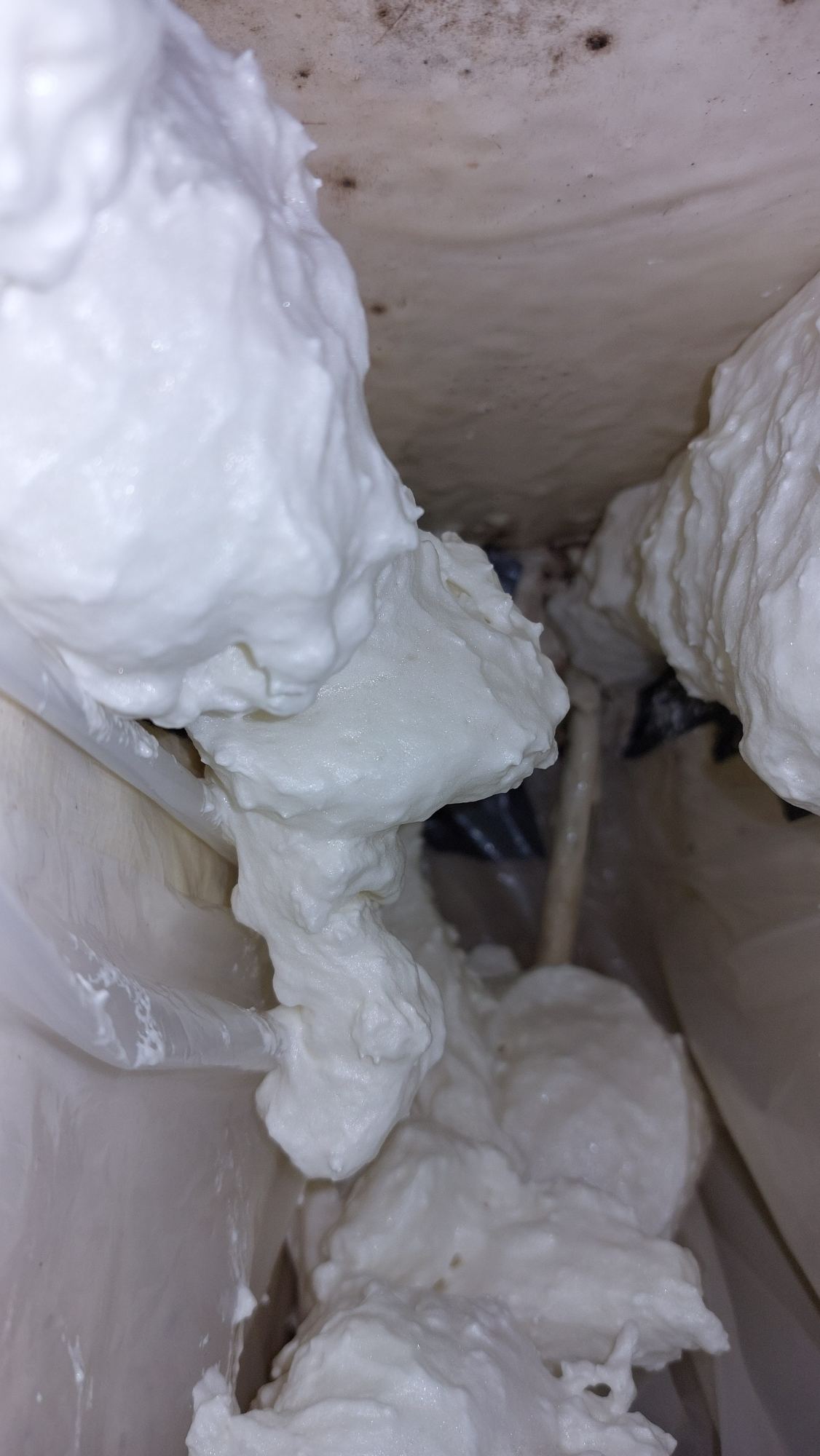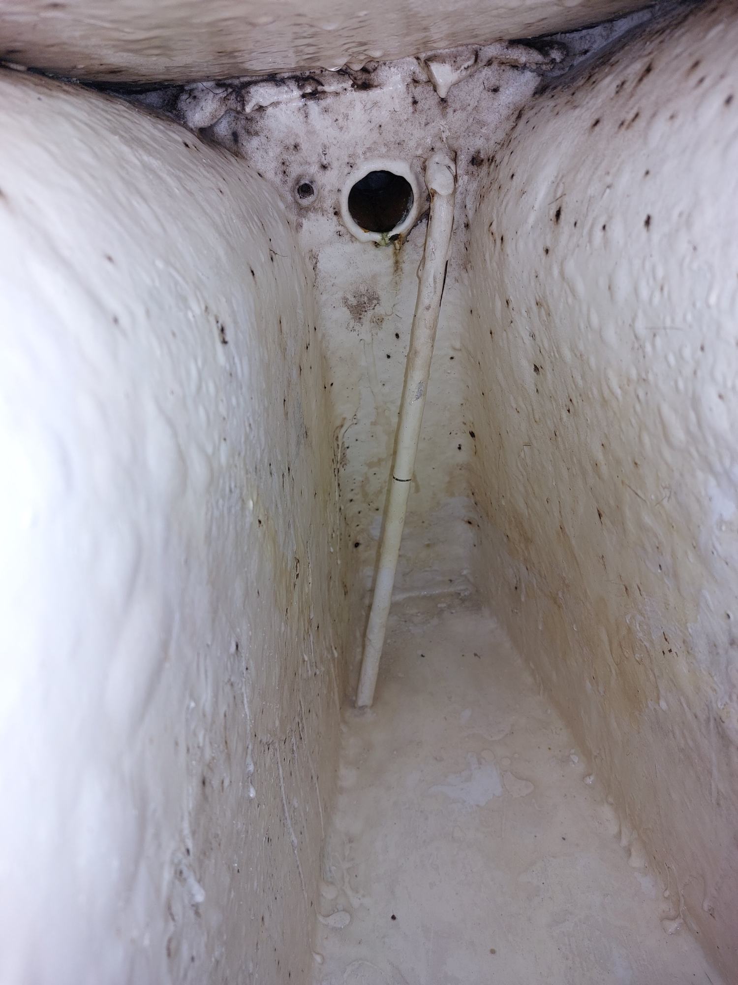Der Tank in der Bilge sah ziemlich gammelig aus. Den Schlitz oben unterm Salonboden fülle ich mit Brunnenschaum und gehe anschließend mit Epoxyspachter darüber. Das soll das Reinigen vereinfachen. Ganz fertig wird das diesen Winter aber nicht mehr. Alles ist nur mit Verrenkungen zu erreichen und die Spachtelarbeiten sehen entsprechend stümperhaft aus.