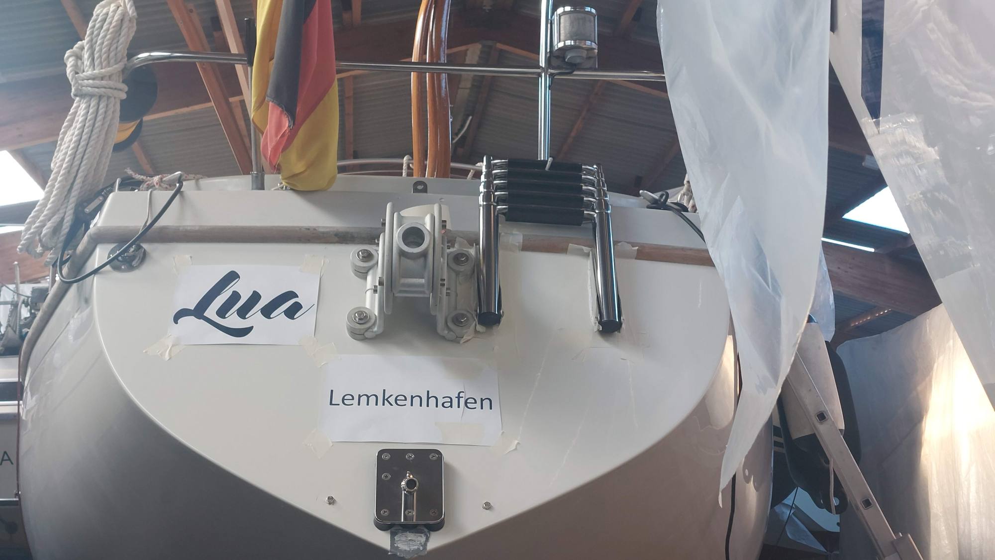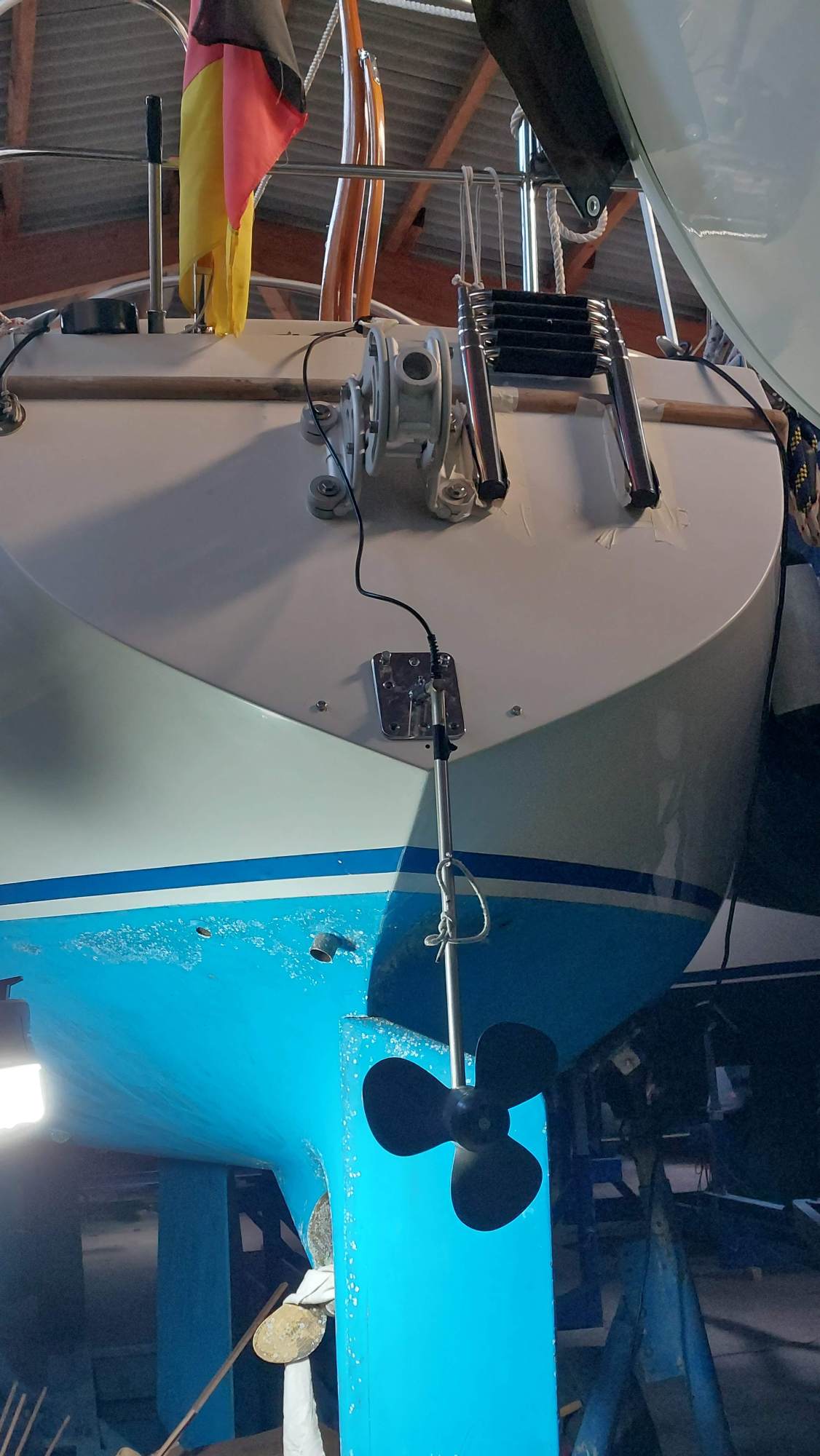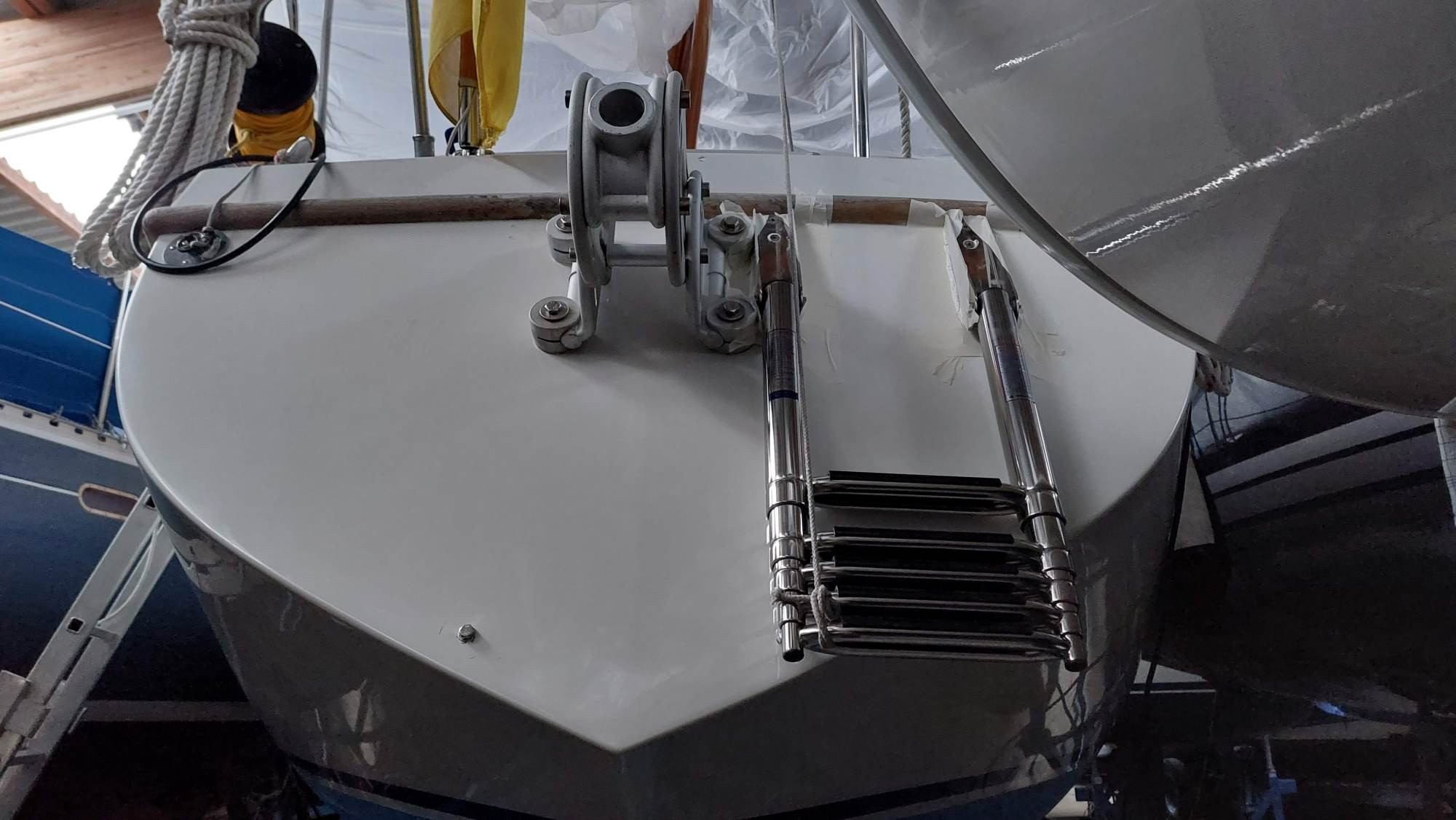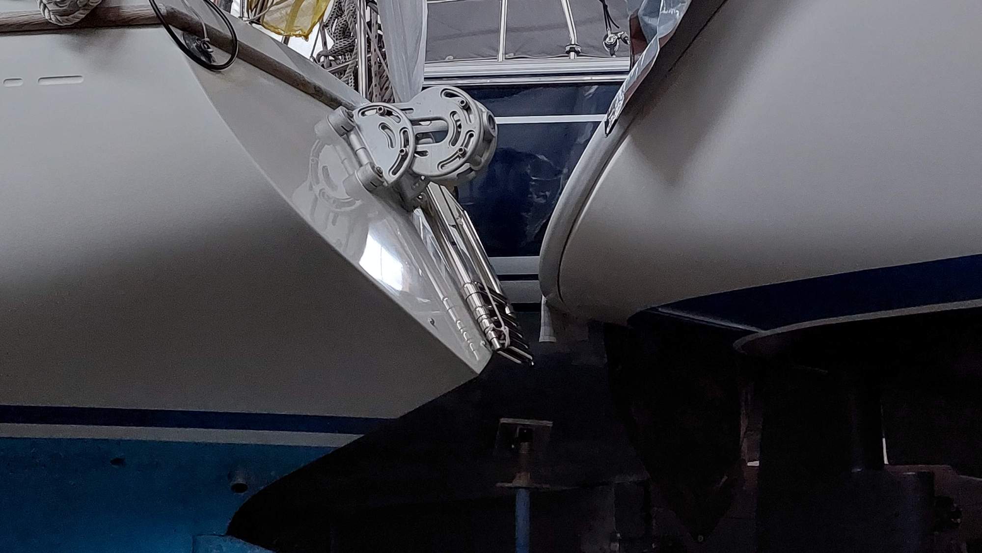 Um für Windpilot und SailingGen Platz zu machen, musste leider die schöne große Heckleiter weichen. Eine kompaktere Variante musste gefunden werden.