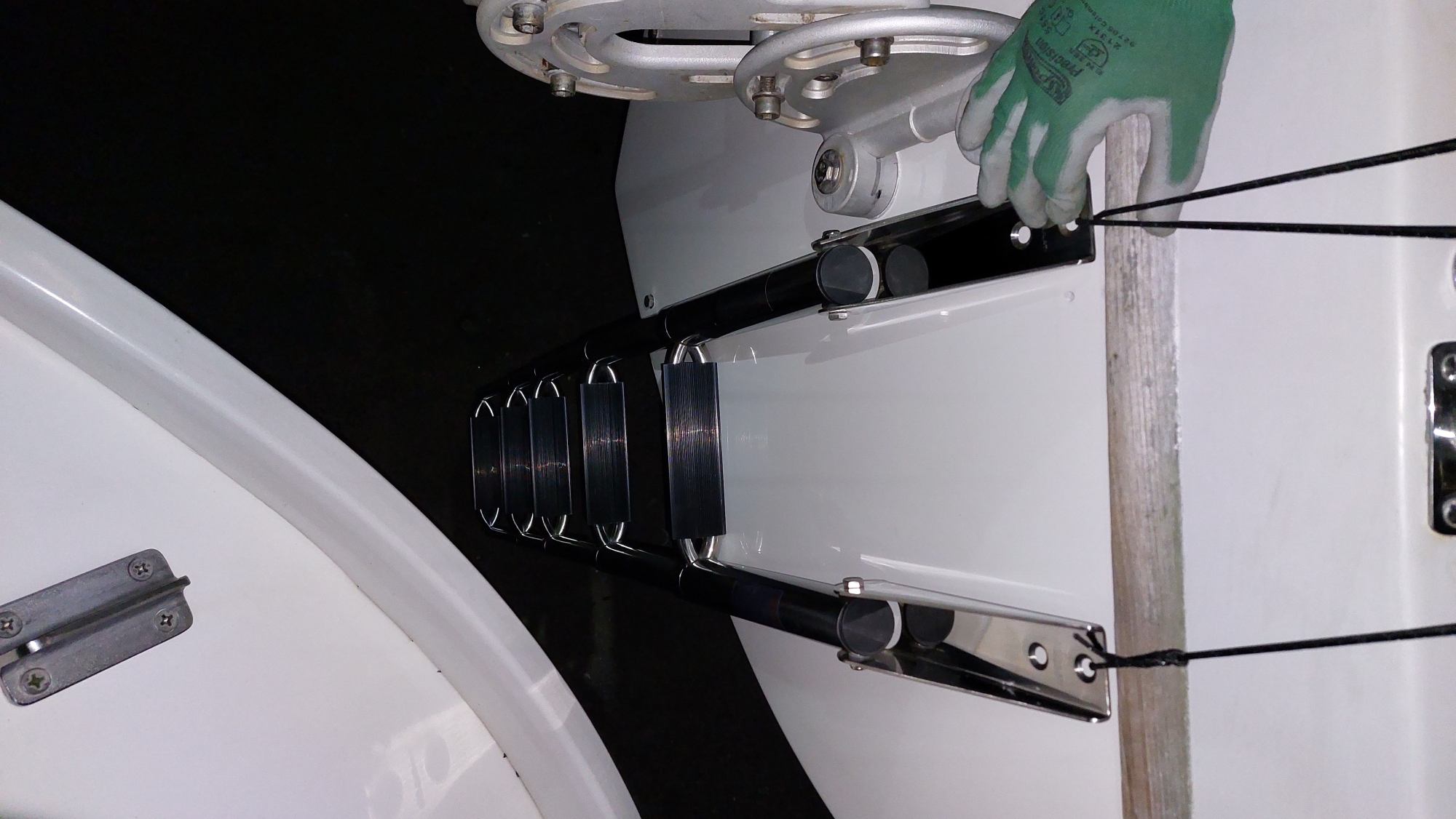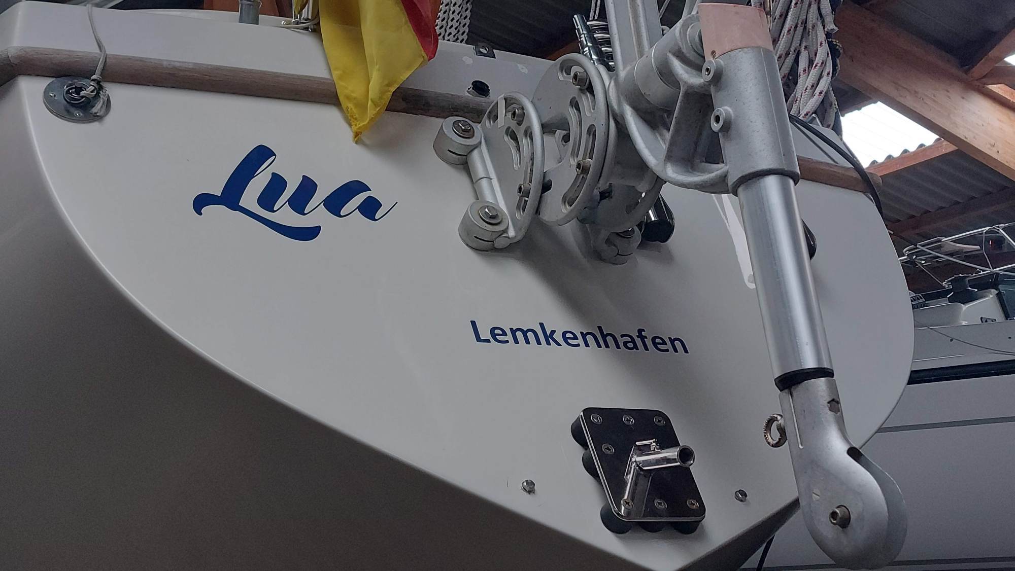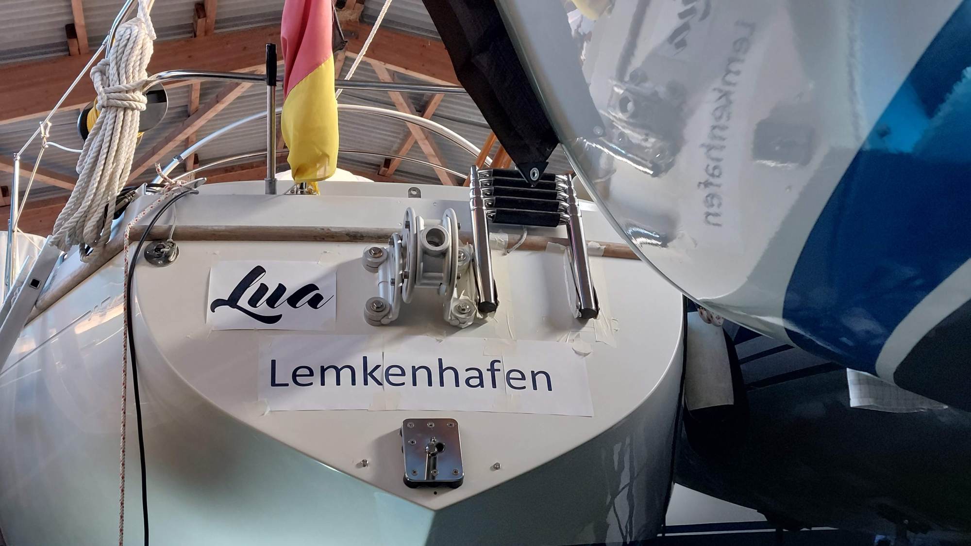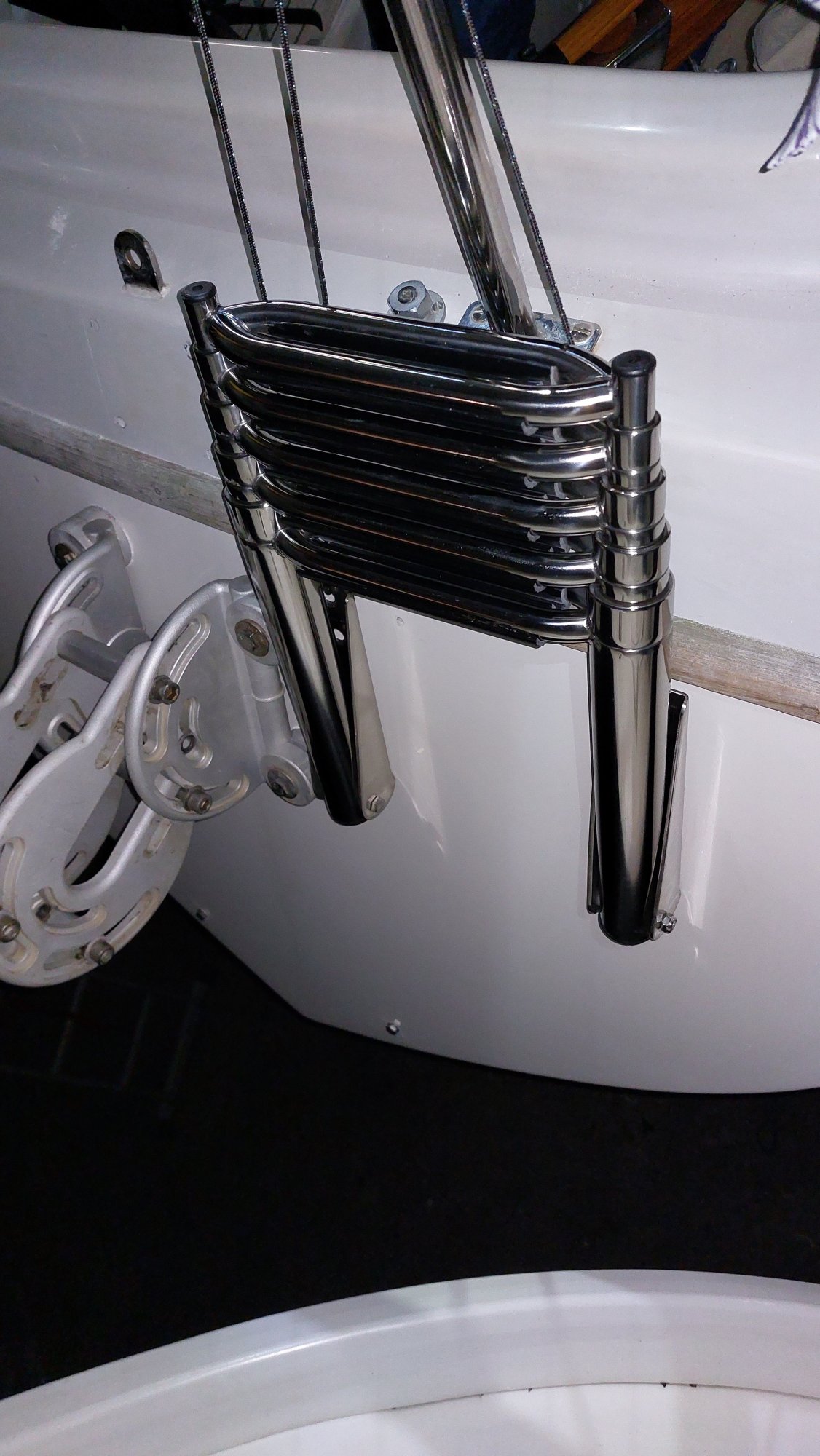 Um für Windpilot und SailingGen Platz zu machen, musste leider die schöne große Heckleiter weichen. Eine kompaktere Variante musste gefunden werden.