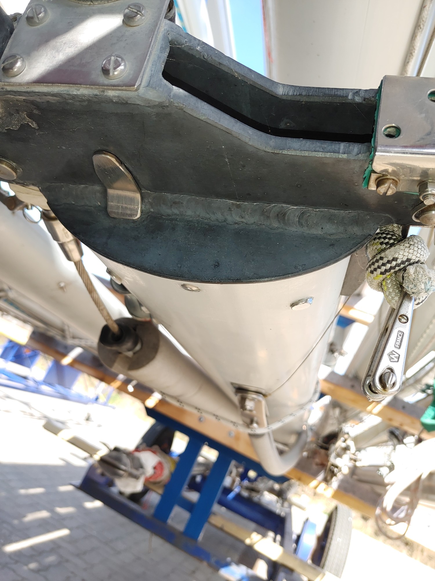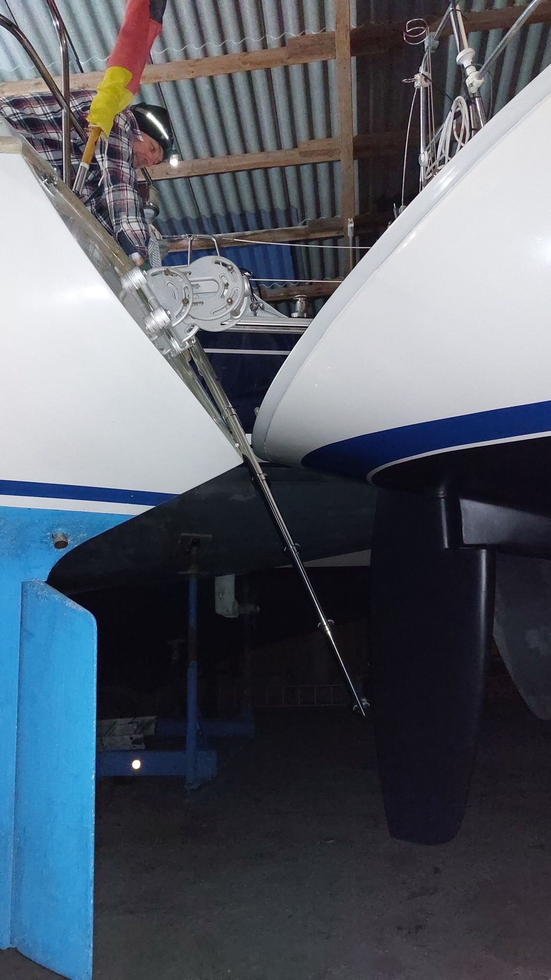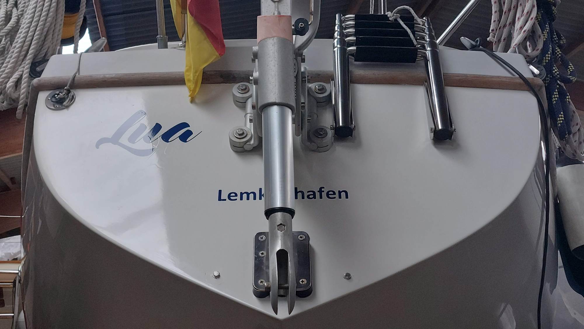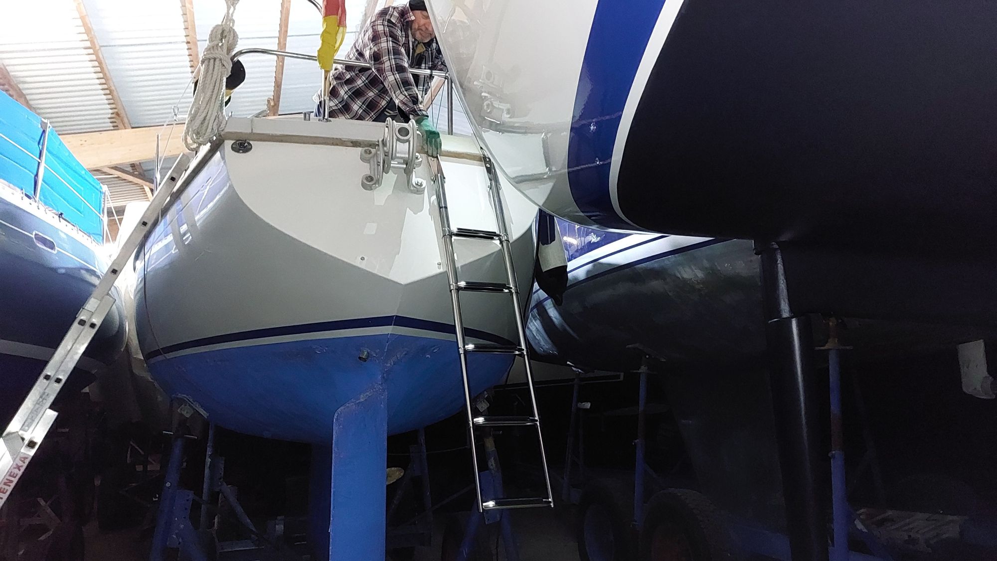 Um für Windpilot und SailingGen Platz zu machen, musste leider die schöne große Heckleiter weichen. Eine kompaktere Variante musste gefunden werden.