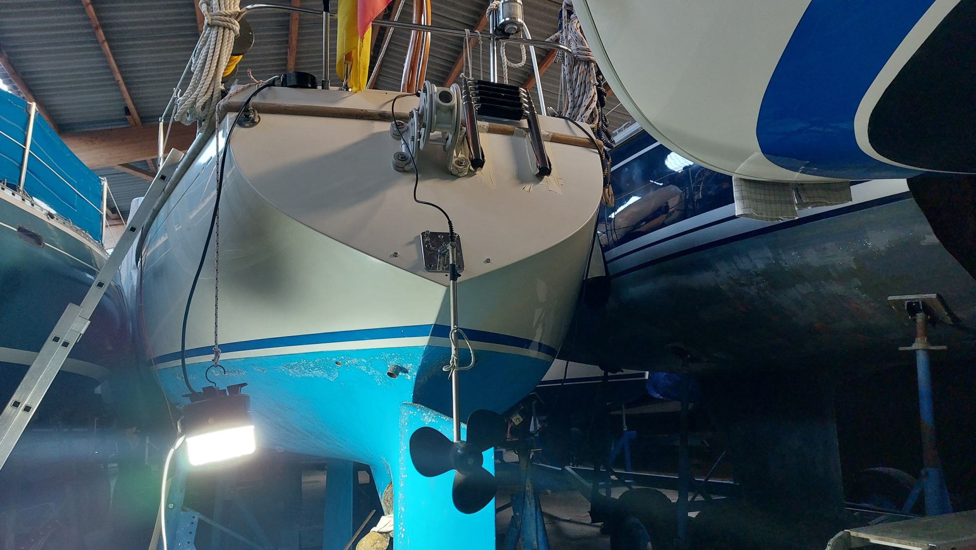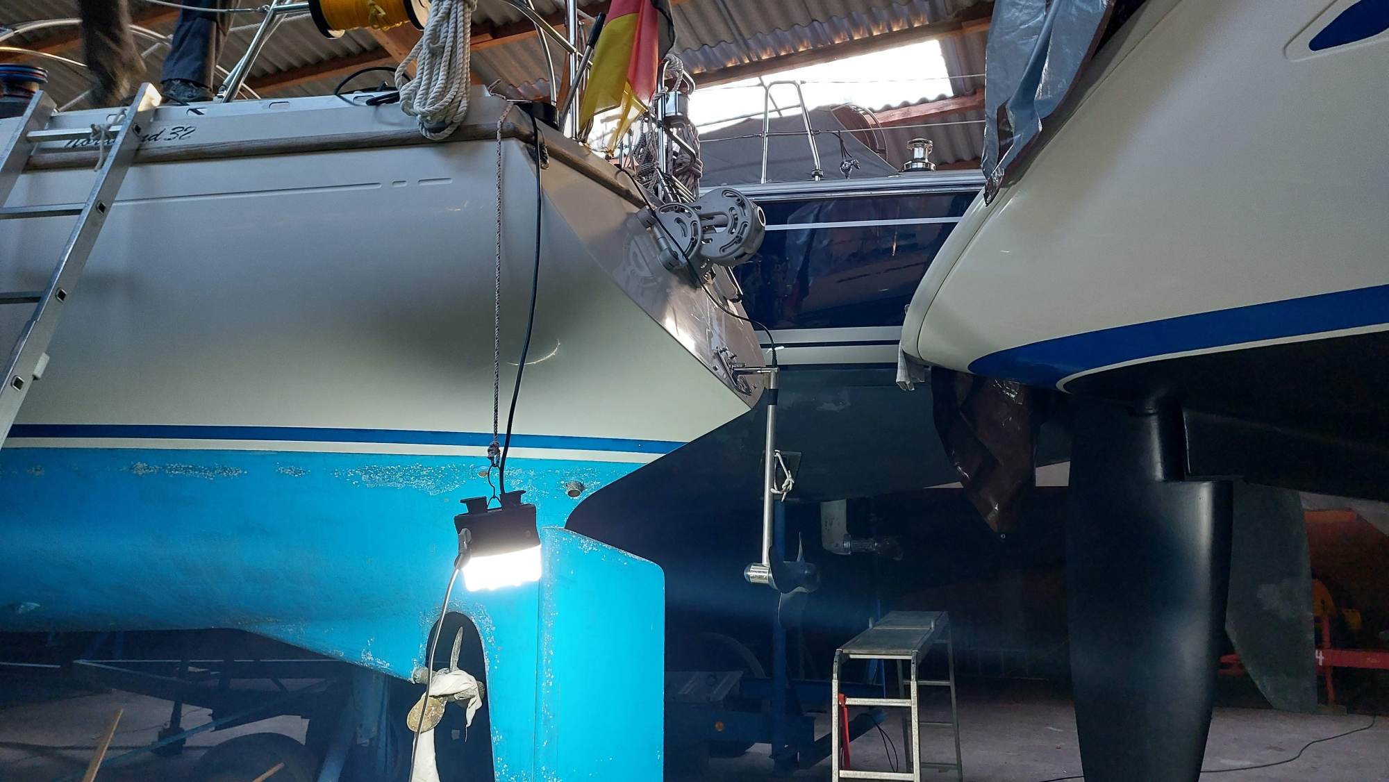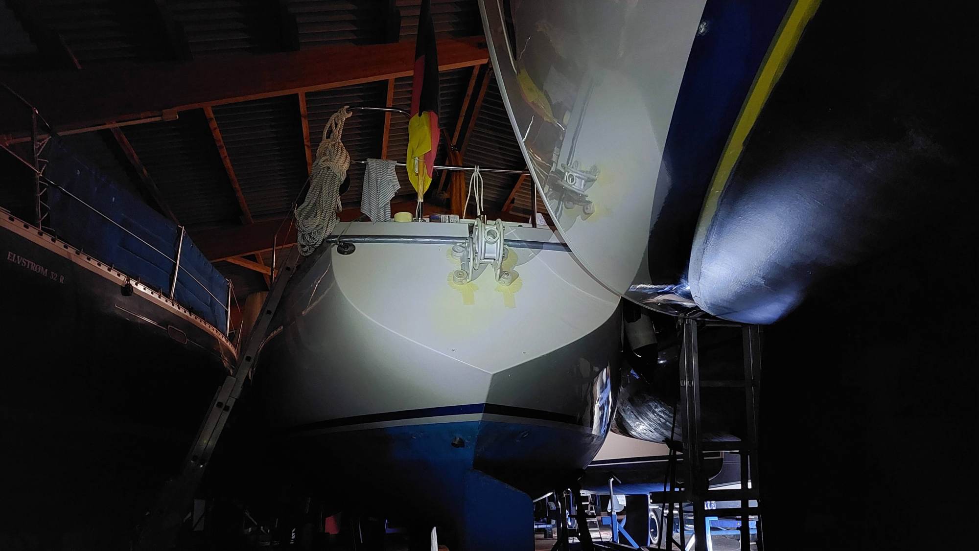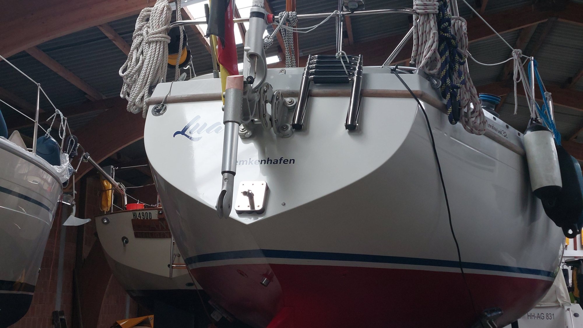 Um für Windpilot und SailingGen Platz zu machen, musste leider die schöne große Heckleiter weichen. Eine kompaktere Variante musste gefunden werden.