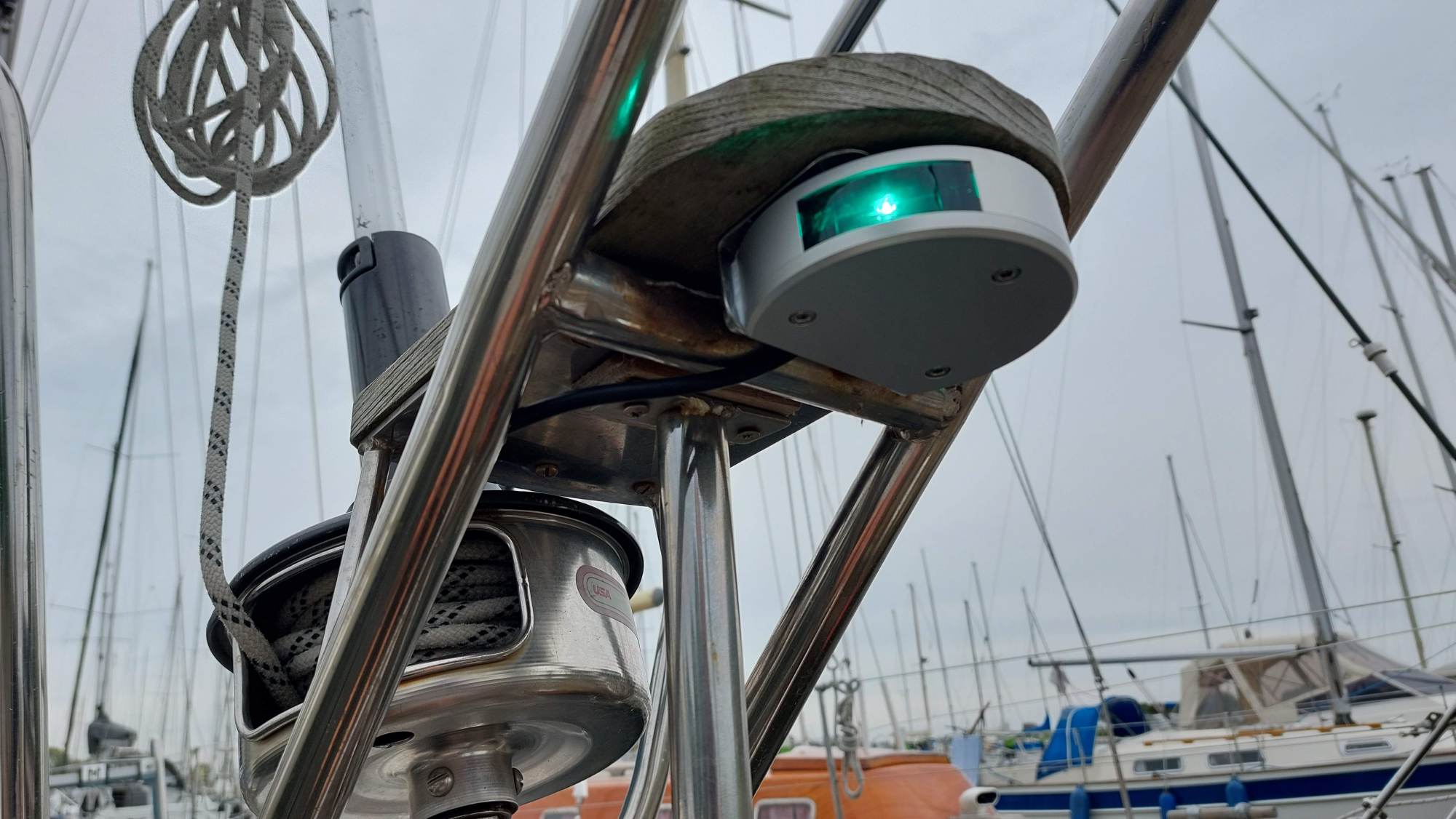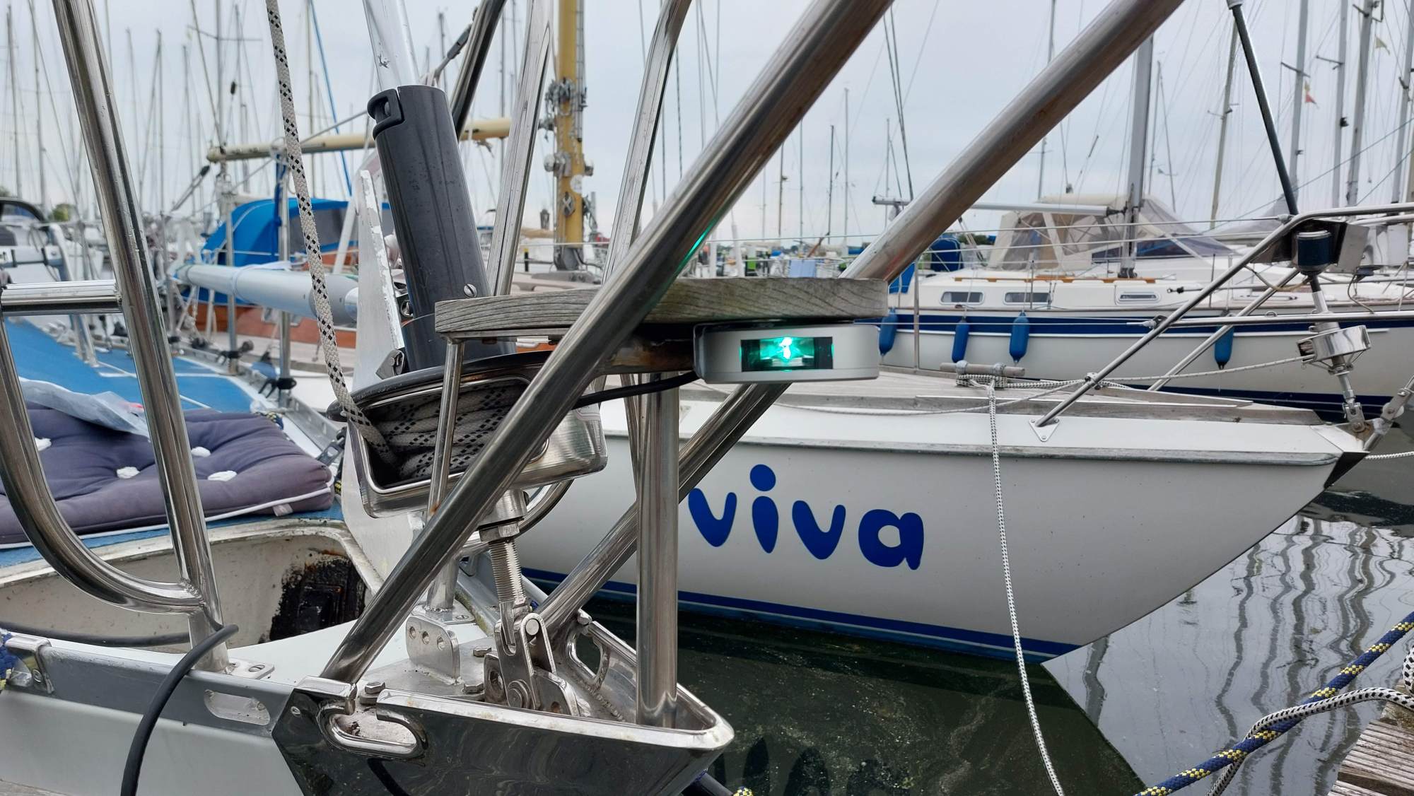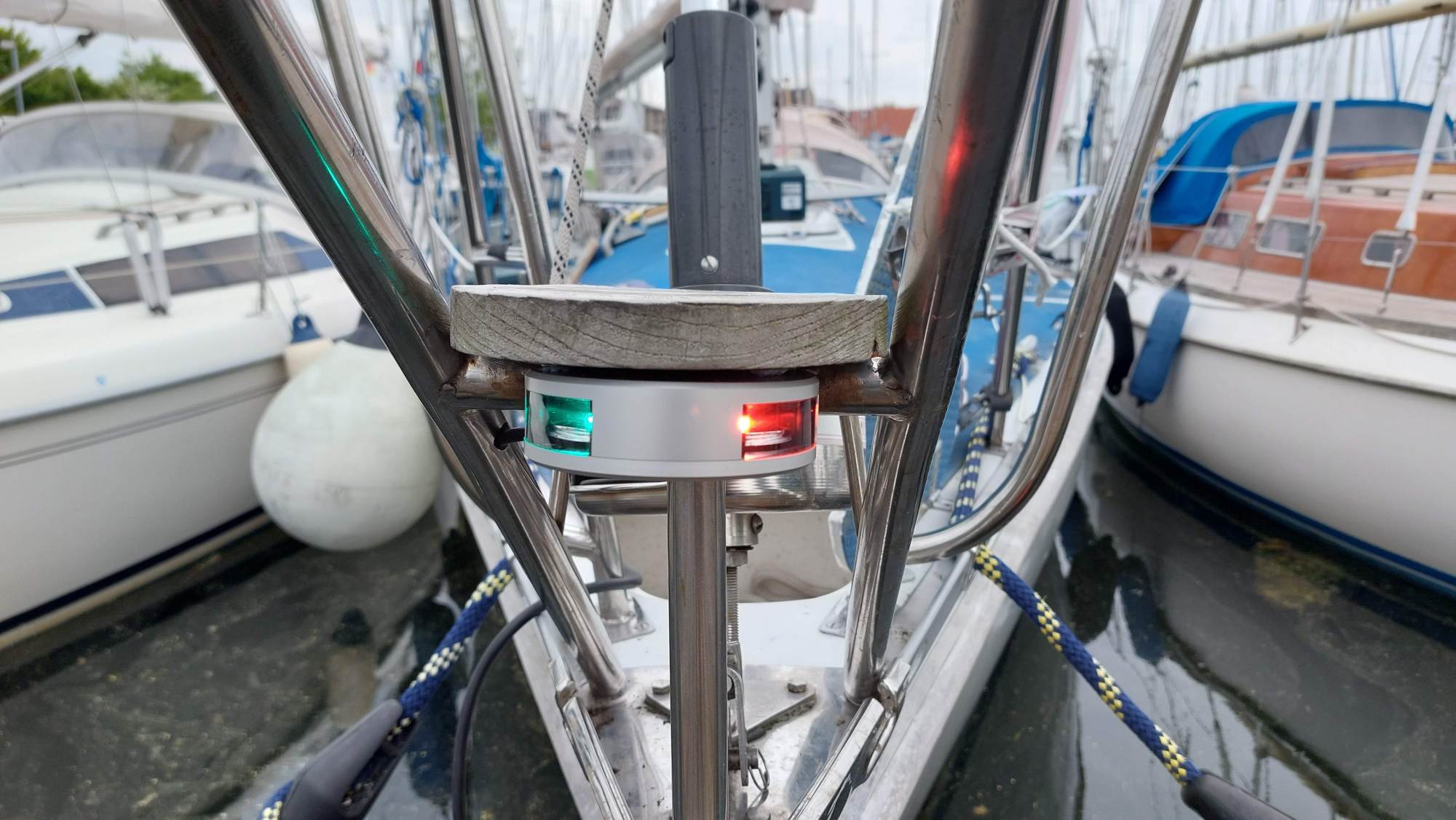 Bilder gibt es nur vom Messen. Beim Montieren der WLAN-Antenne, neuem Toplicht mit Ankerlaterne und des Dampferlichts war zuviel Zeitdruck für die Dokumentation...