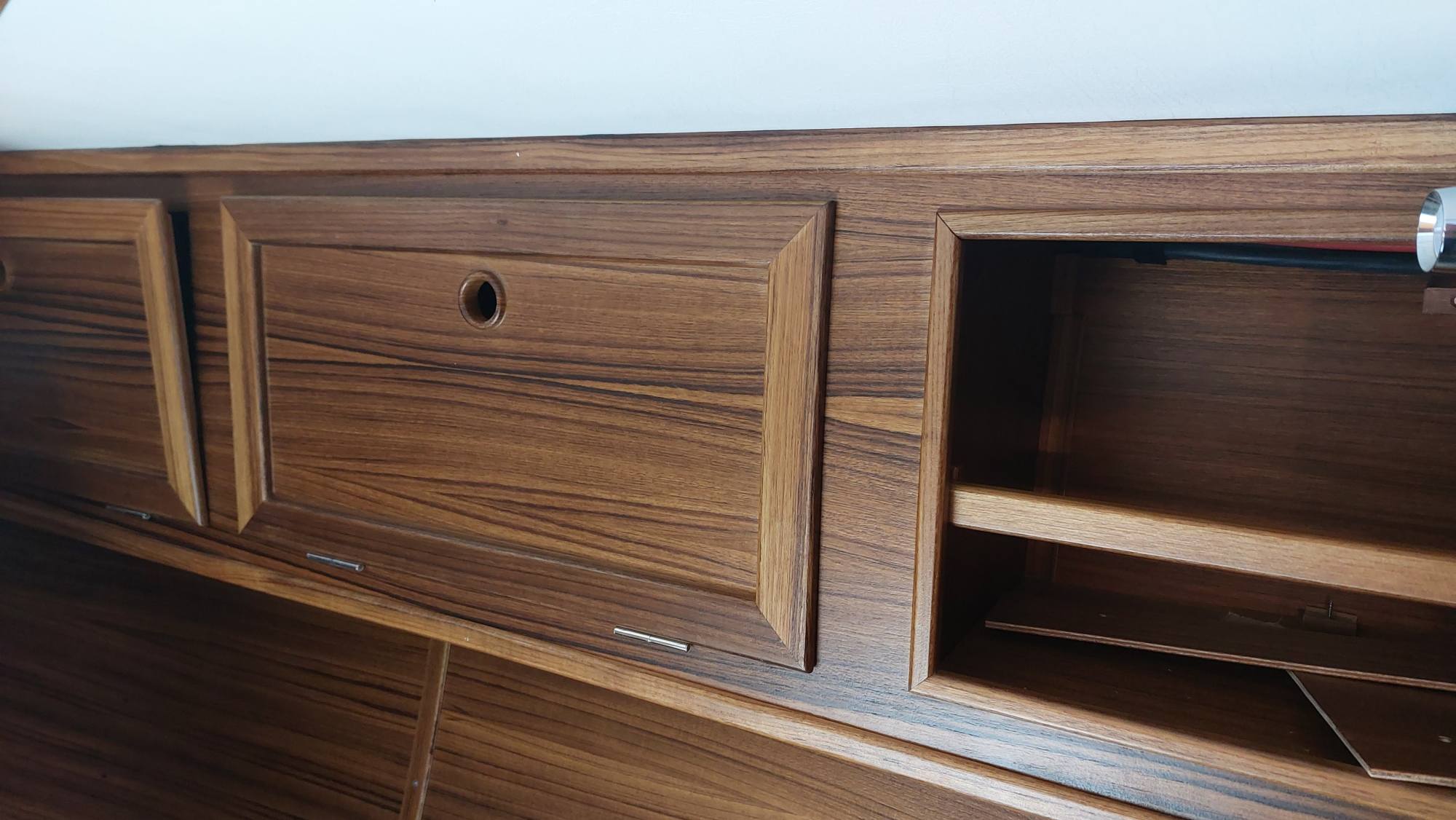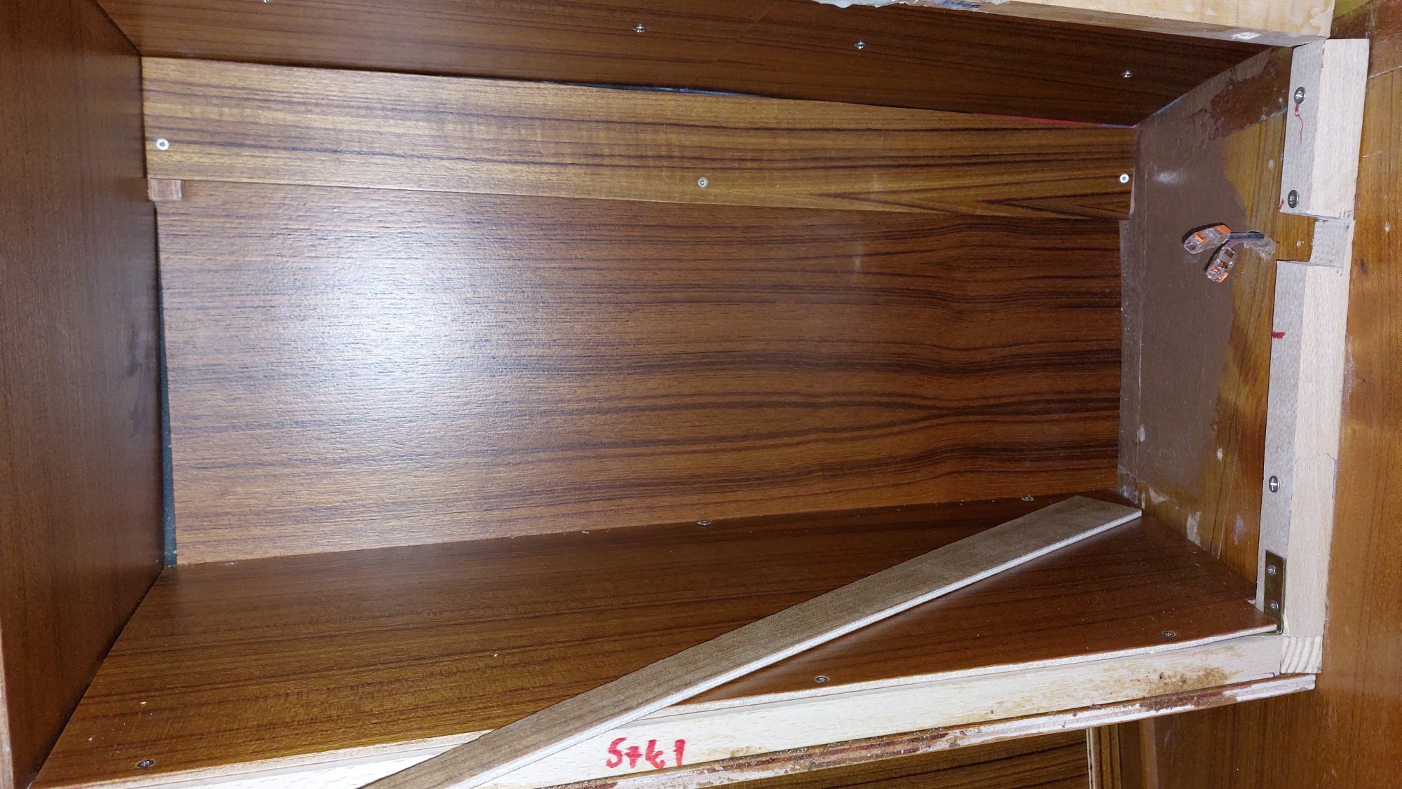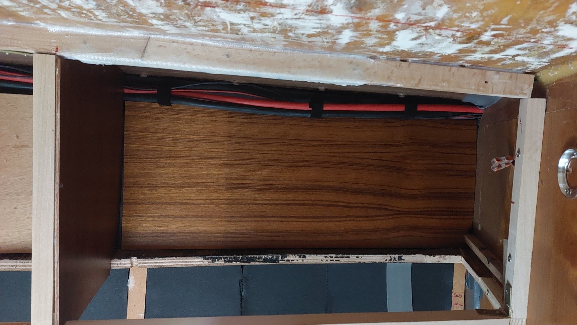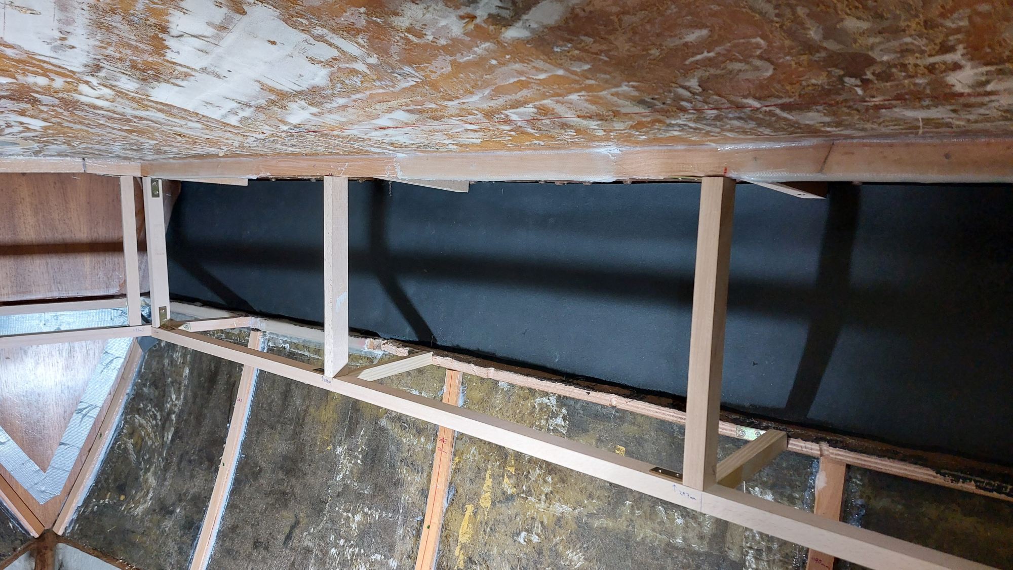 Die Schrankfächer bekommen ein Innenleben und die Deckenverkleidung wird geplant.