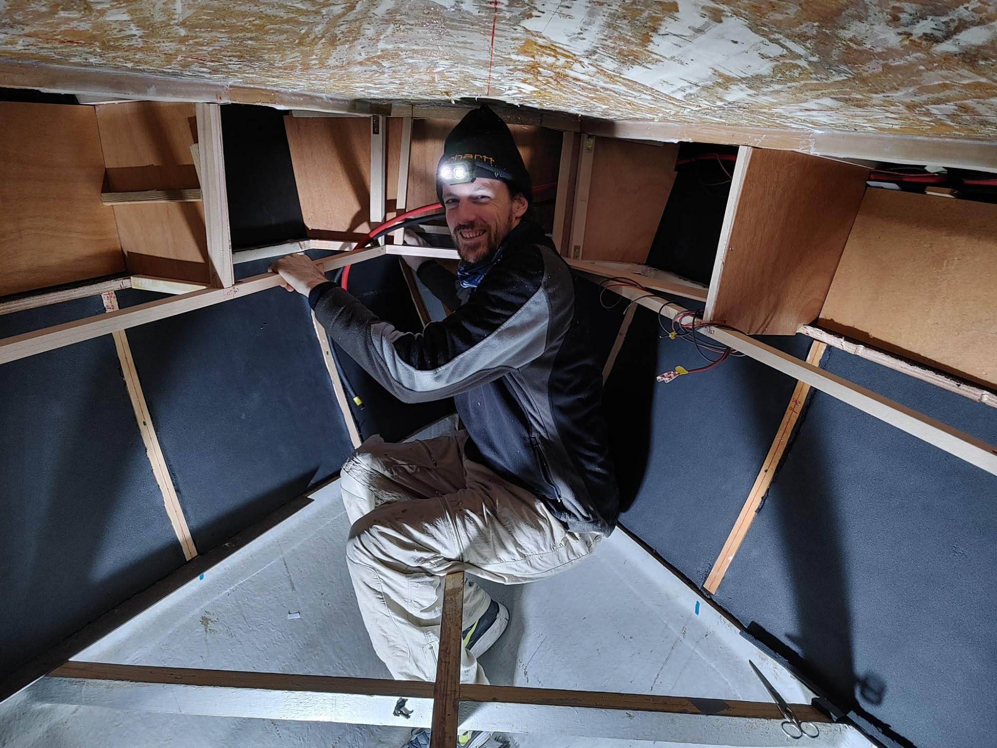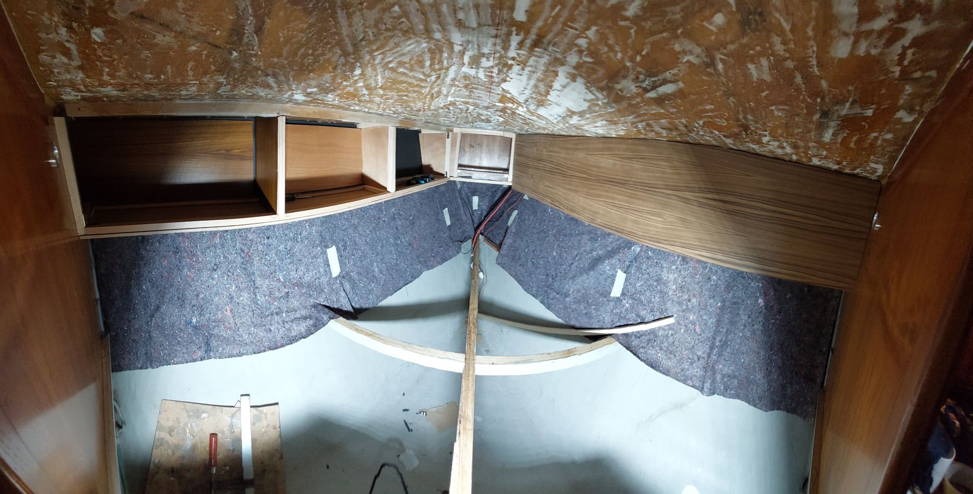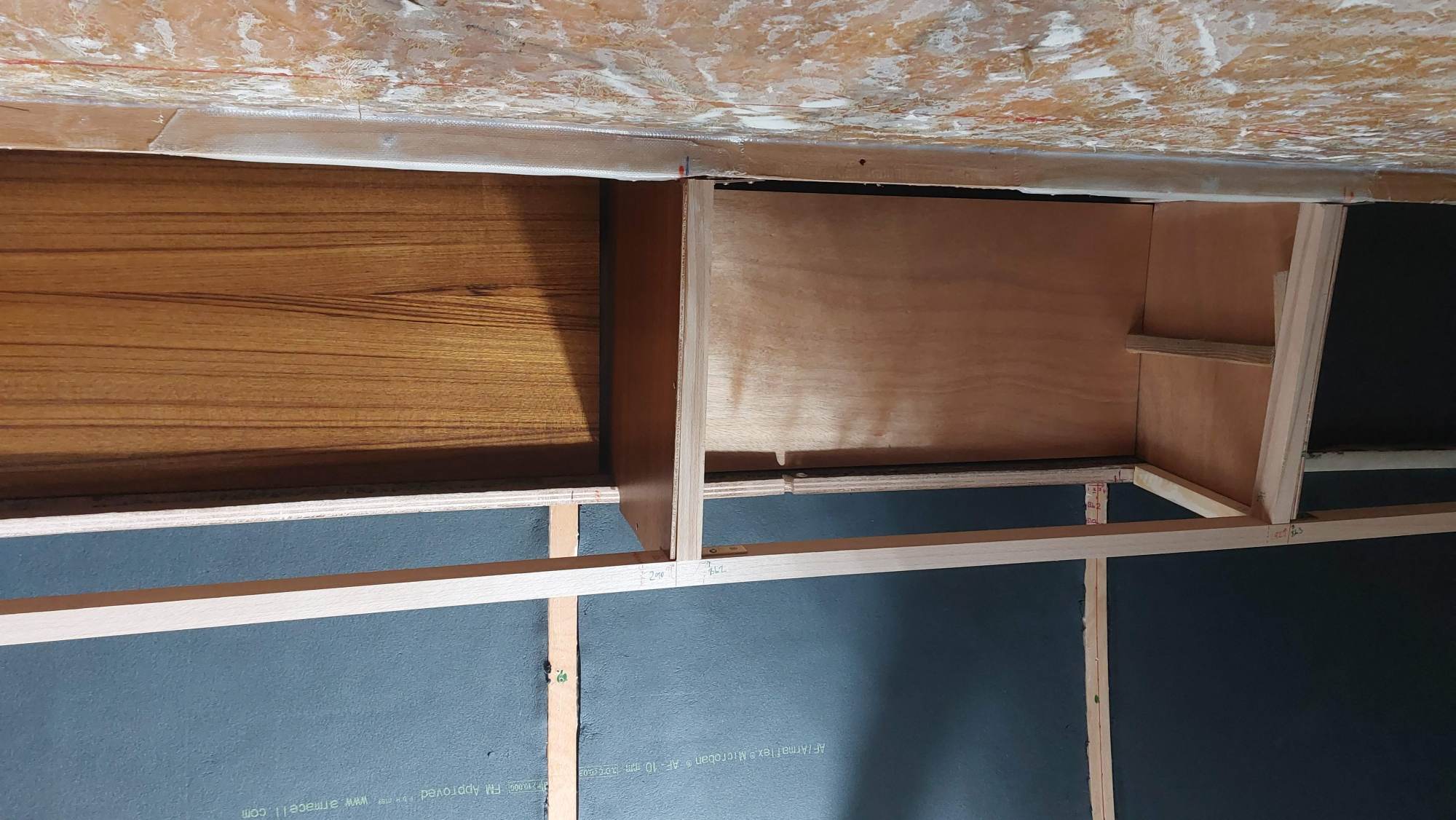 Es folgt Armaflex unten und die Verkleidung der Wände.