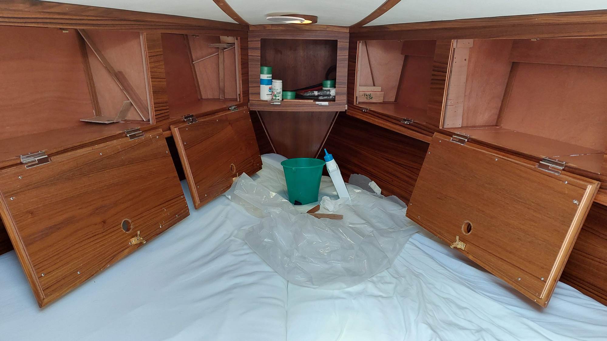 Durch den ganzen Winter gezogen haben sich die Arbeiten an den neuen Vorschiffsschränken. Es gab aber natürlich auch noch jede Menge weitere Projekte...
